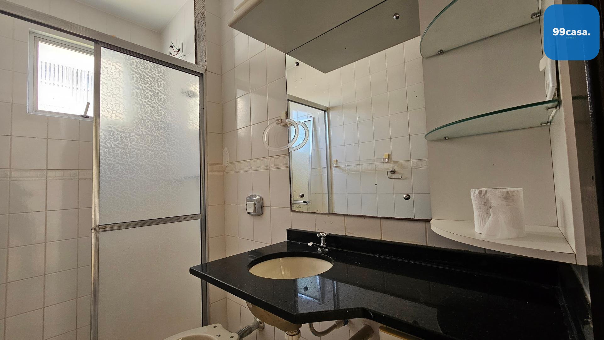 Banheiro social com ventilação natural, garantindo conforto e higiene.
