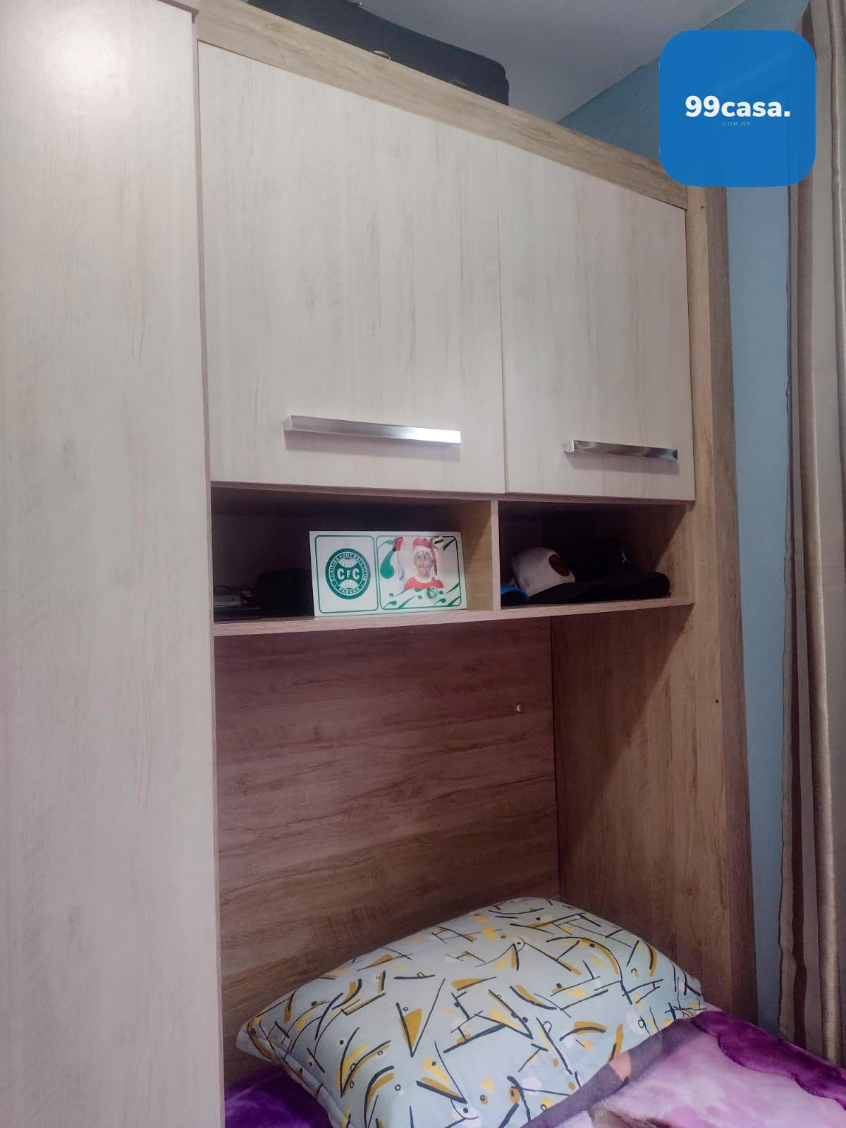 Apartamento com 3 dormitórios (1 de casal e 2 de solteiro), todos com guarda-roupas planejados.