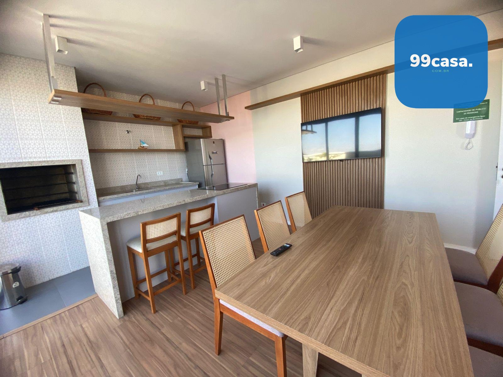 Área de convivência com lareira e cinema