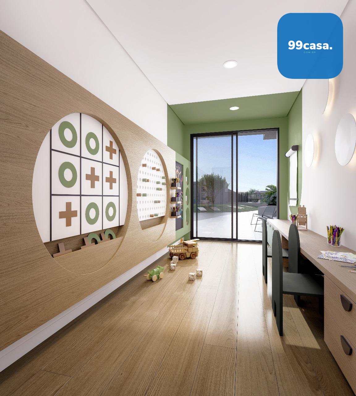 Playground, brinquedoteca e quadra poliesportiva