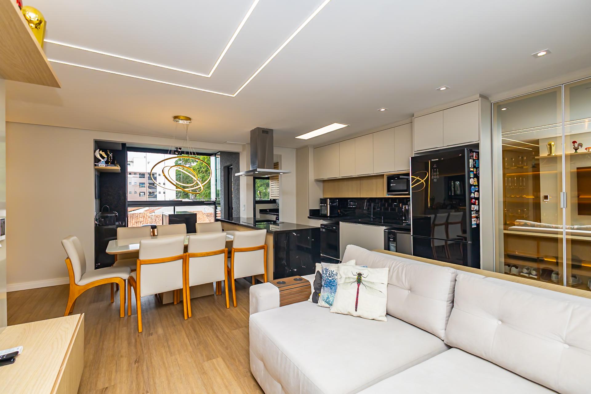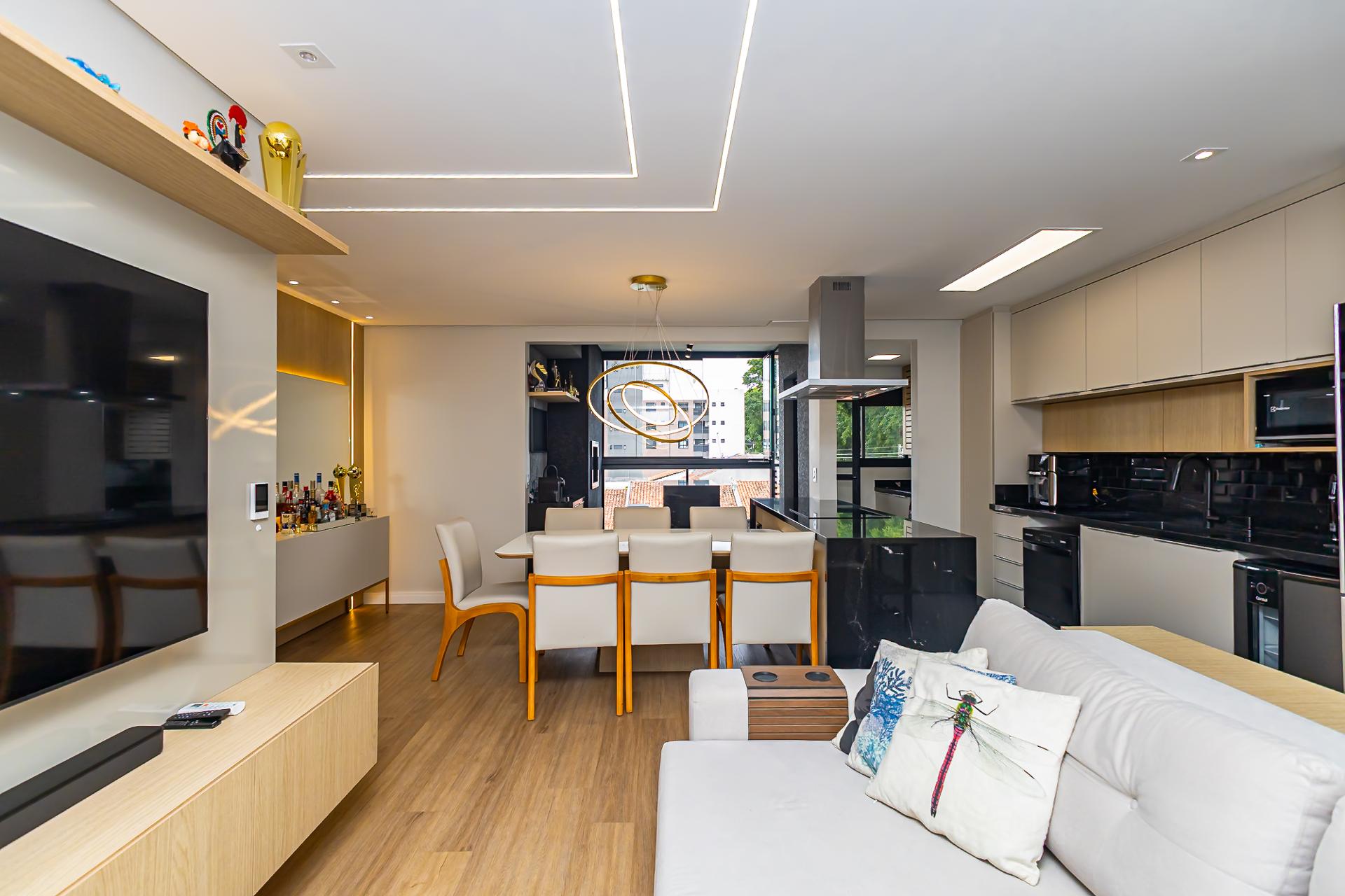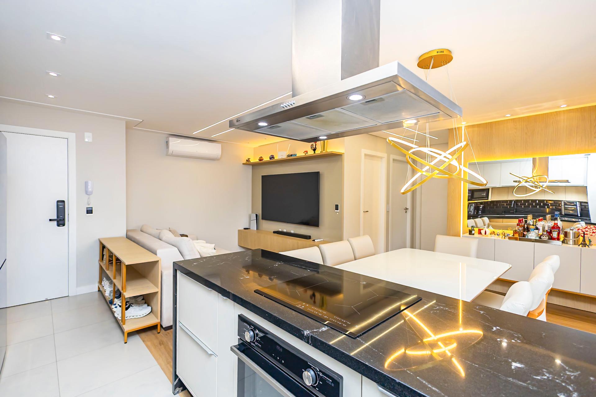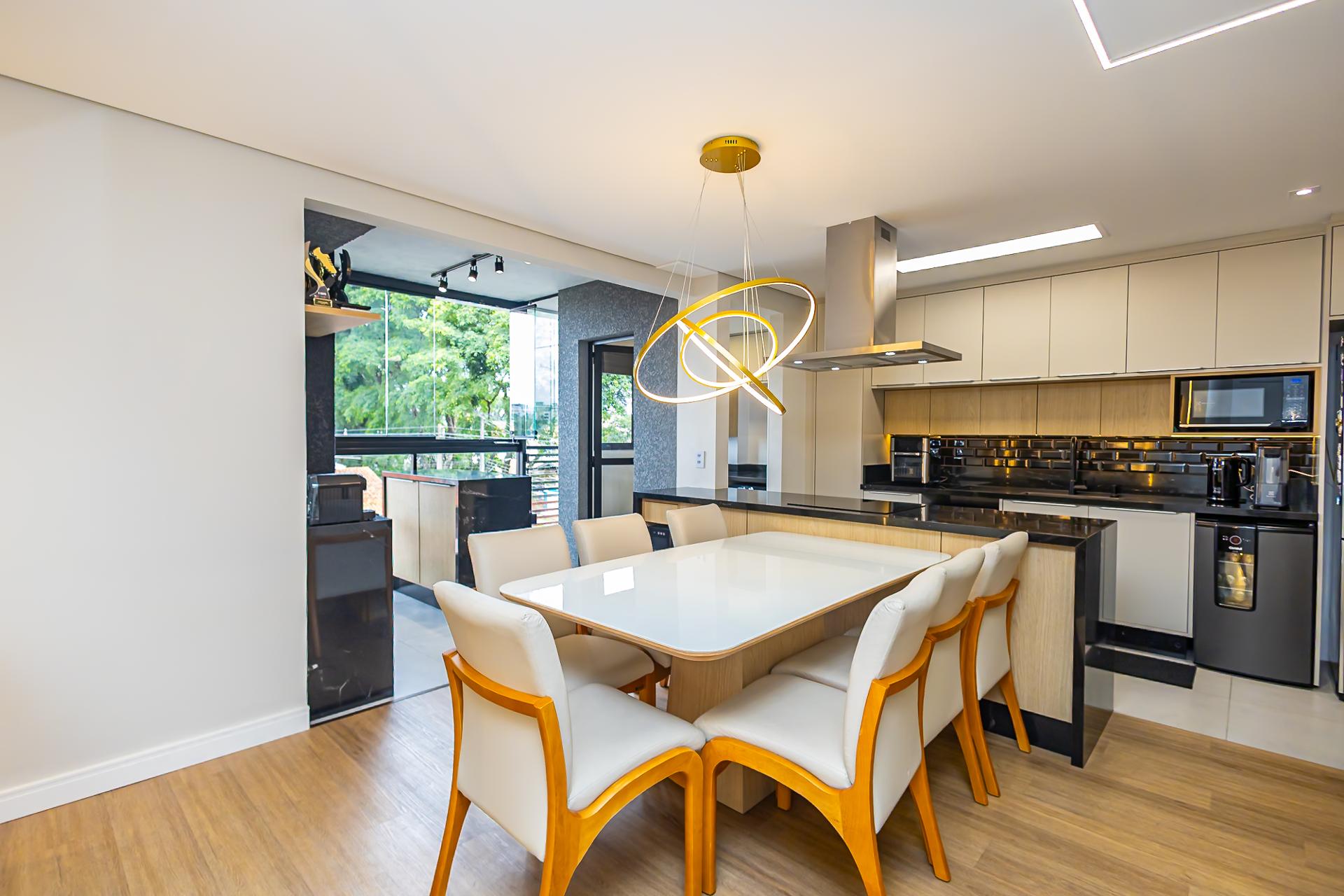 Destaques: Living integrado, sacada gourmet com churrasqueira
