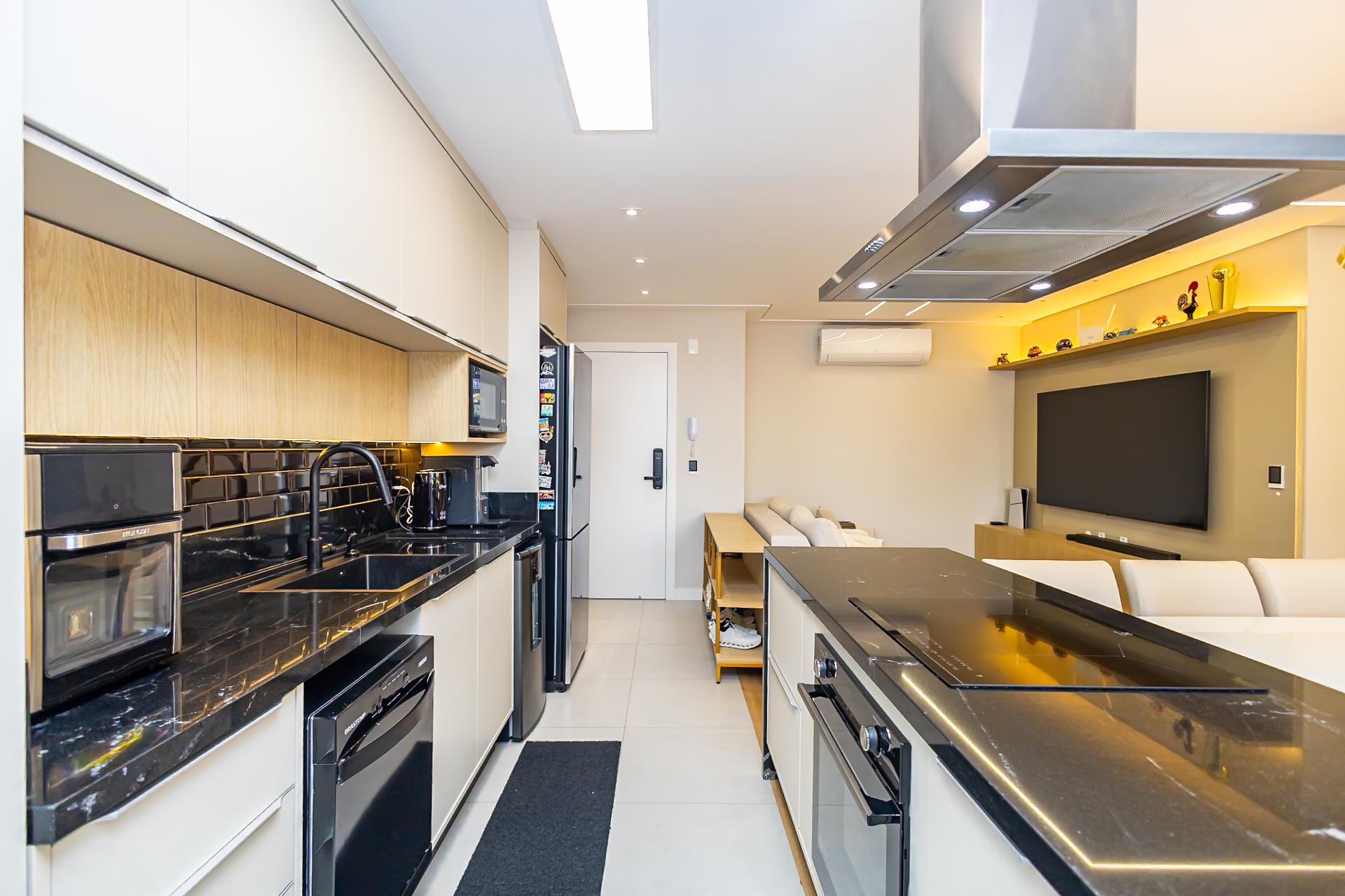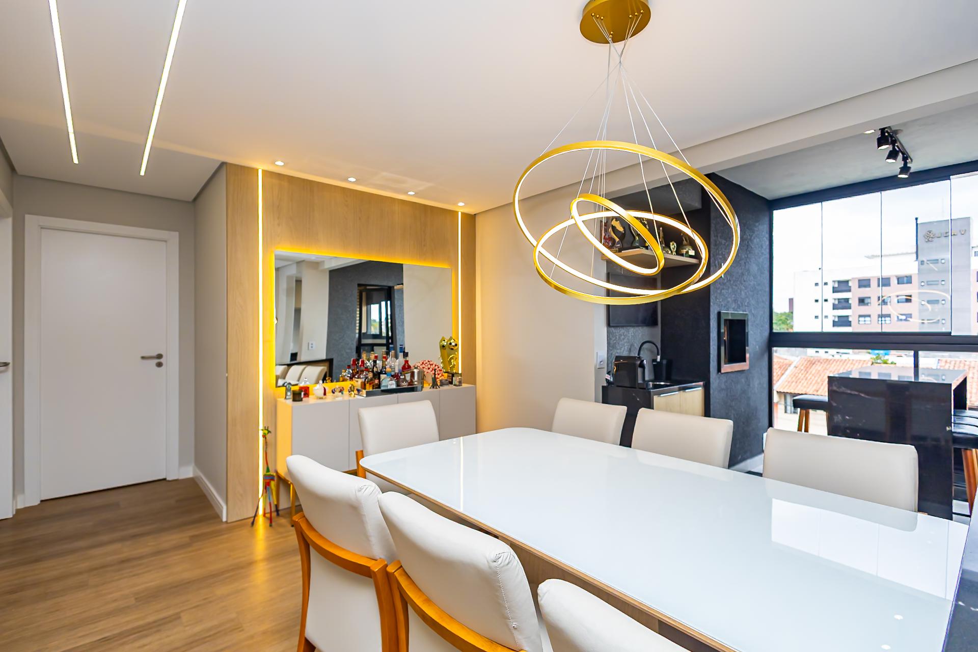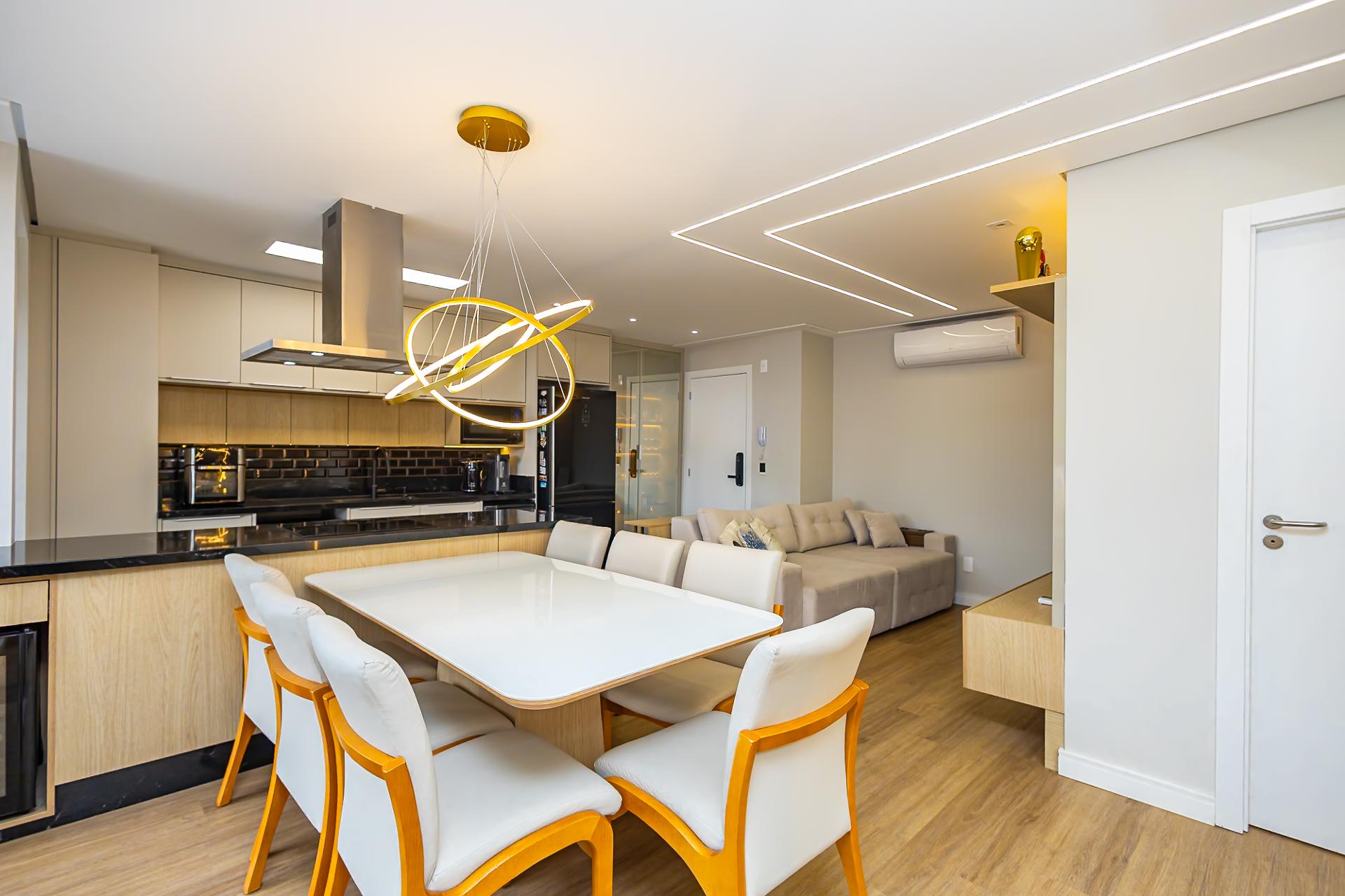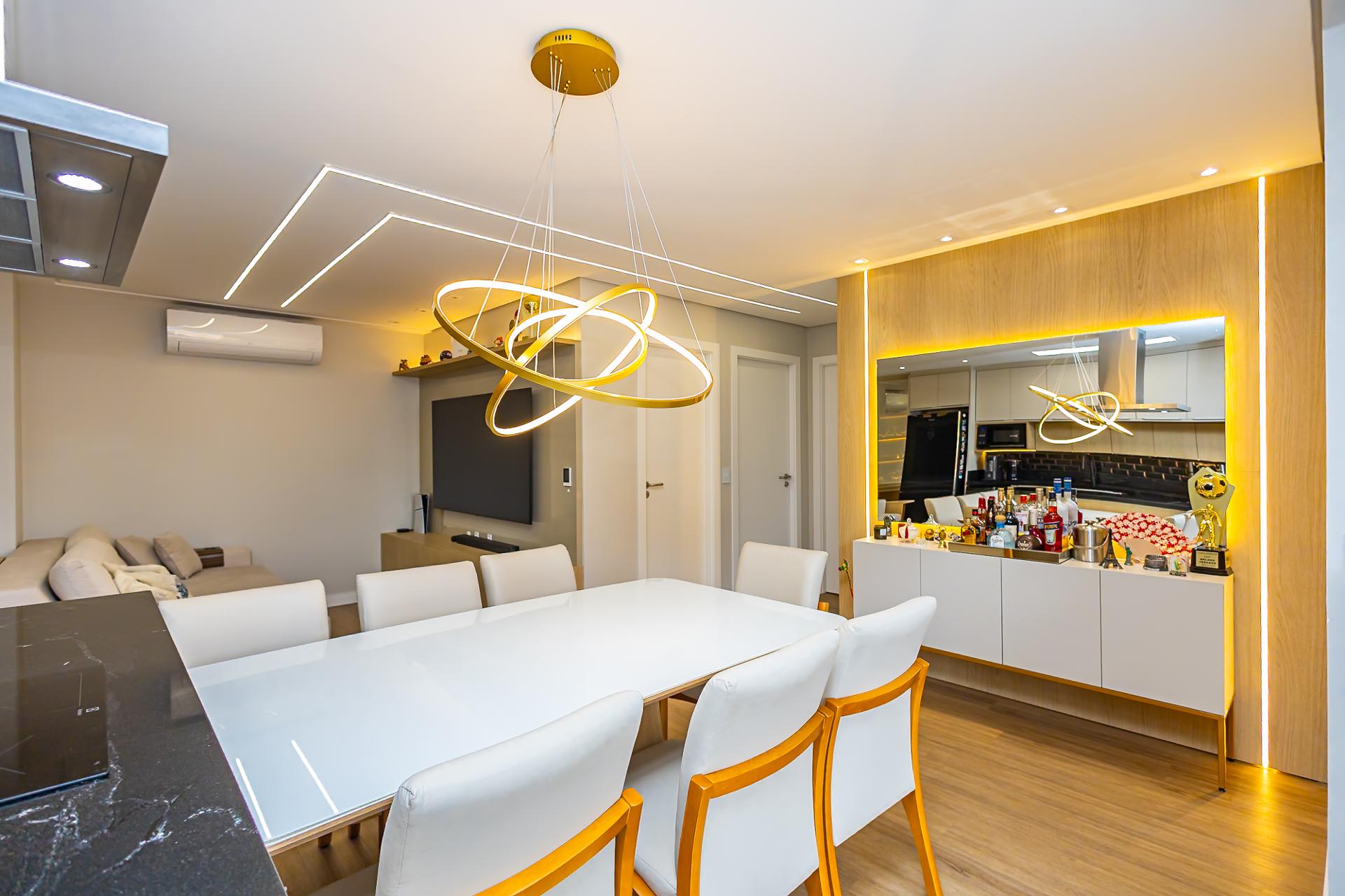 Destaques: Living integrado, sacada gourmet com churrasqueira