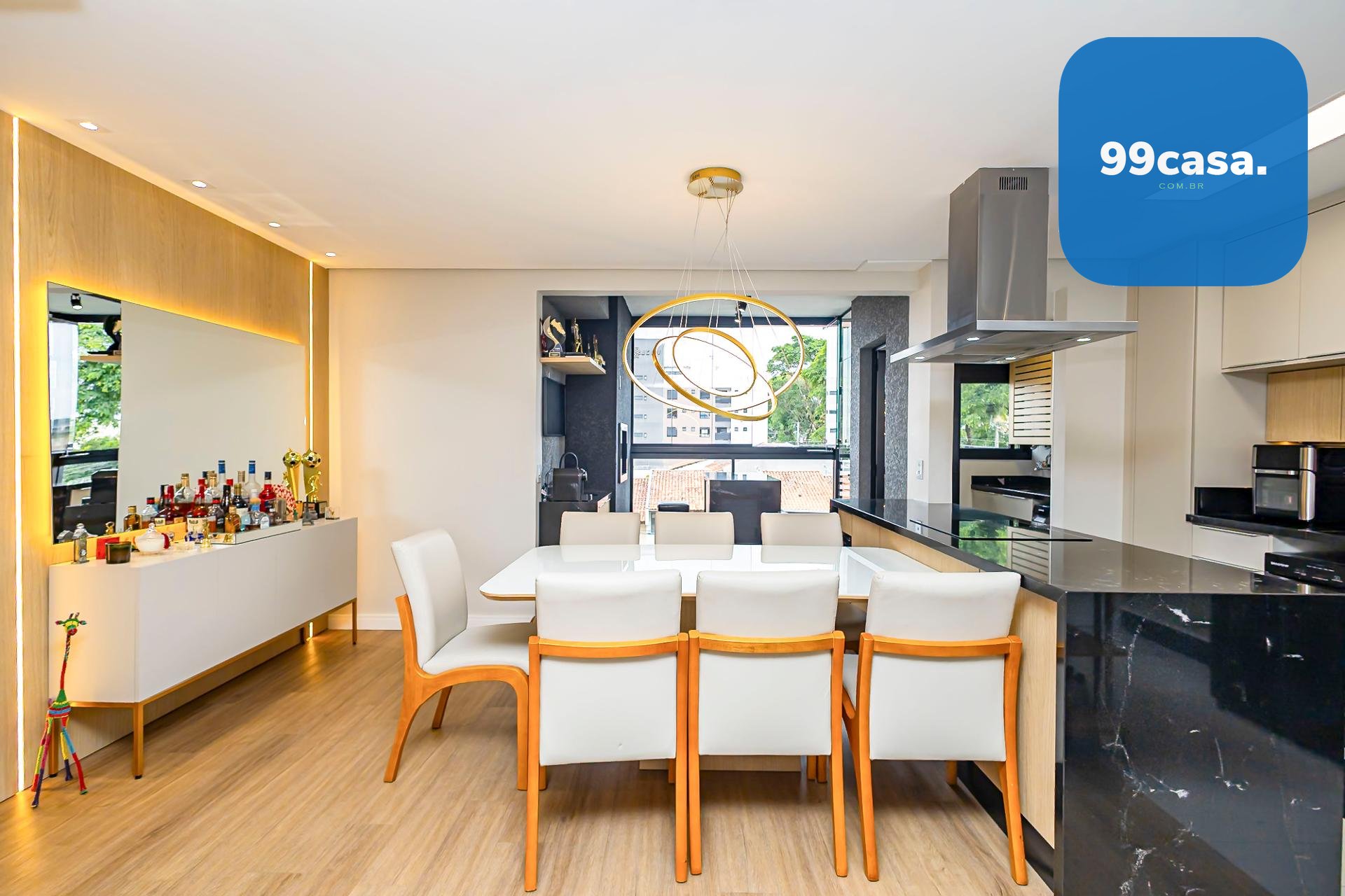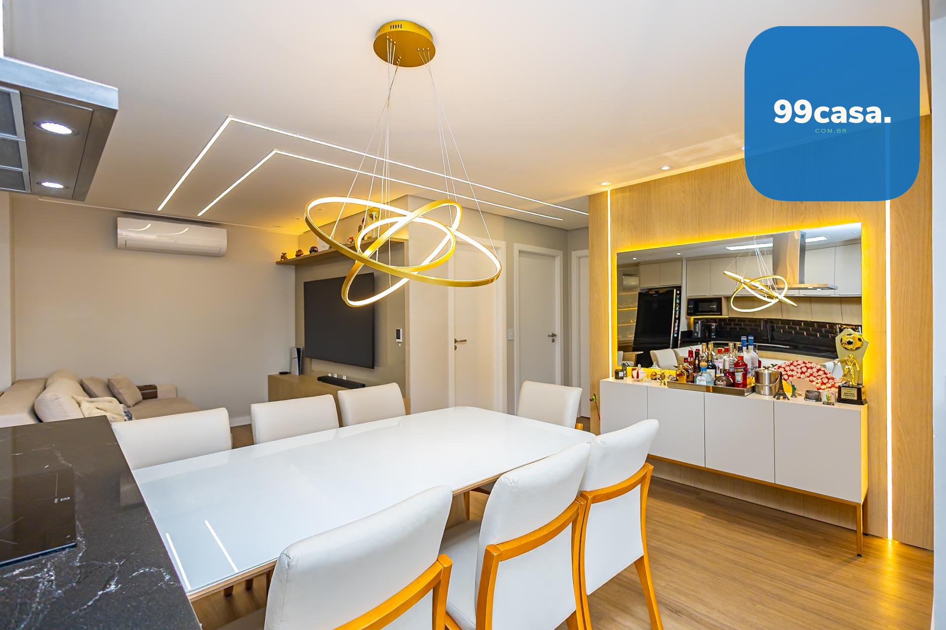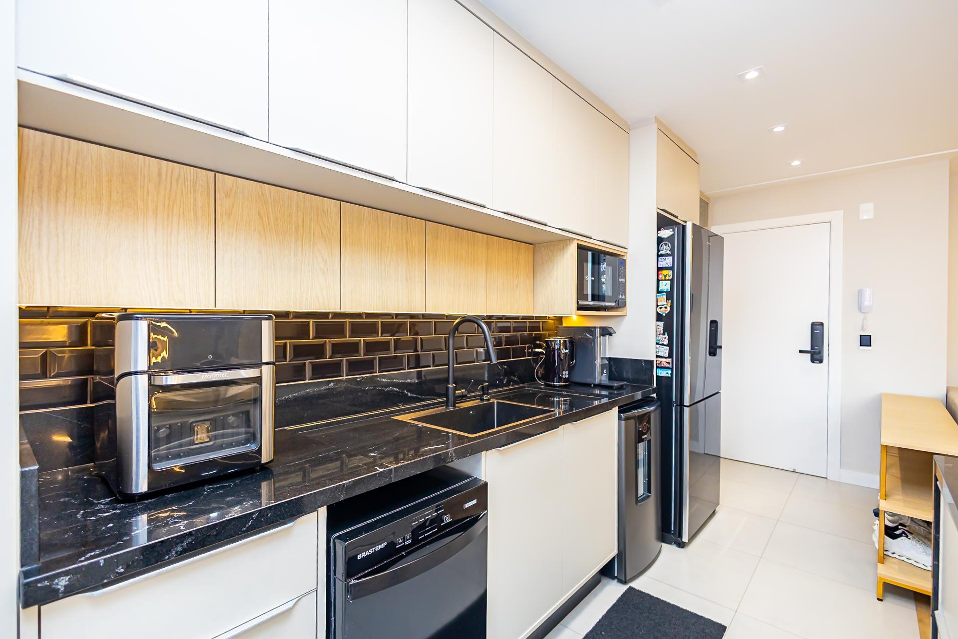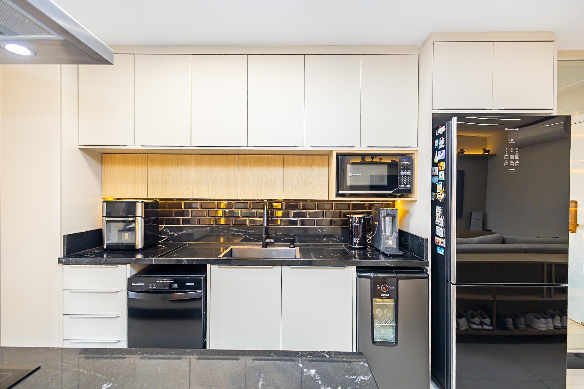 Destaques: Living integrado, sacada gourmet com churrasqueira