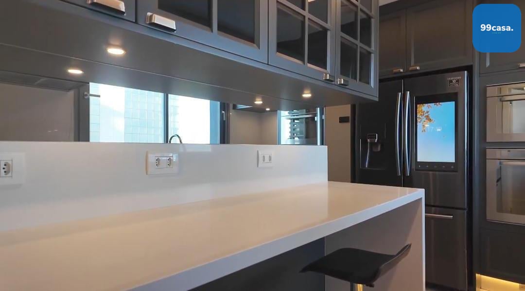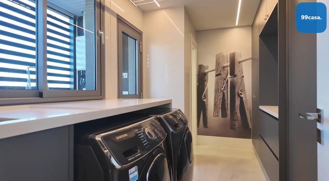 Área de Serviço Completa: Equipamentos de última geração, incluindo varal automático e lava e seca da Samsung, garantindo praticidade e eficiência.