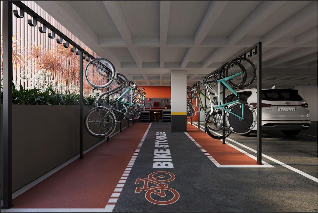 O empreendimento conta com diferenciais que o destacam, como painéis fotovoltaicos, sistema de reaproveitamento de água da chuva, um depósito destinado à separação de lixo reciclável, além de dispositivos economizadores de energia e água, que contribuem para a sustentabilidade e eficiência dos recursos utilizados.