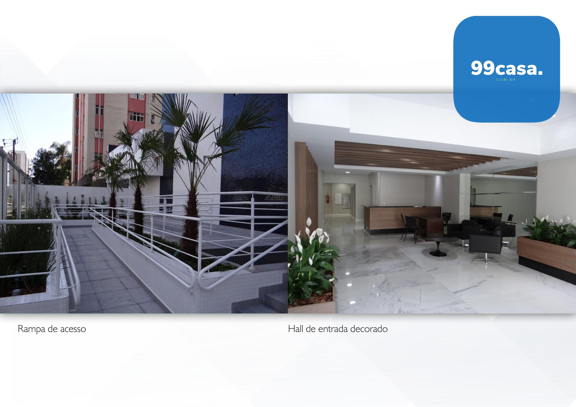 Sacada com guarda corpo em vidro laminado; água quente nos banheiros e cozinha; pisos, revestimentos, louças e metais de alto padrão; esquadrias modernas, brancas; Fachada pastilhada; Muro Frontal em vidro Blindex e Hall de entrada decorado.