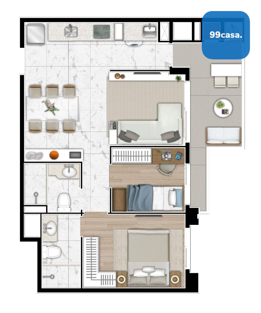 2 quartos, sendo 1 suíte