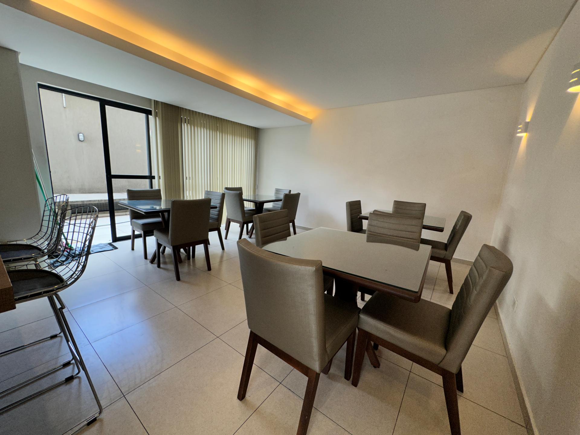 Apartamento localizado no primeiro andar, parcialmente mobiliado, com teto rebaixado em gesso, oferecendo conforto e ótimo padrão de acabamento.