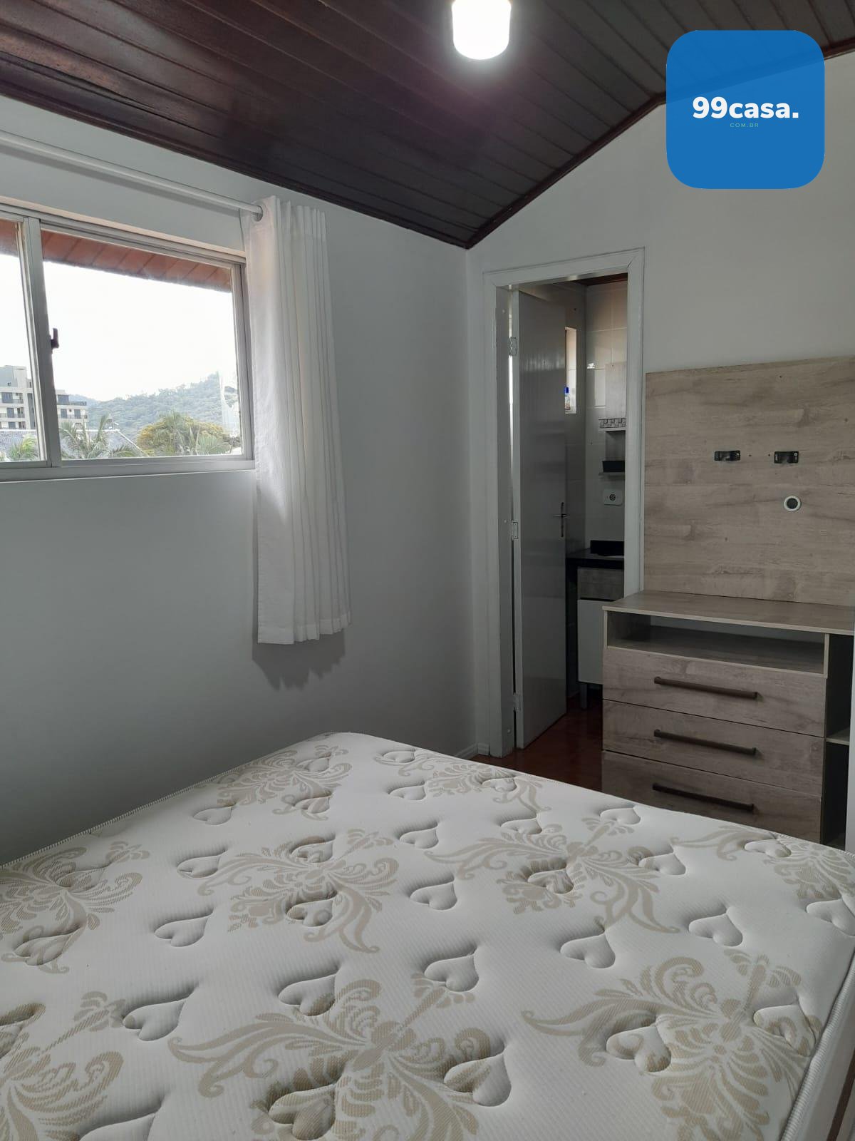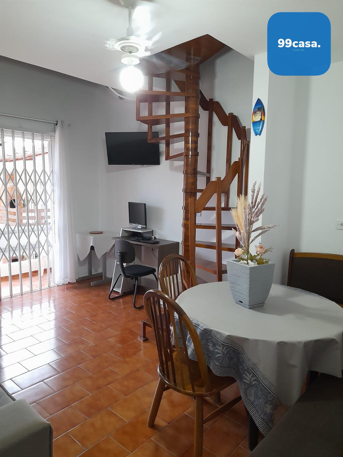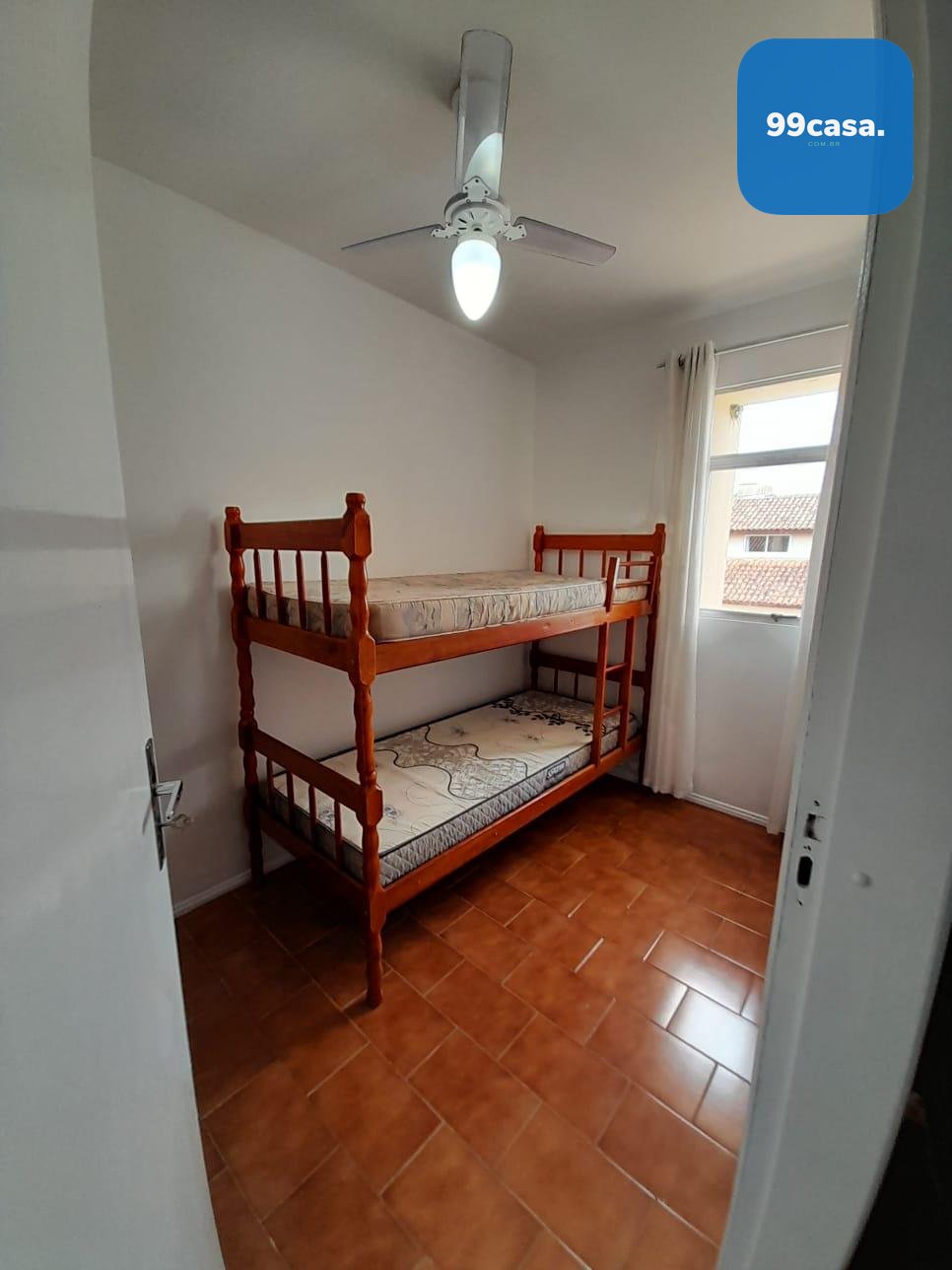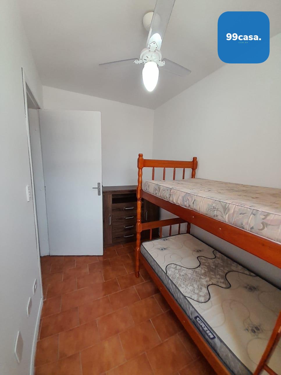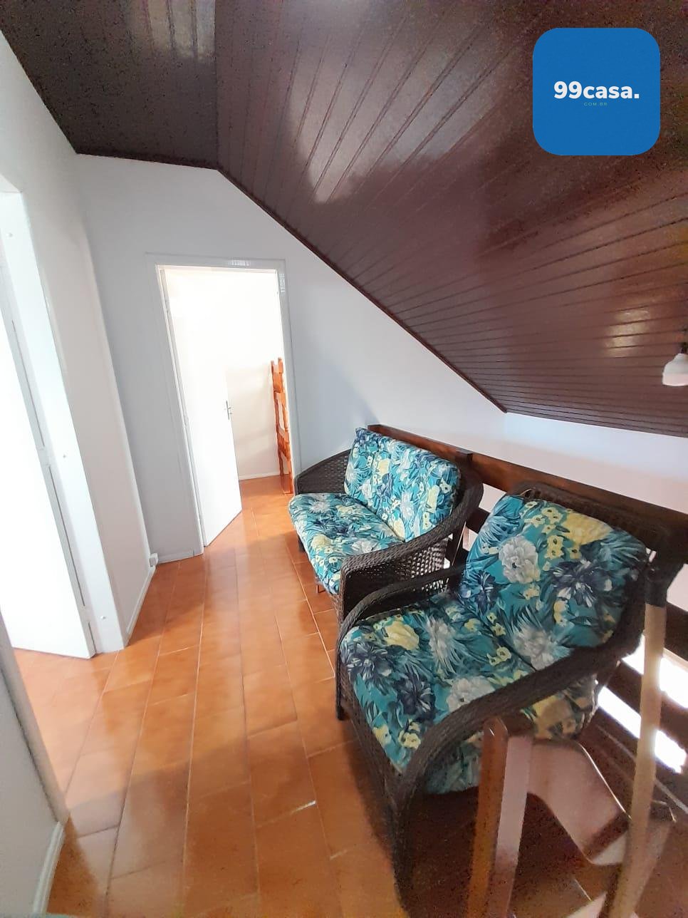 3 quartos, sendo 1 suíte, com ventiladores em todos os cômodos. Um dos quartos está localizado no pavimento inferior, ideal para crianças ou hóspedes.