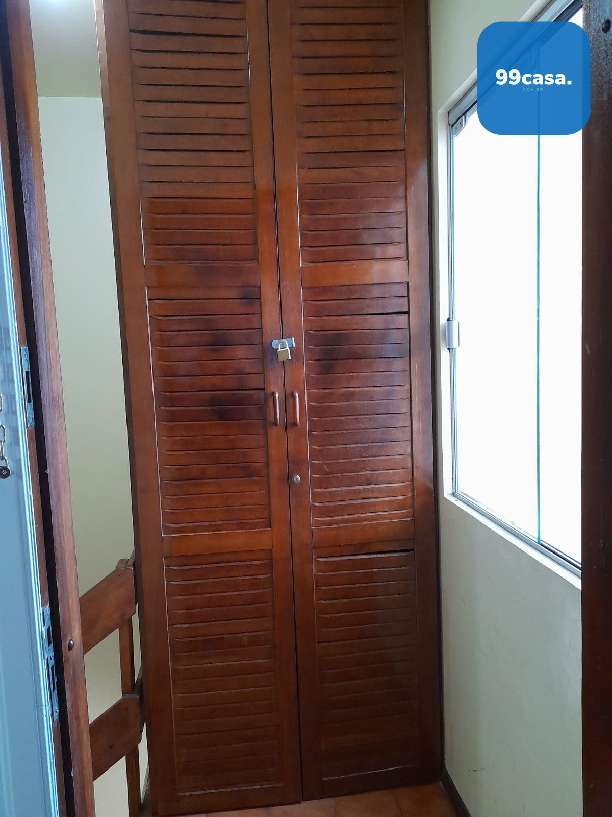 Armário externo de grande porte, ideal para guardar cadeiras, carrinhos, caixas e outros pertences, mantendo o ambiente interno sempre organizado.