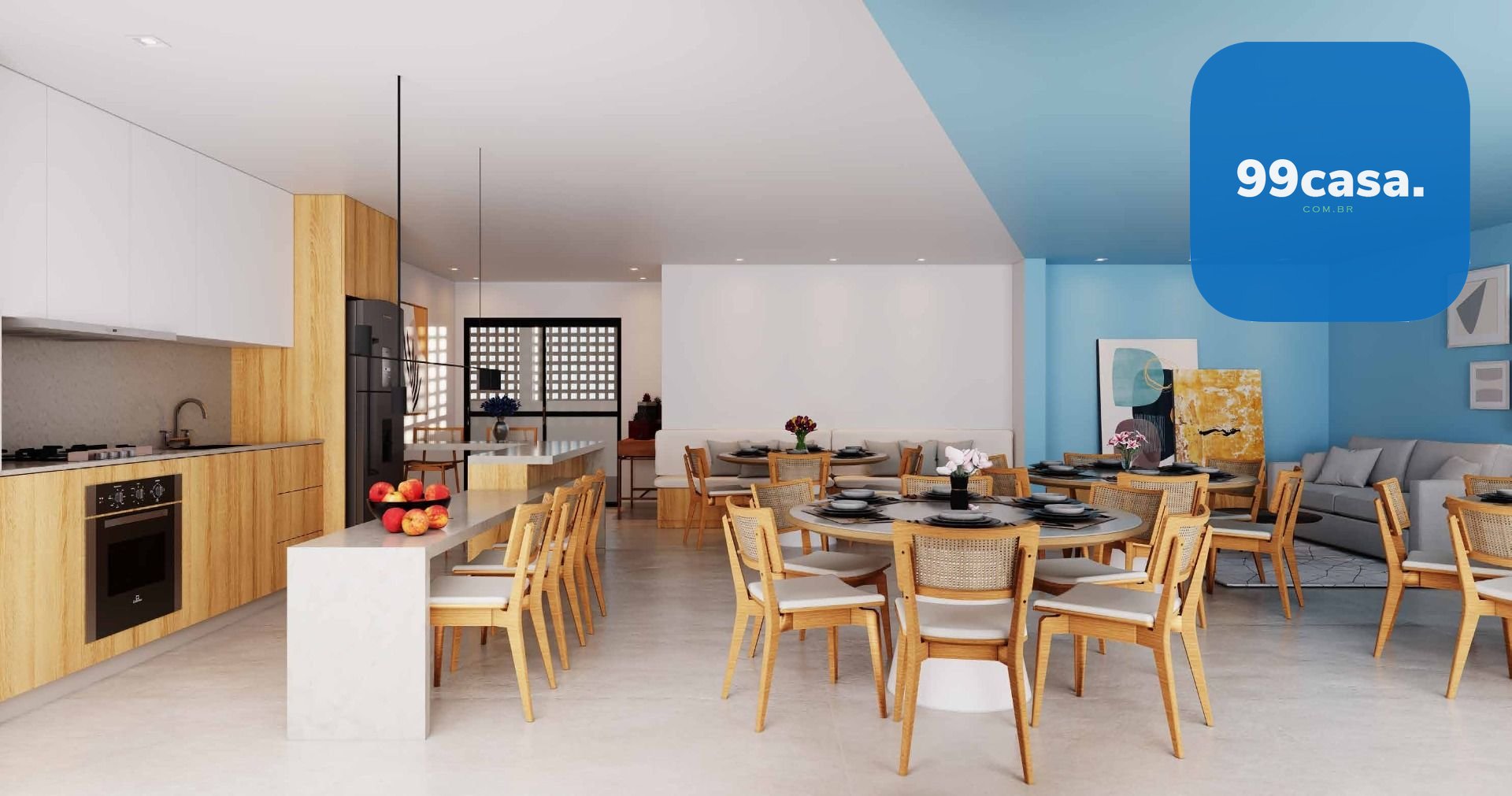 Lounge interno e externo, Gourmet externo, Hall Mercado para socialização e encontros