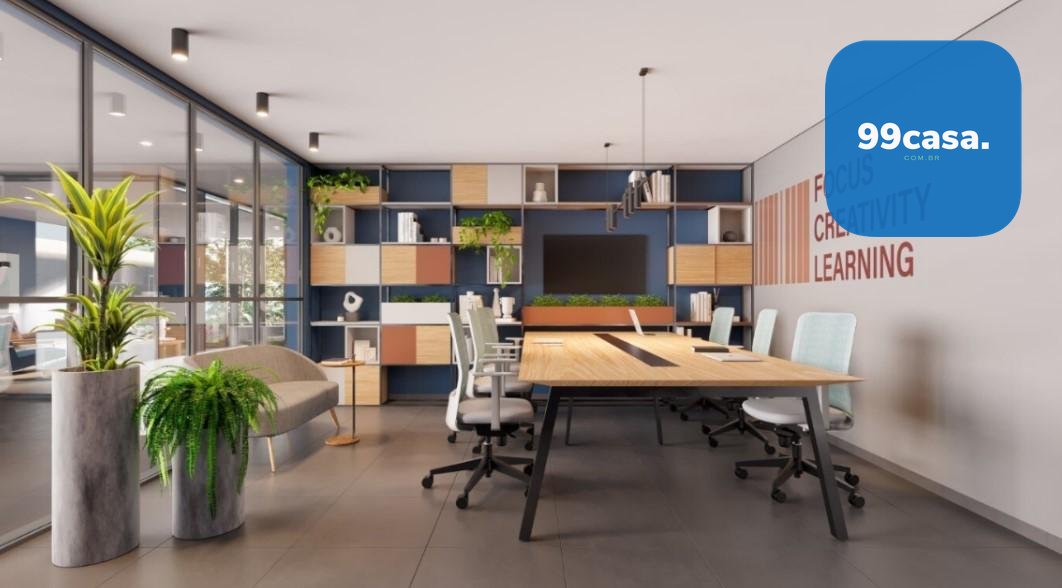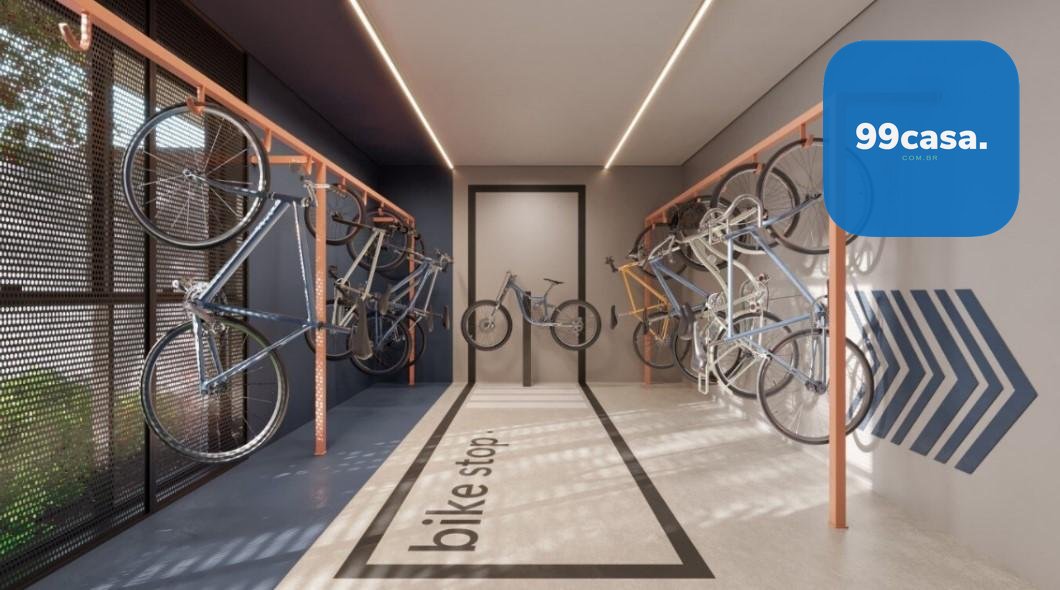 Lounge com cozinha e jogos, coworking e bicicletário