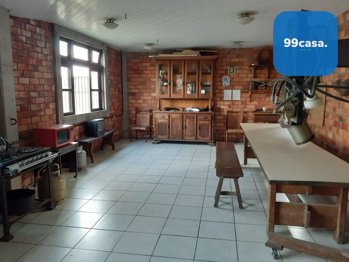 Área de convivência: Refeitório equipado com fogão à lenha, mesa e cadeiras. Banheiros feminino e masculino.