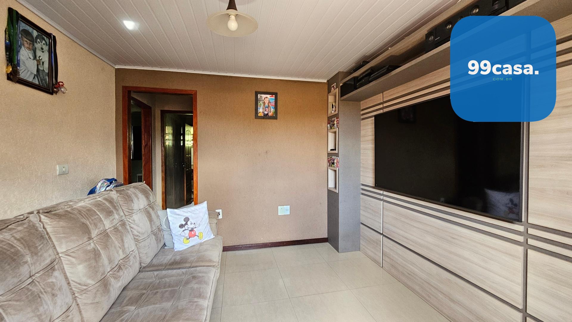 Apresentamos esta casa de 82m², com 3 dormitórios, ampla sala, cozinha funcional e banheiro social espaçoso. Conta ainda com garagem coberta e um quiosque com churrasqueira na frente, perfeito para momentos de lazer com a família e amigos.