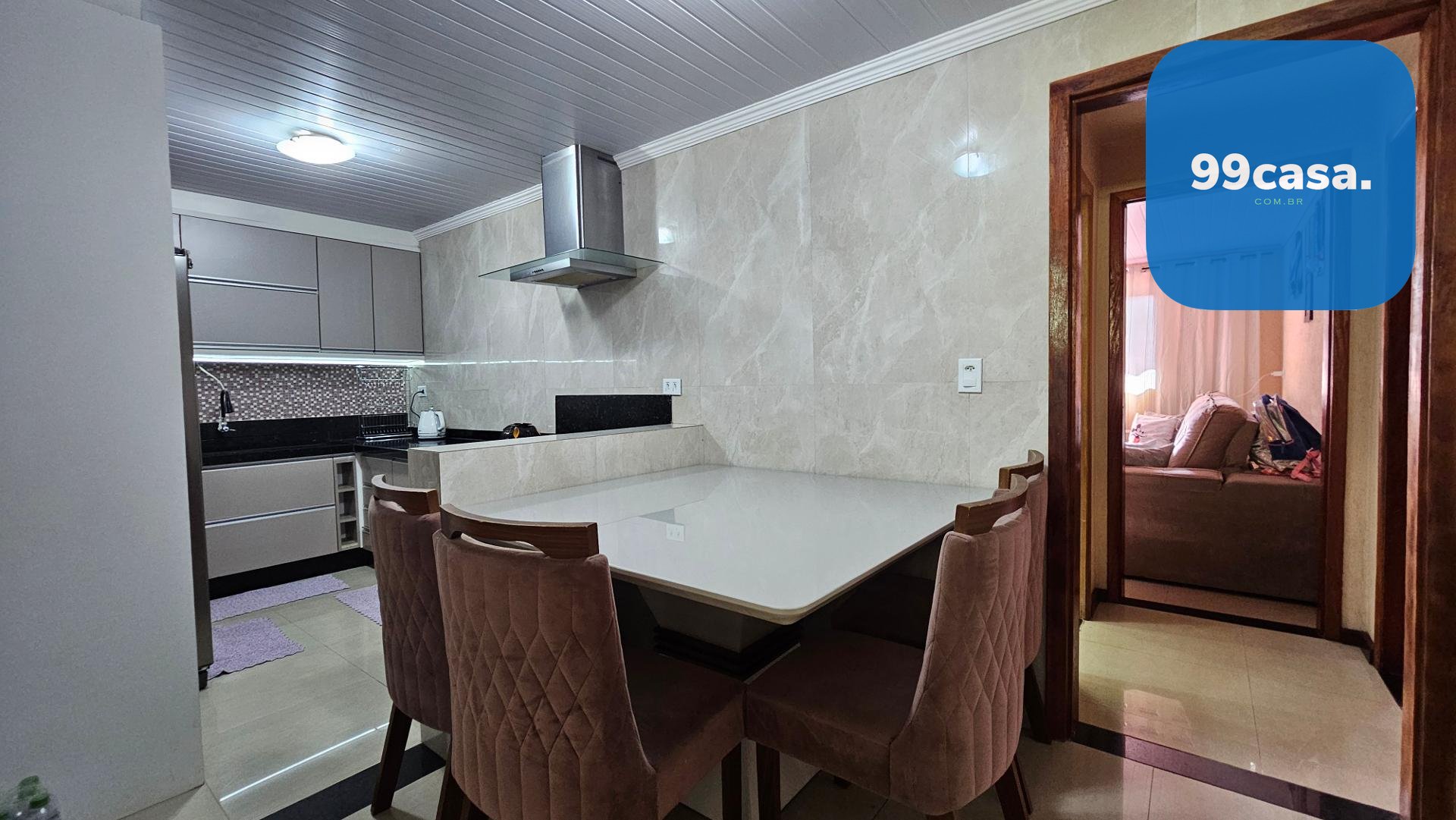O imóvel possui acabamento de alta qualidade, com porcelanato no piso e revestimento nas paredes do banheiro e cozinha. Todos os ambientes vêm com móveis planejados sob medida, incluindo sala, cozinha, banheiro e quartos, proporcionando conforto e praticidade.