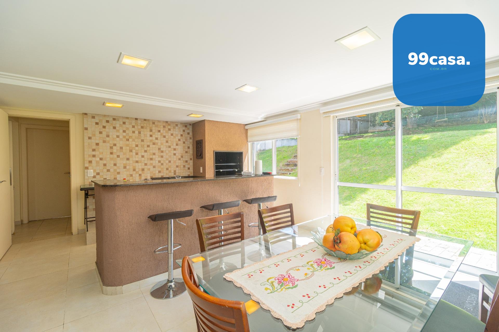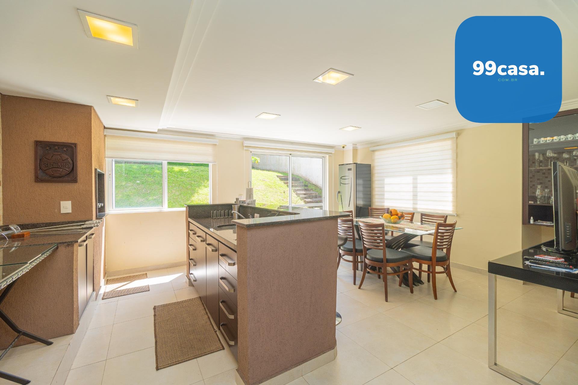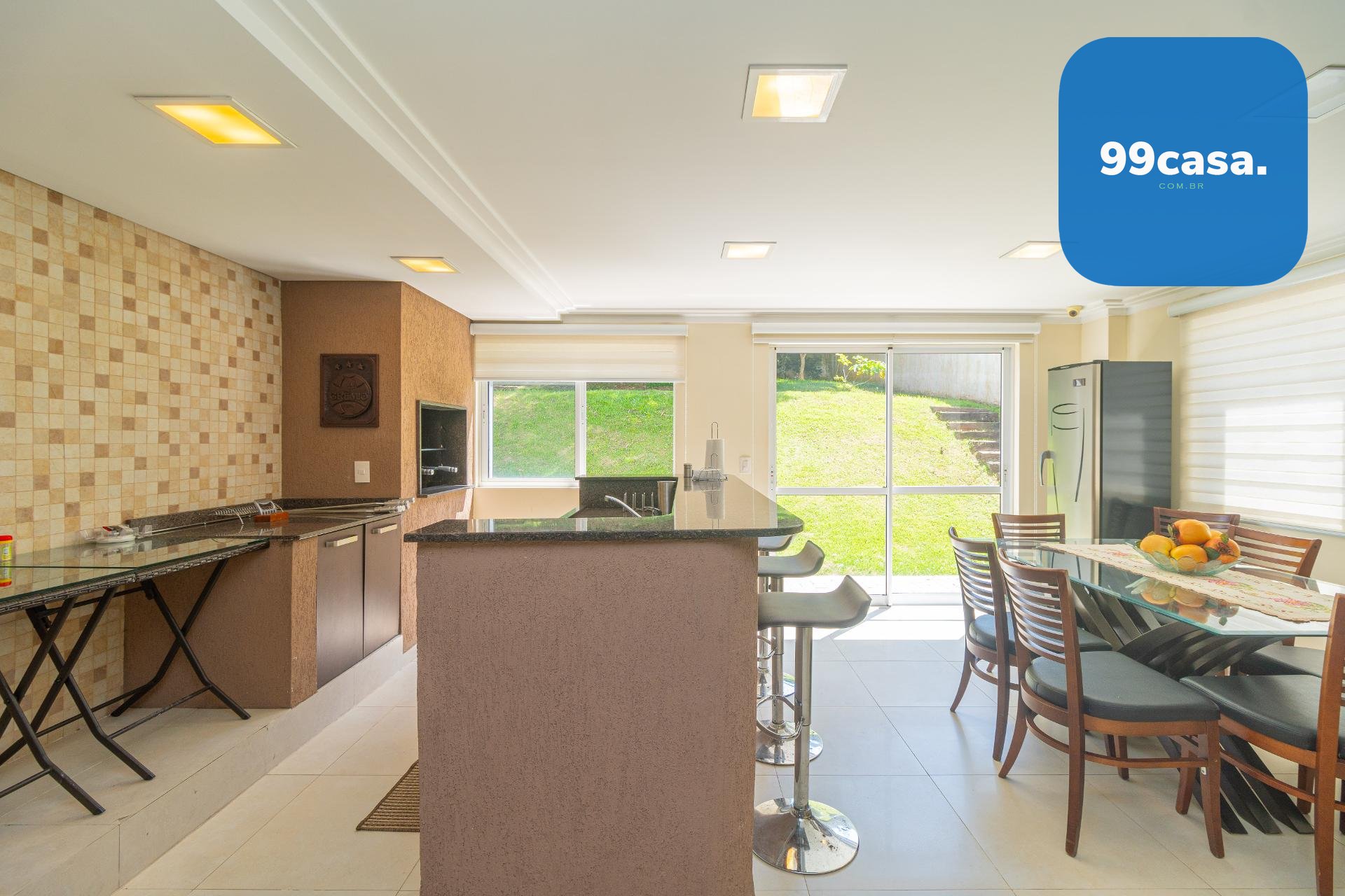 O espaço gourmet se conecta diretamente a um amplo jardim nos fundos: arborizado, agradável e com excelente privacidade. Um cenário perfeito para confraternizações, lazer ao ar livre ou simplesmente relaxar em meio ao verde.