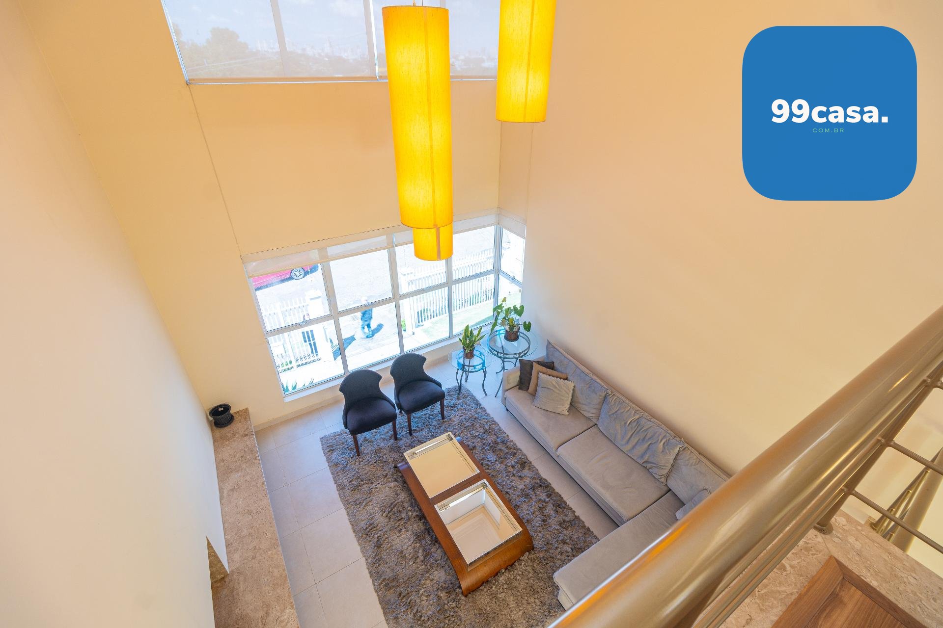 A área social impressiona pelo pé-direito alto, que amplia a sensação de espaço e proporciona luminosidade abundante.