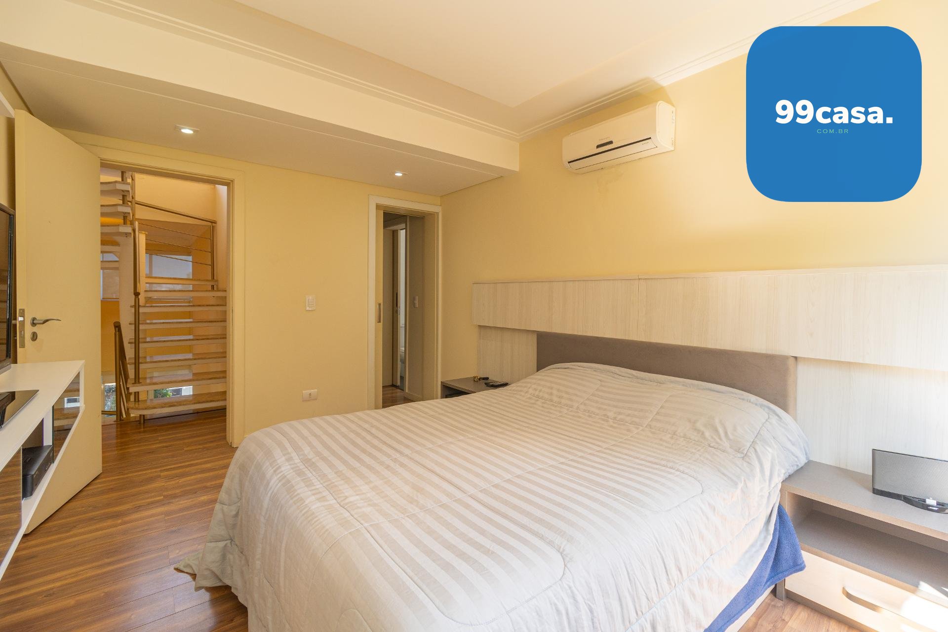 A área íntima foi cuidadosamente planejada para proporcionar silêncio, aconchego e organização.