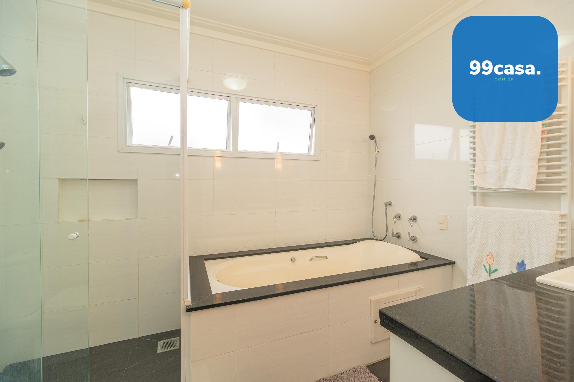 Banheiro generoso com banheira
