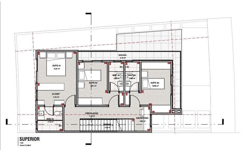 Segundo piso com 3 suítes.
