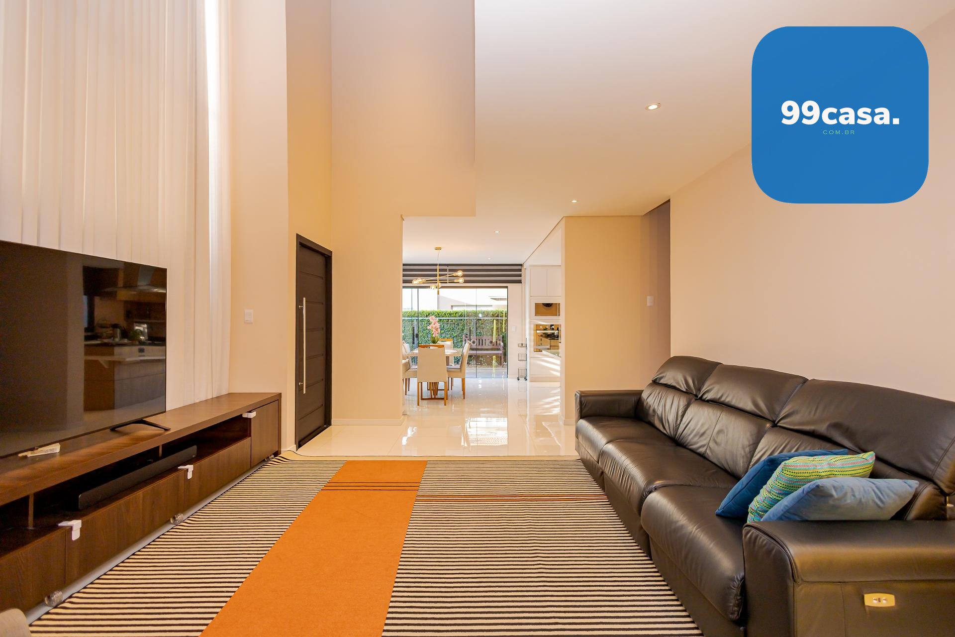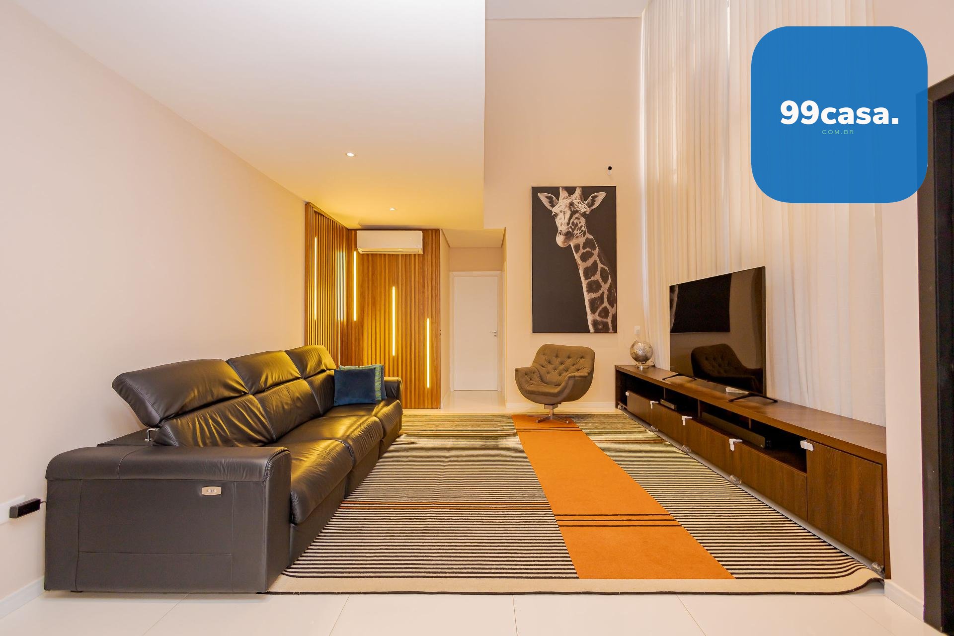 * No piso térreo a sala com pé direito duplo e um mezanino que garante excelente iluminação natural