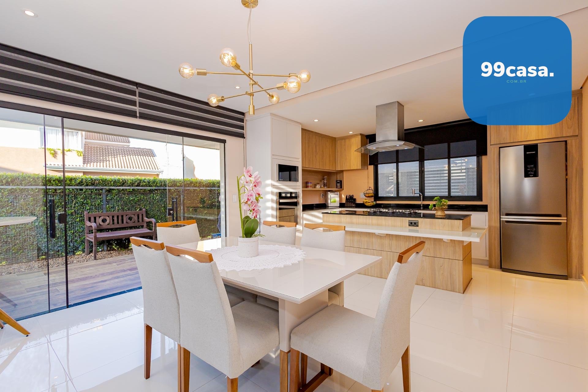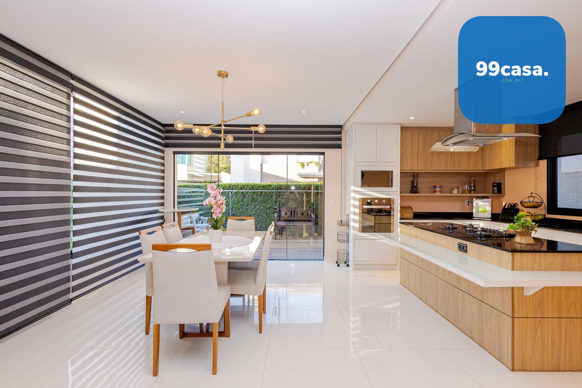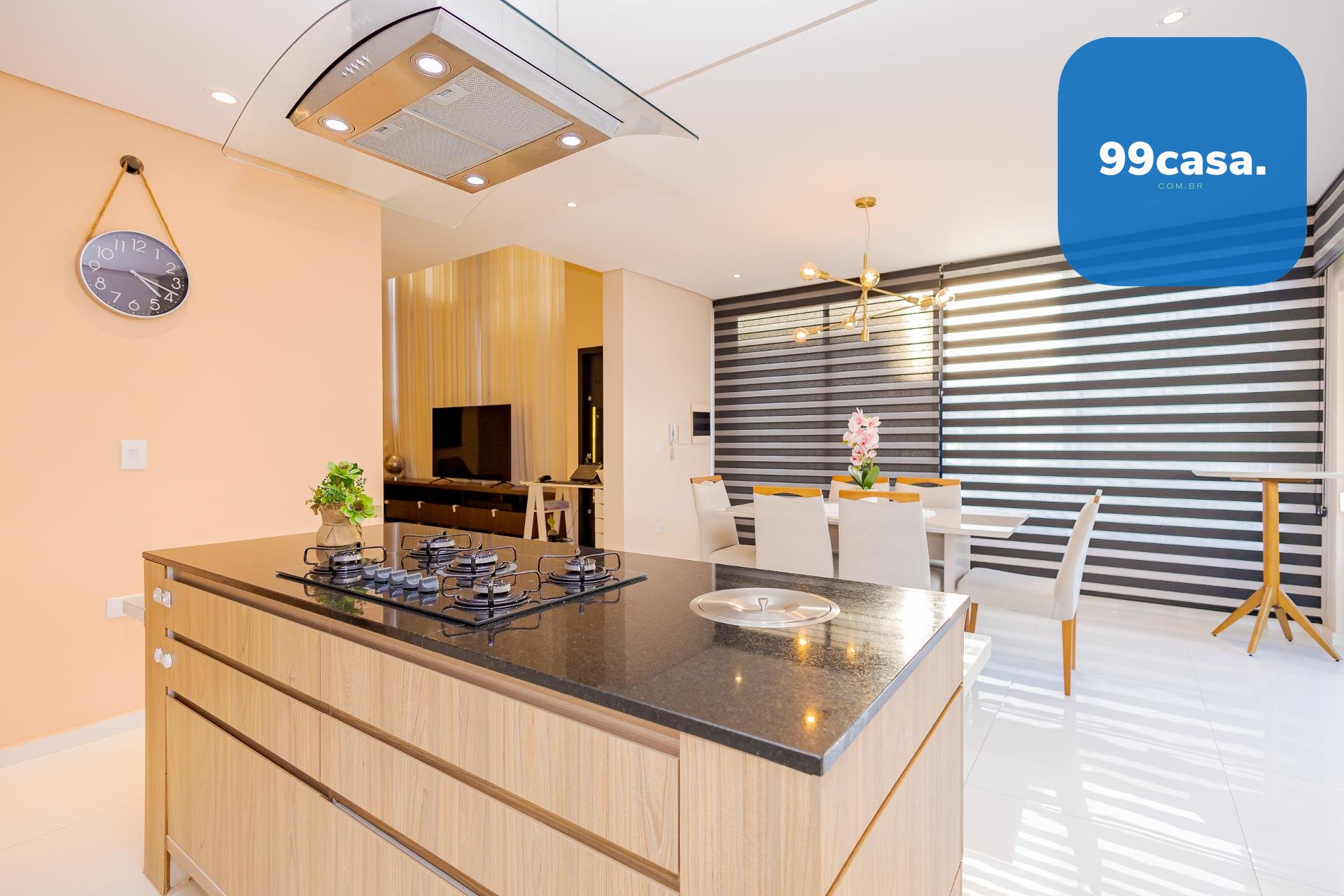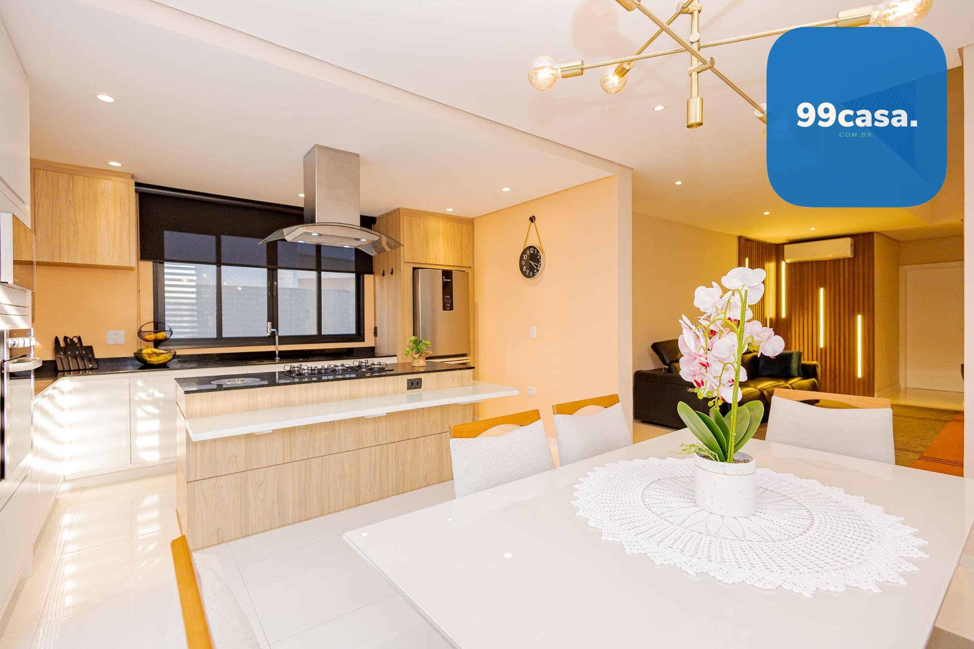 * A área da cozinha em conceito aberto com ilha, conta com acesso à varanda gourmet integrada à sala de jantar