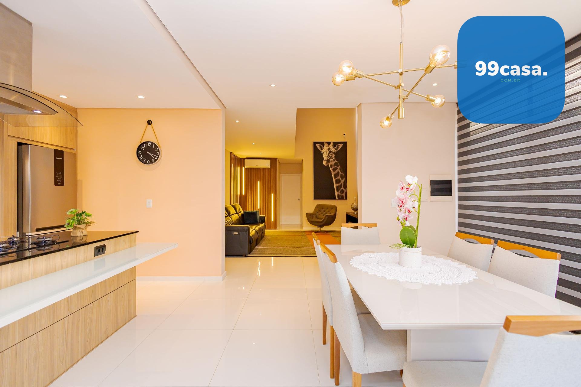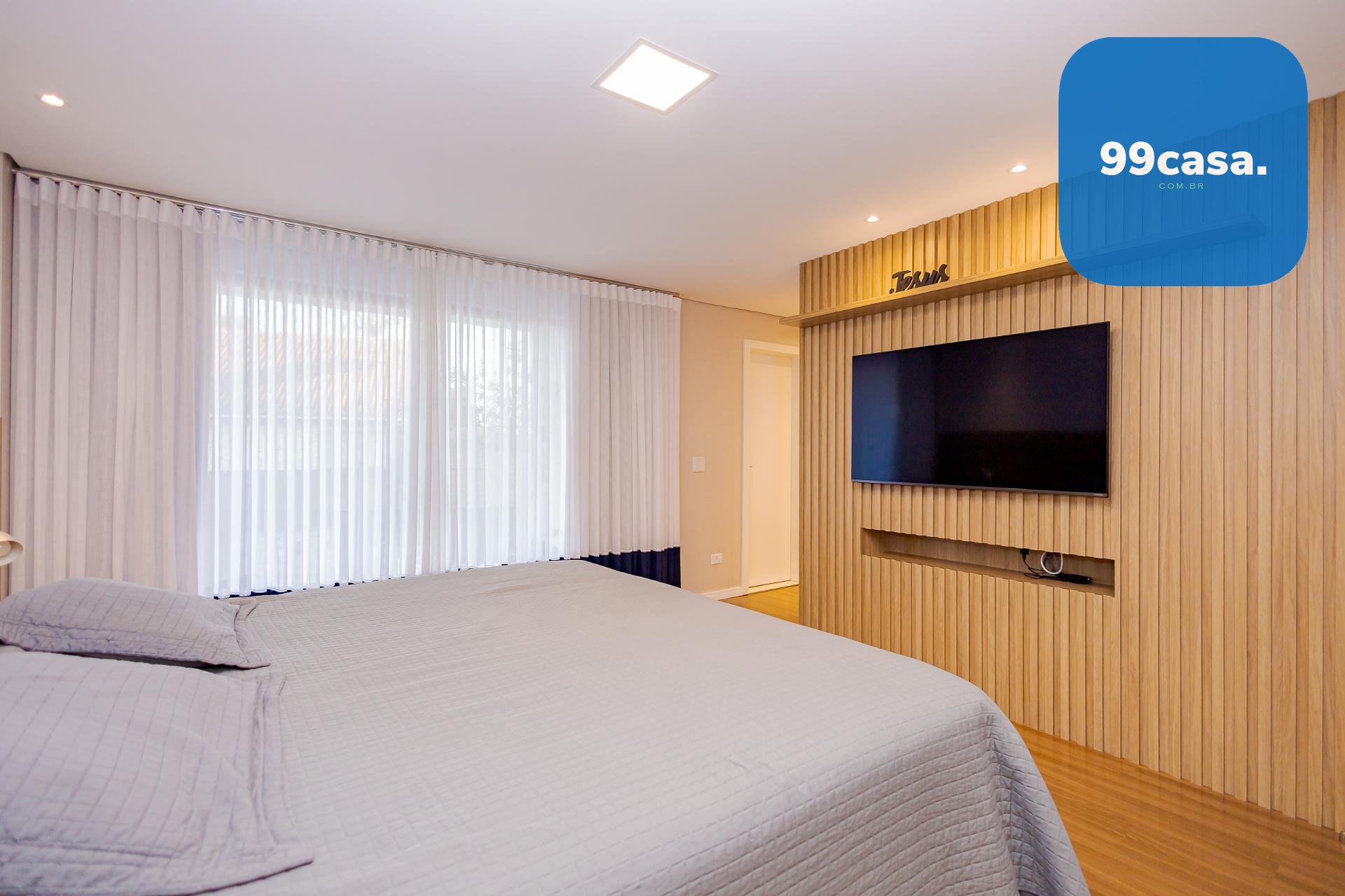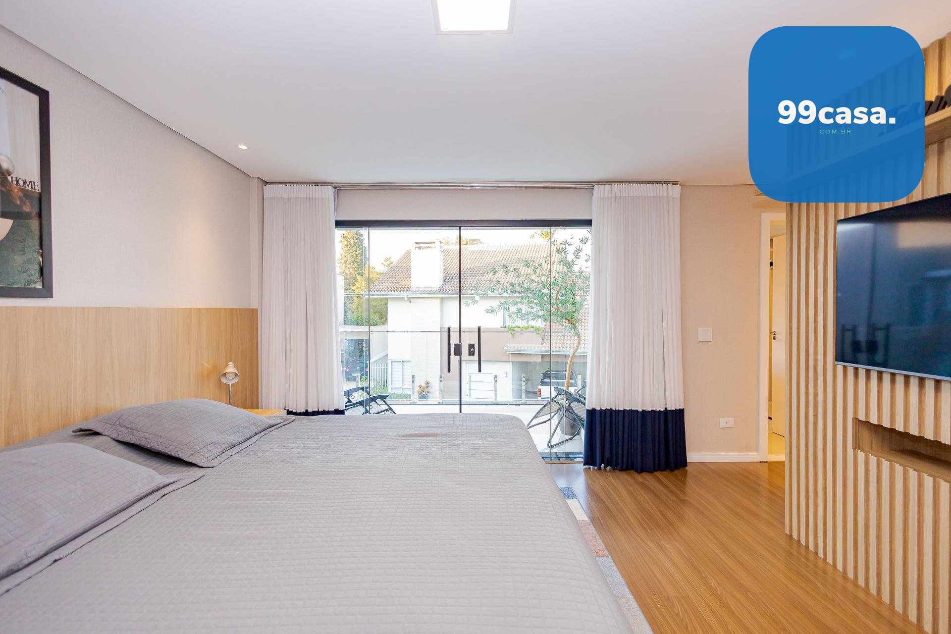 * A casa será entregue com todos os móveis planejados fixos, eletros fixos de cozinha, aparelhos de ar-condicionado, além de gesso e projeto luminotécnico, piso porcelanato e laminado, blackouts, persianas e cortinas