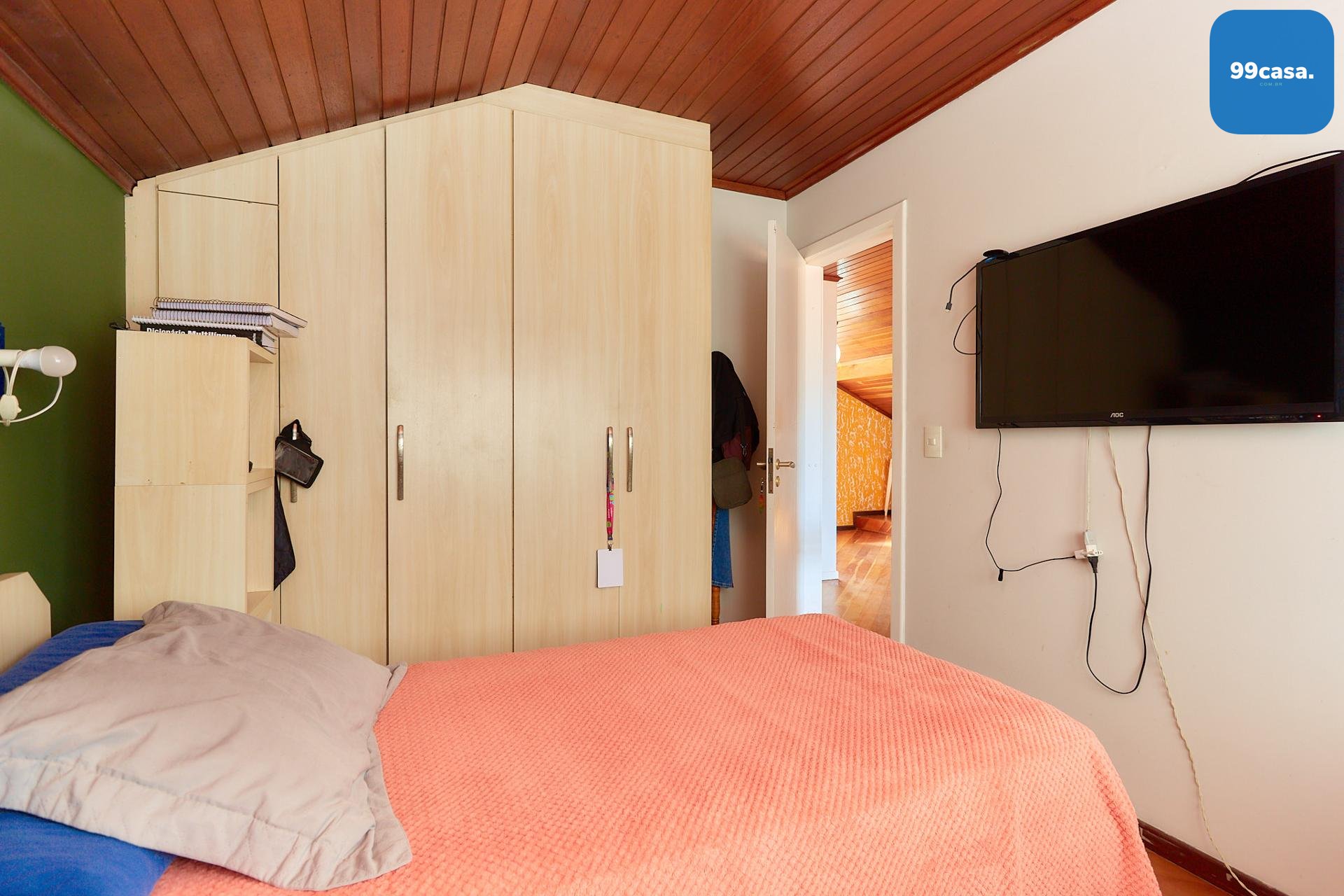 Parte superior: 2 quartos, banheiro social e sala de TV