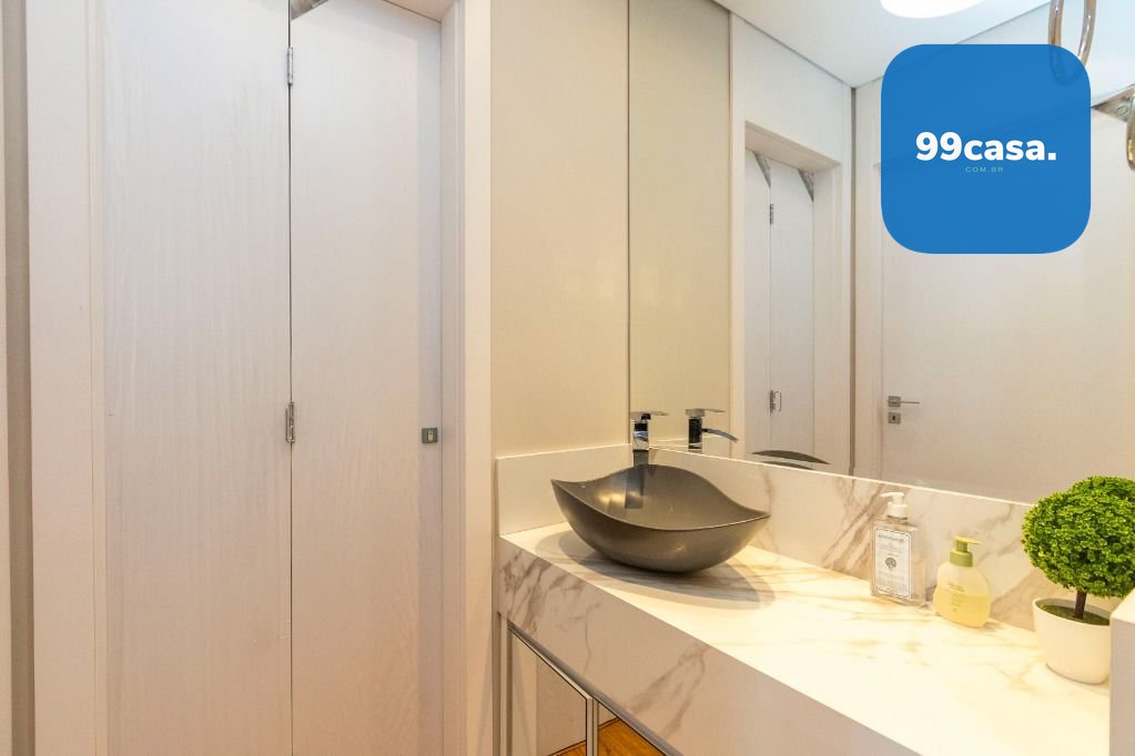 No térreo temos a cozinha toda equipada integrada, espaço gourmet com churrasqueira, as salas de jantar e estar, lavabo, lavanderia e um jardim de inverno. 2 vagas de garagens paralelas.