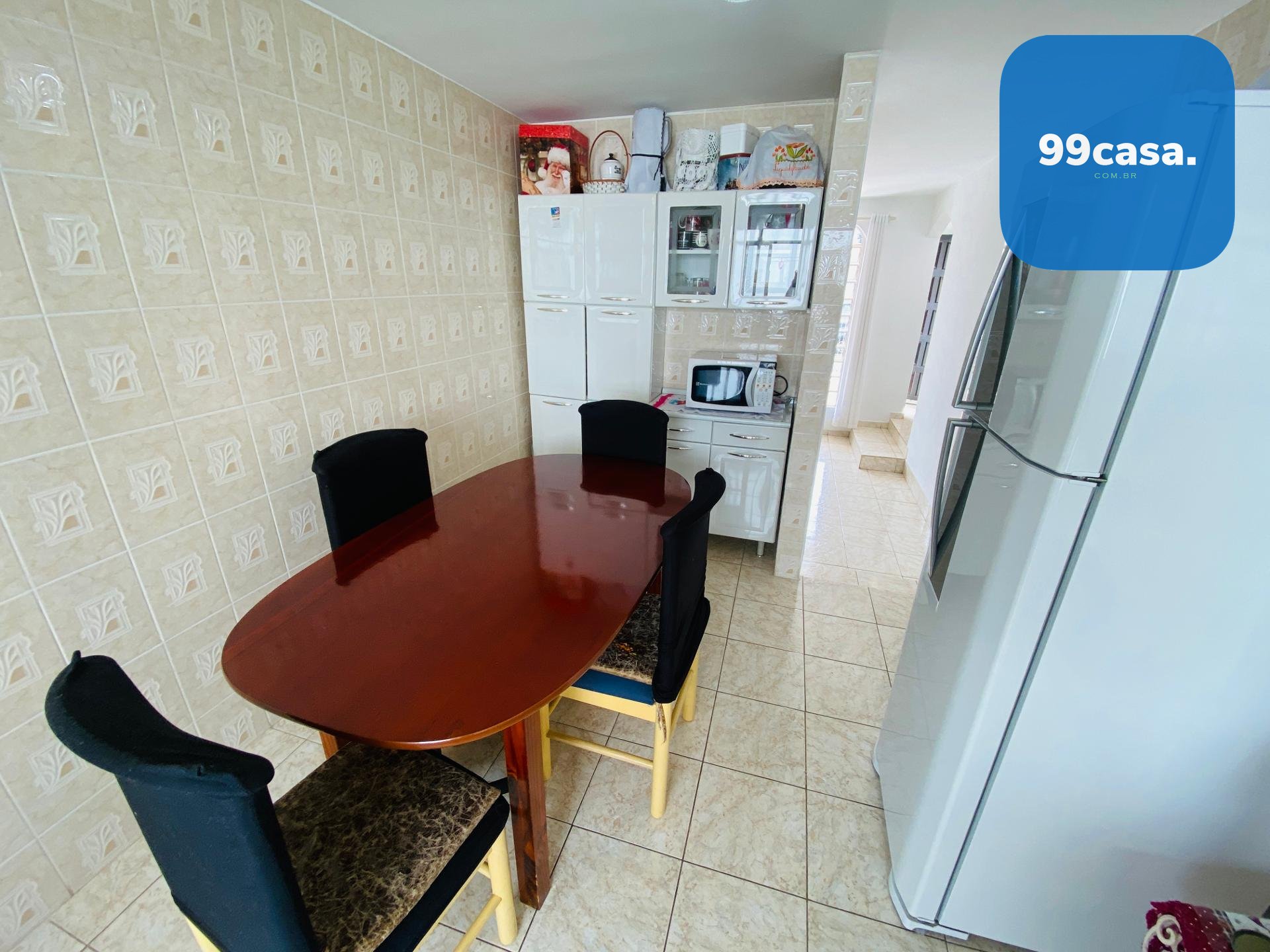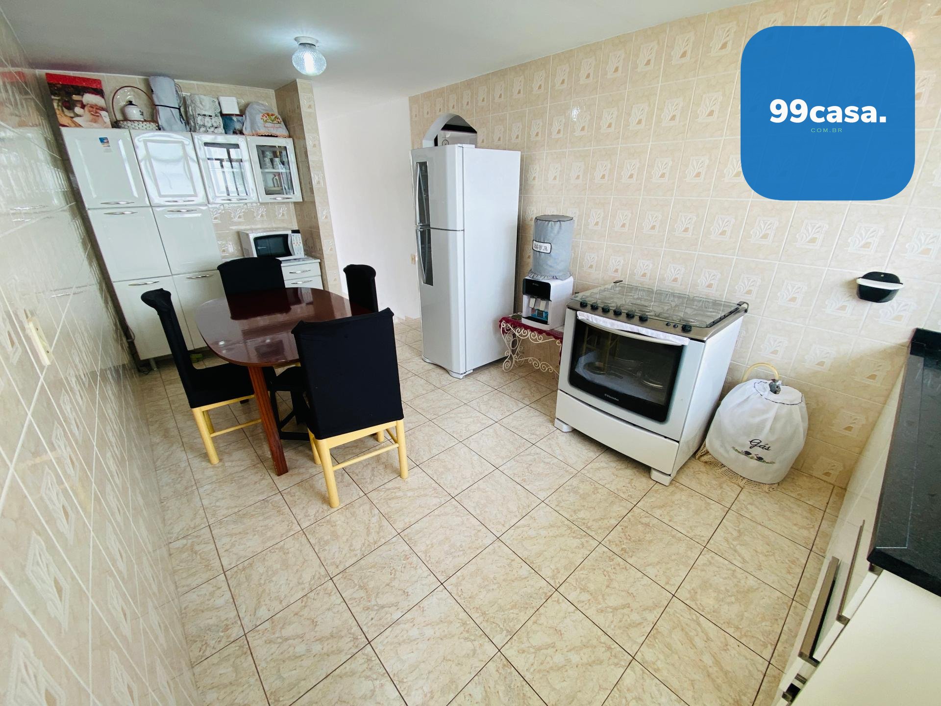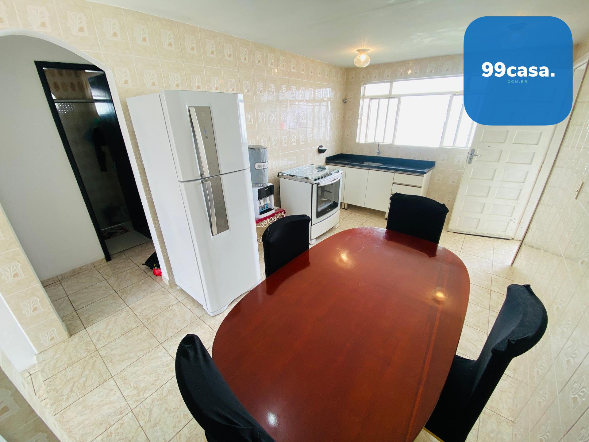 Cozinha, sala de estar, sala de jantar e área de serviço