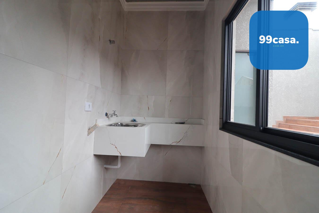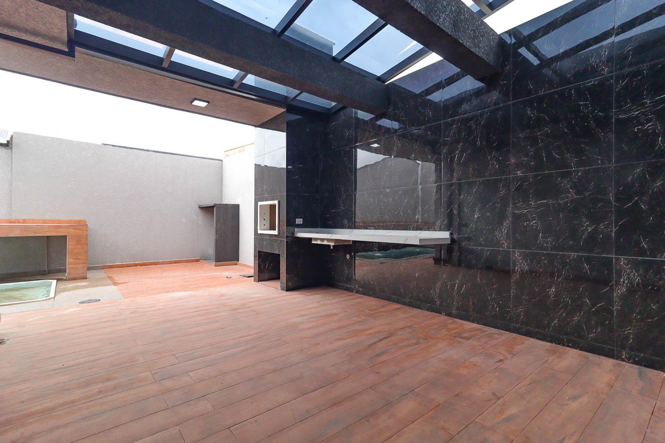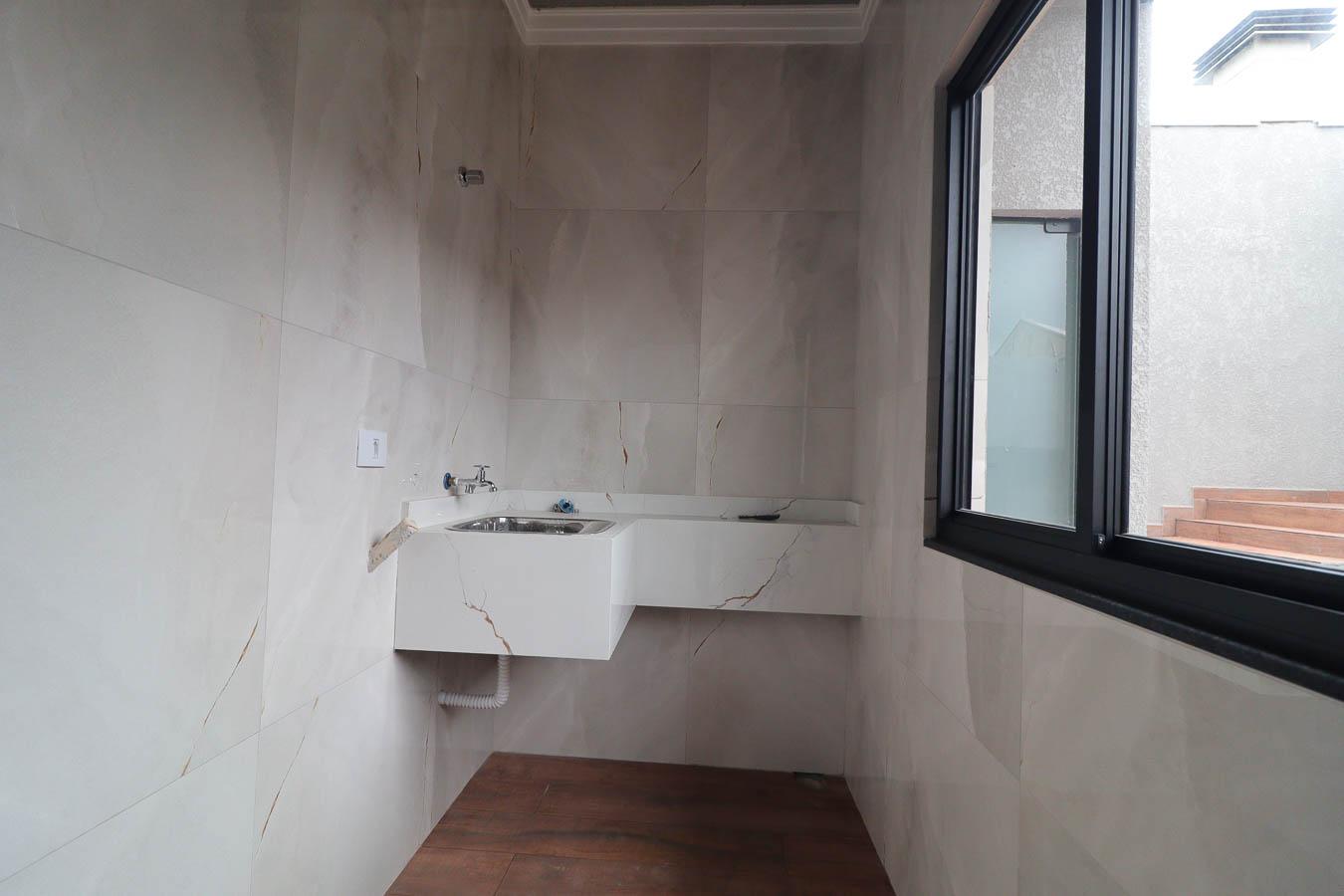 - Edícula com Lavanderia Fechada: Pia de porcelanato esculpido, coberta de vidro para mais iluminação.