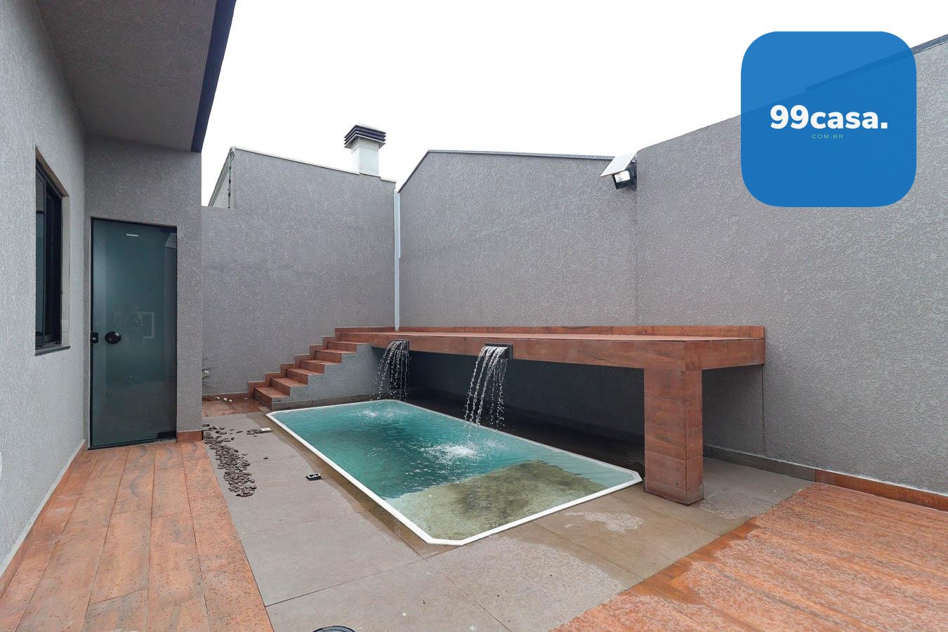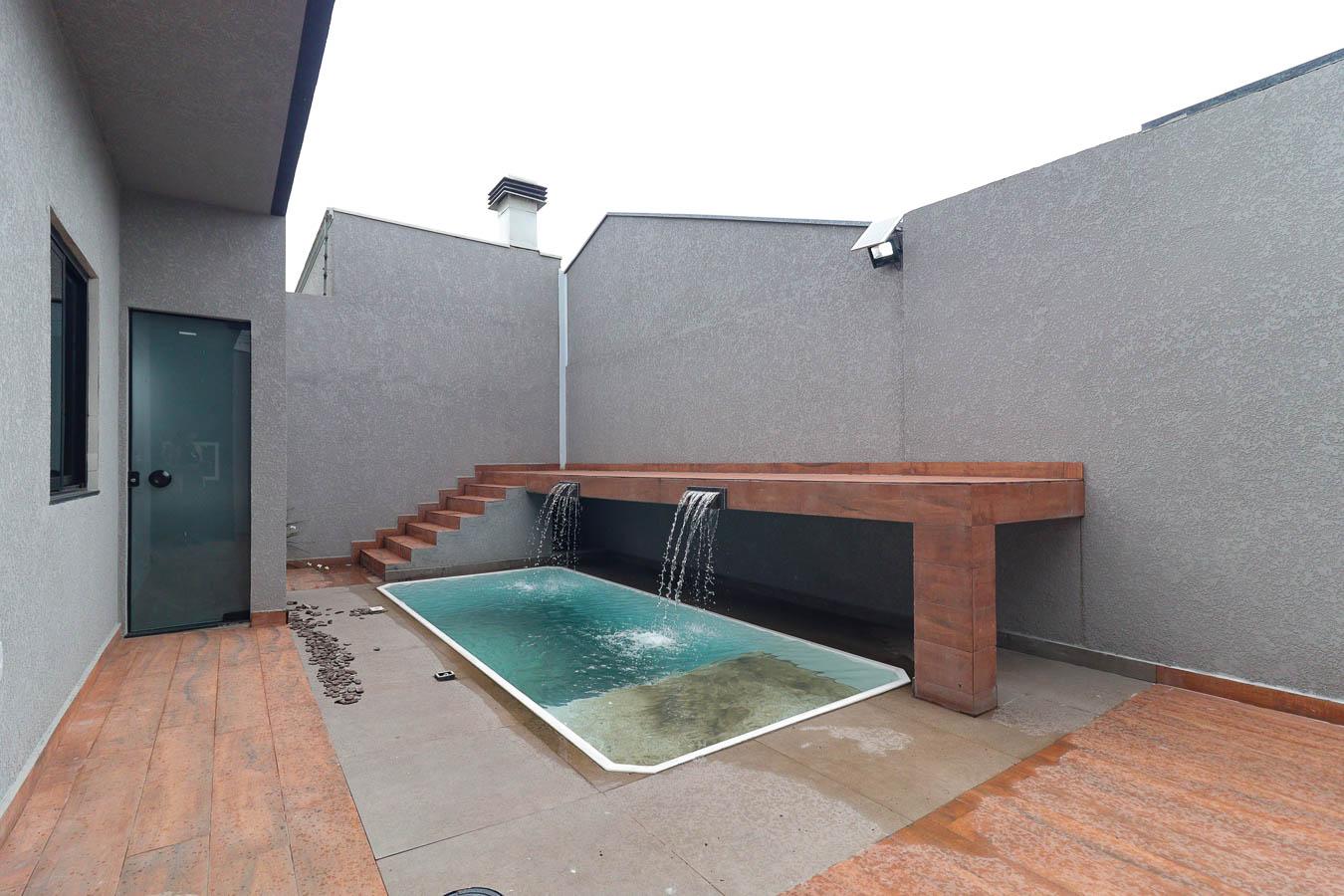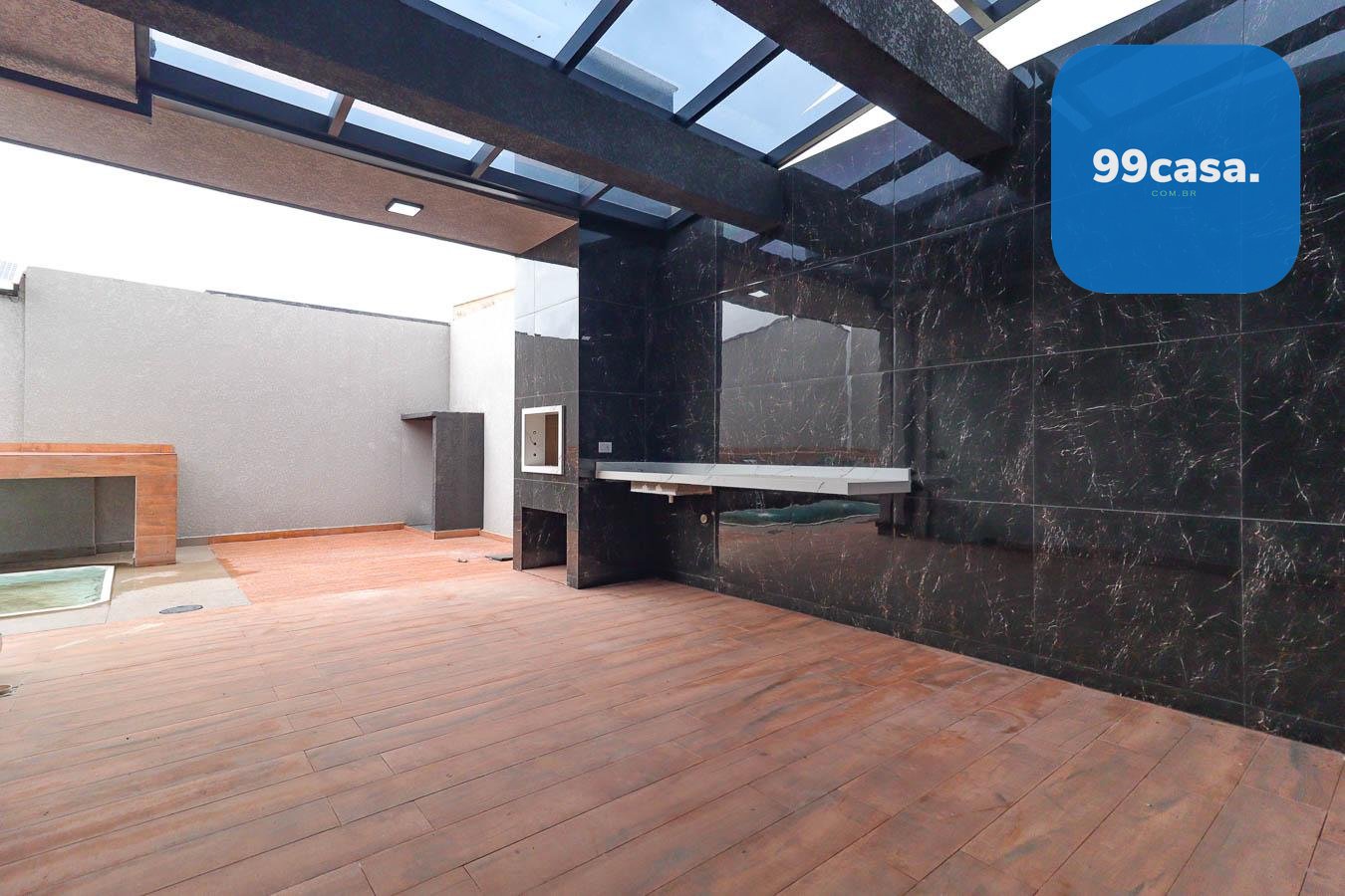 - Edícula com Lavanderia Fechada: Pia de porcelanato esculpido, coberta de vidro para mais iluminação.