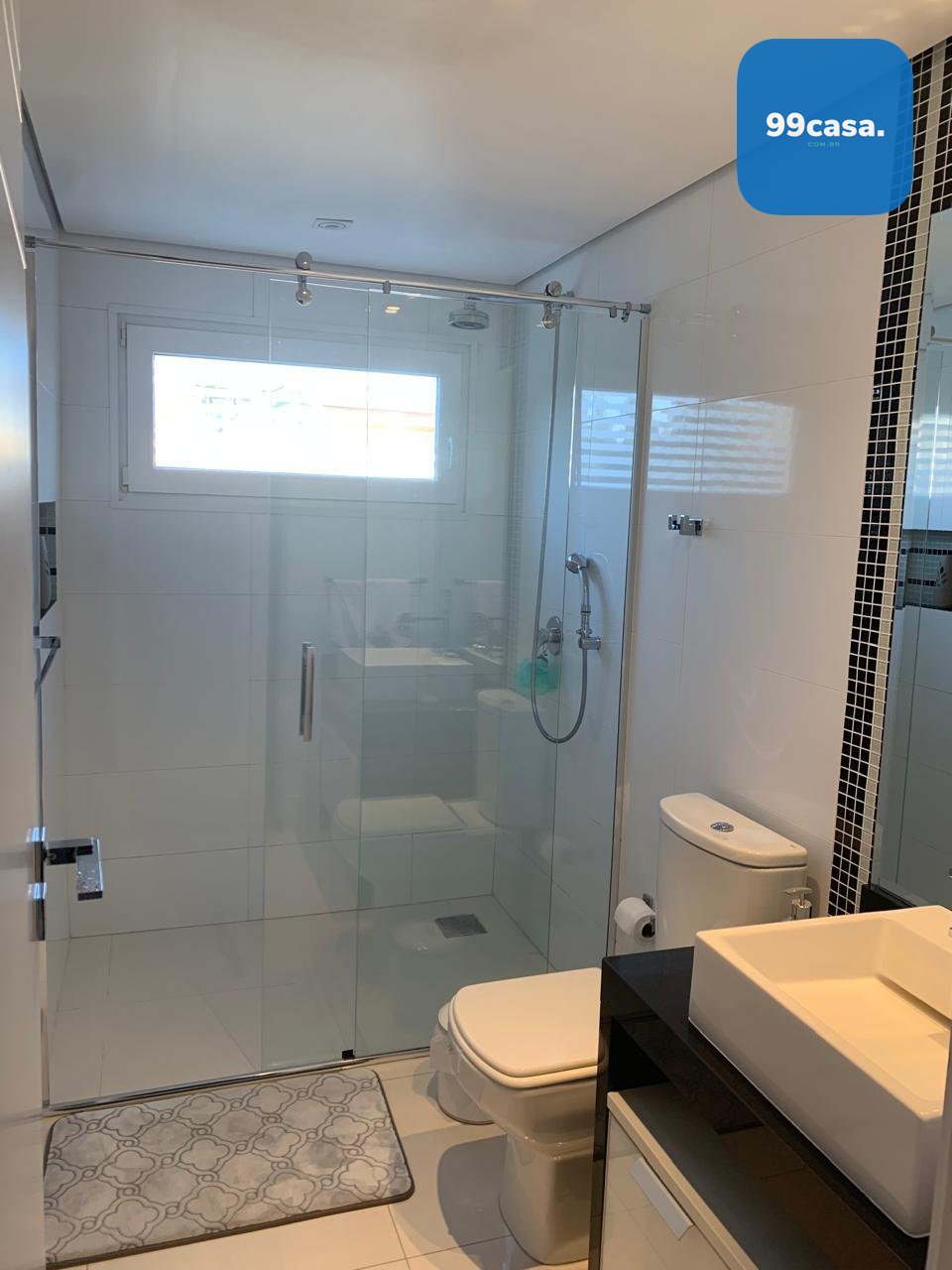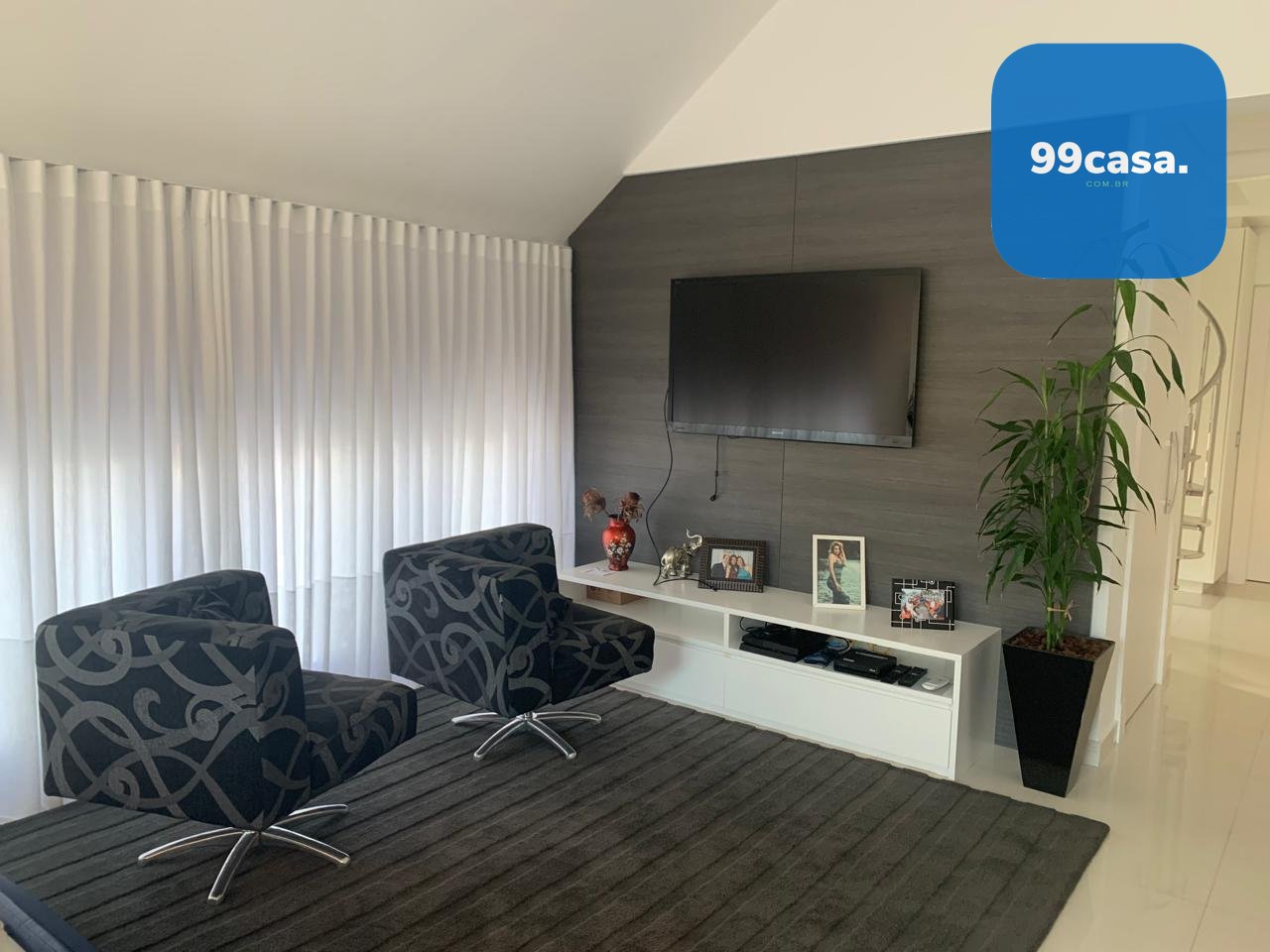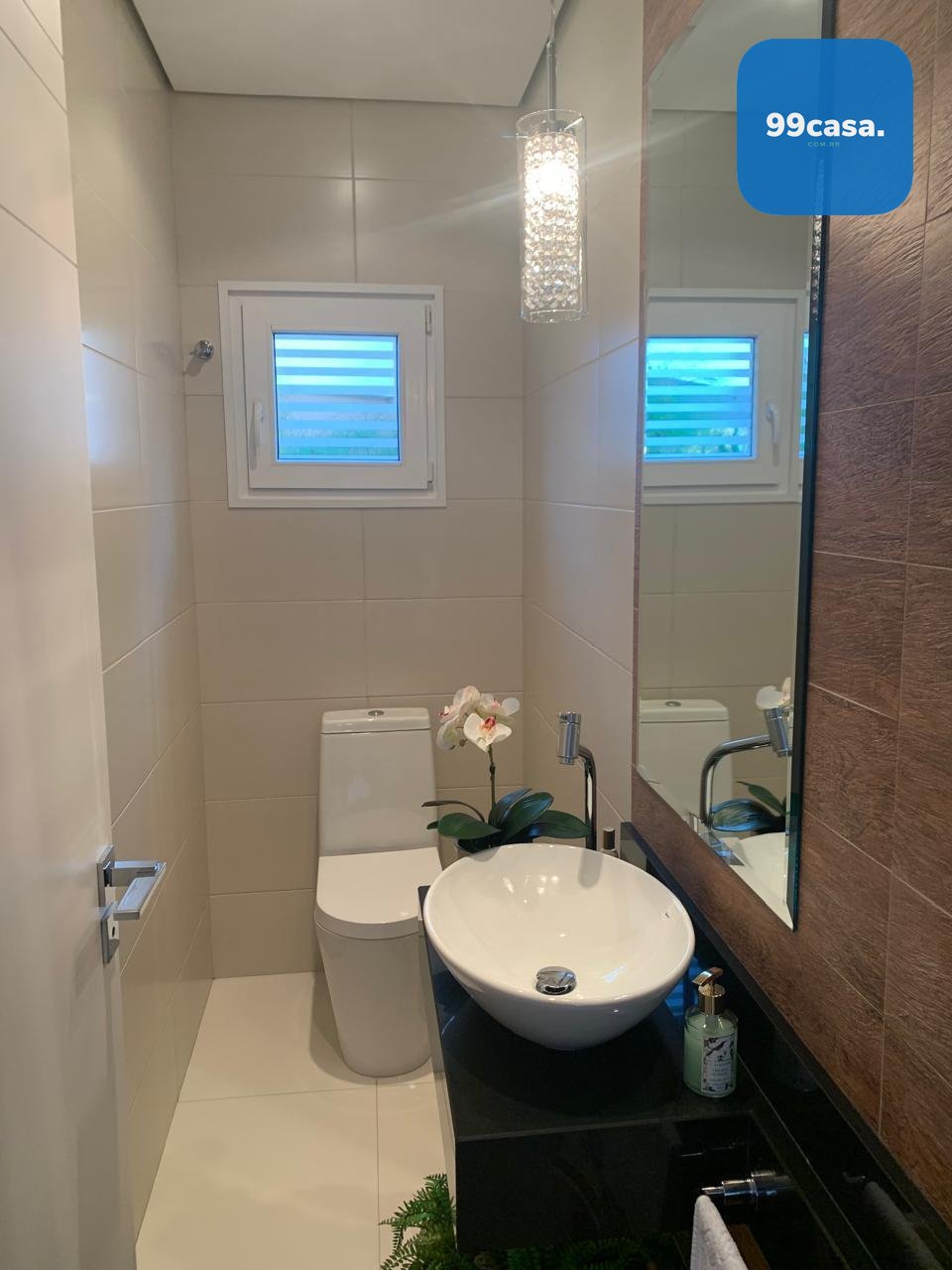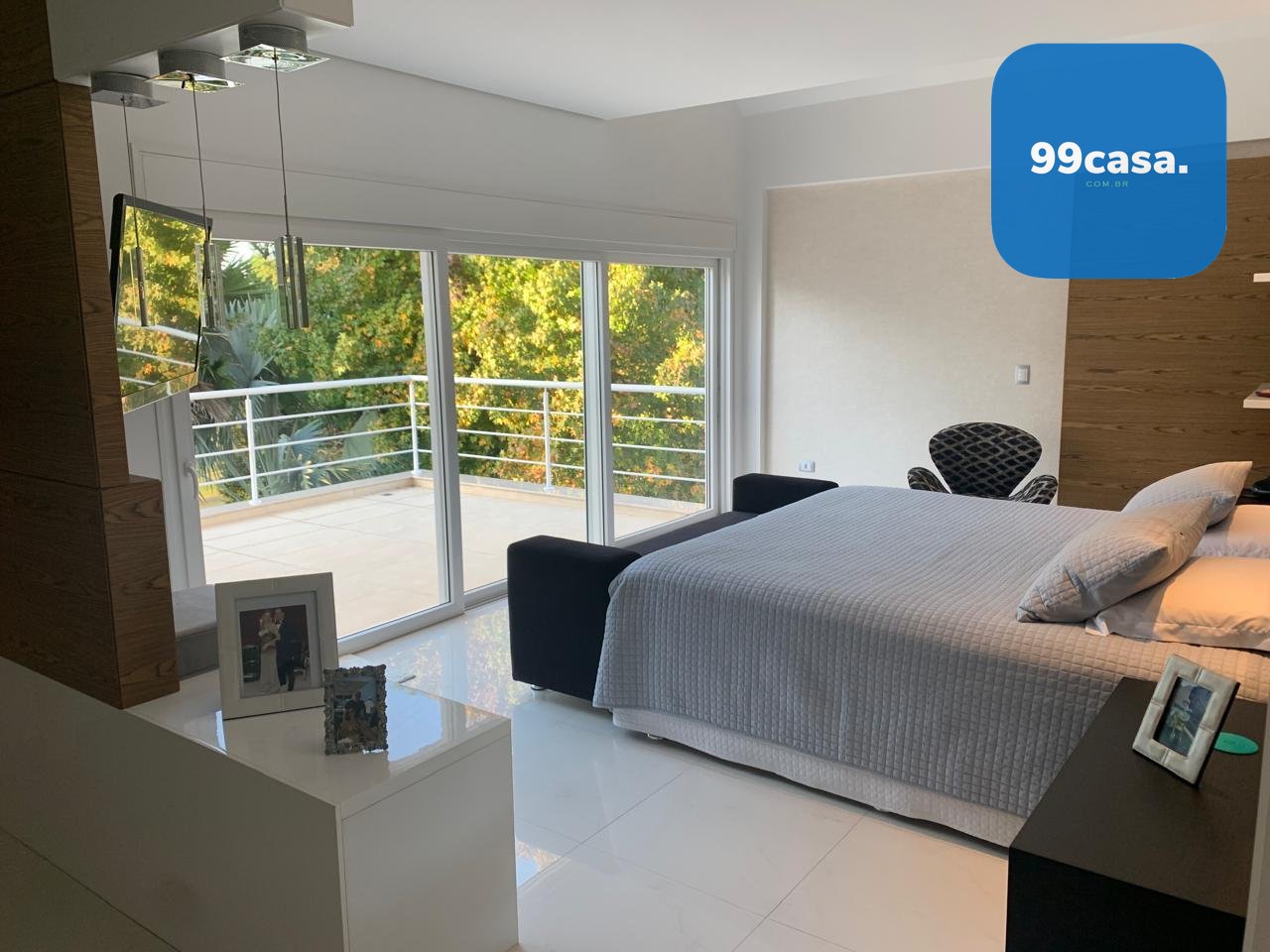 A residência conta com elevador atendendo os quatro pavimentos, aquecimento solar, ambientes climatizados e marcenaria planejada de alto padrão.