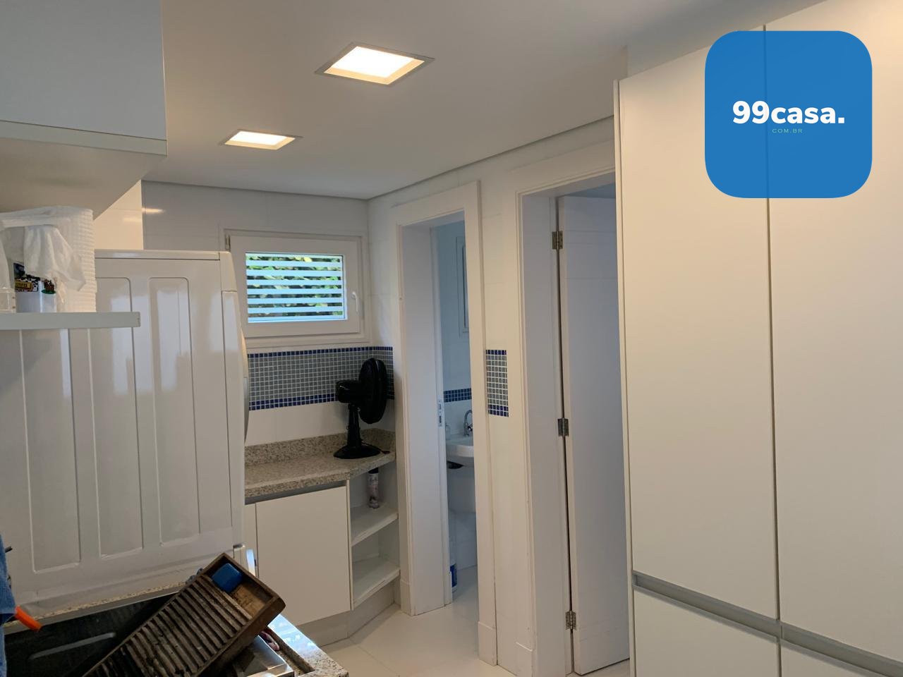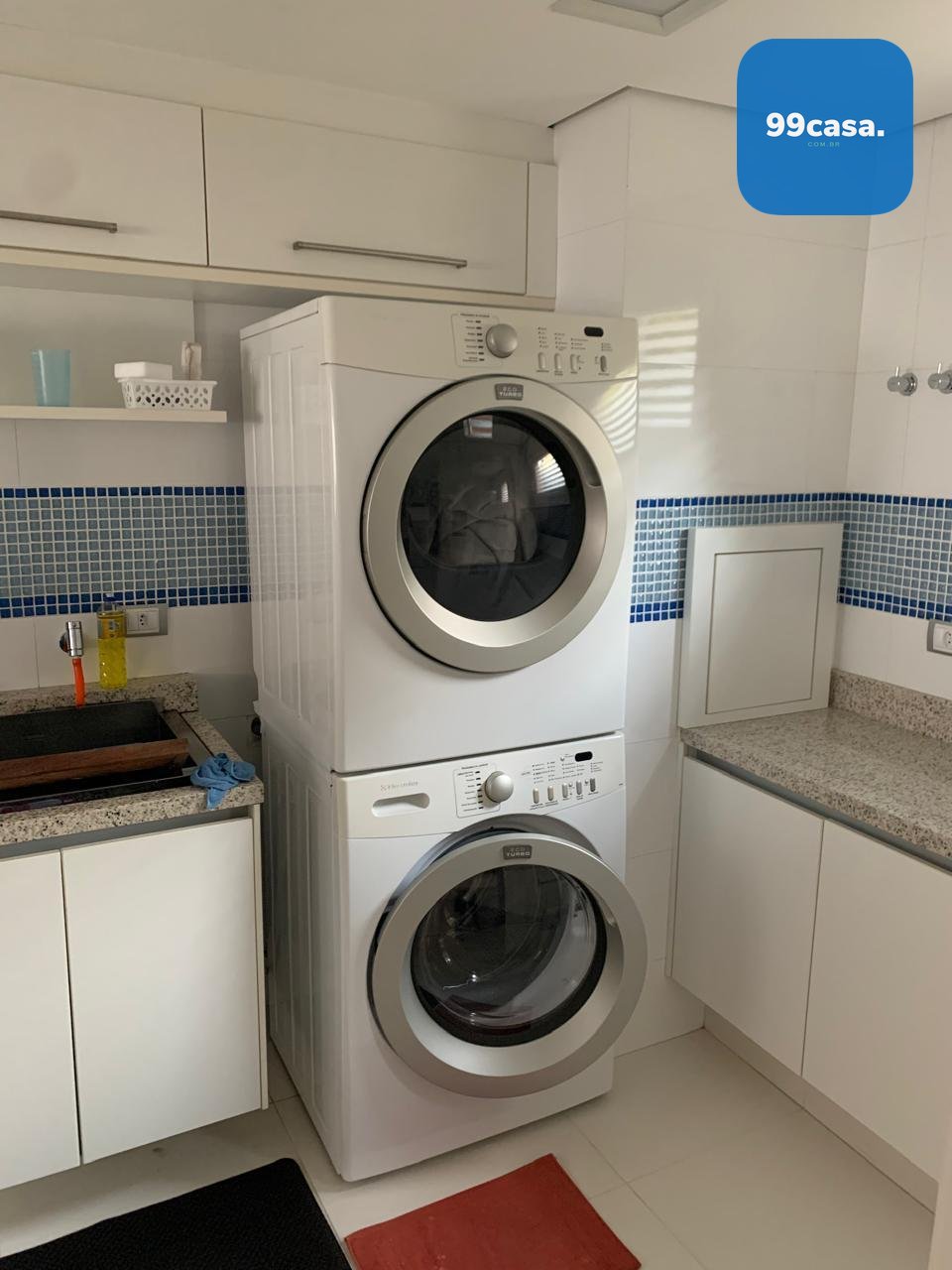 No subsolo está a área de serviço completa, com lavanderia equipada, armários planejados e dependência de serviço.