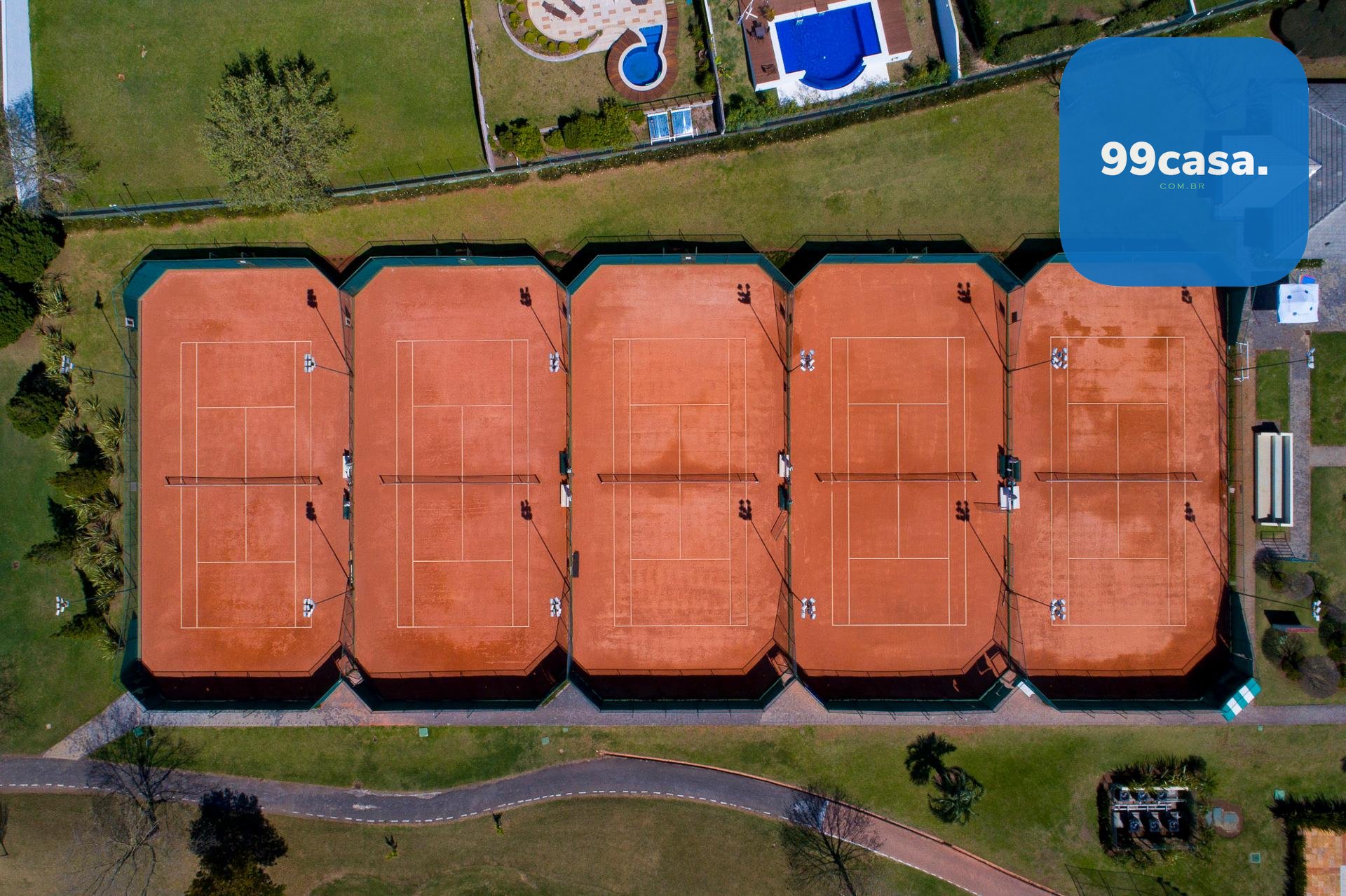 Clube completo, áreas esportivas e campo de golfe.