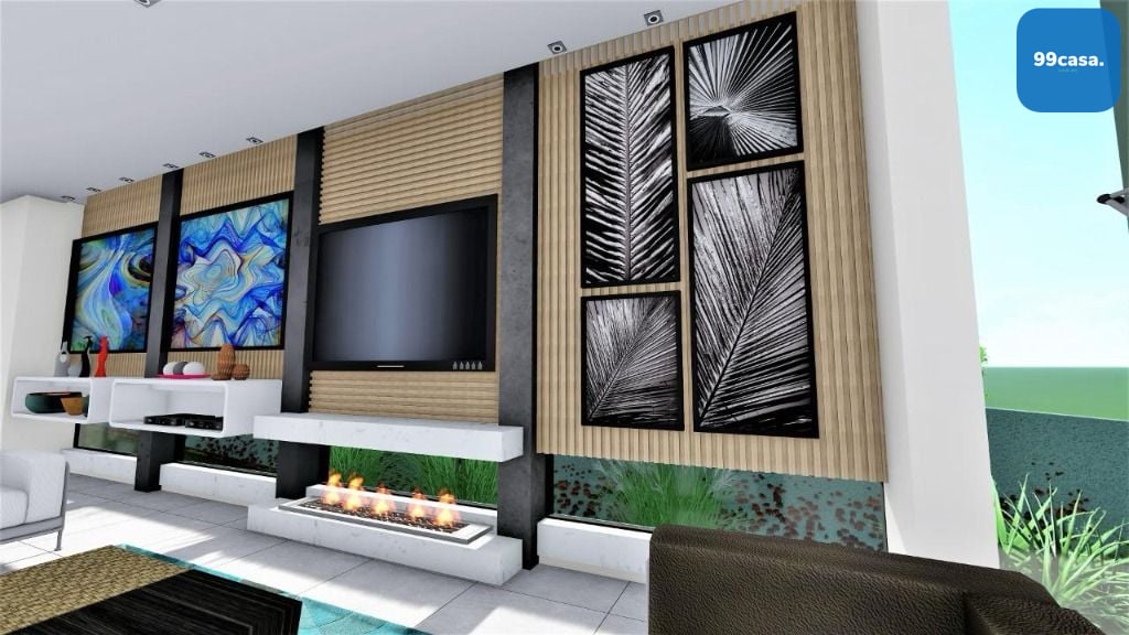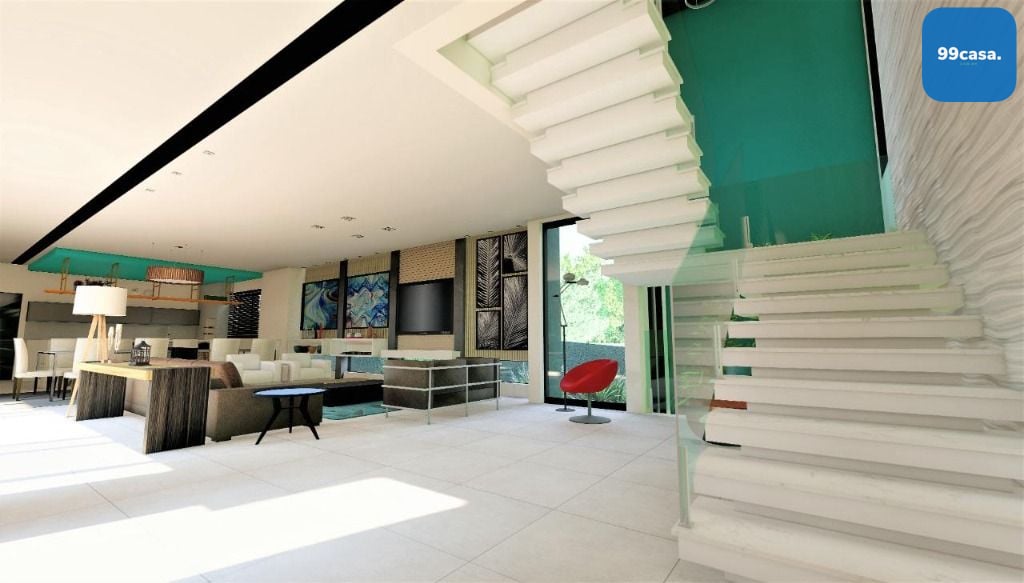 - lavabo- estar, jantar e gourmet integrados com a piscina coberta