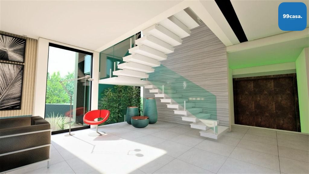 - espaço para rouparia no corredorJanelas de PVC e porcelanato no piso inferior e vinílico no superior.