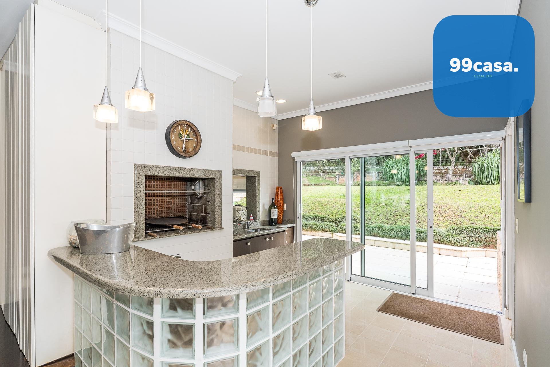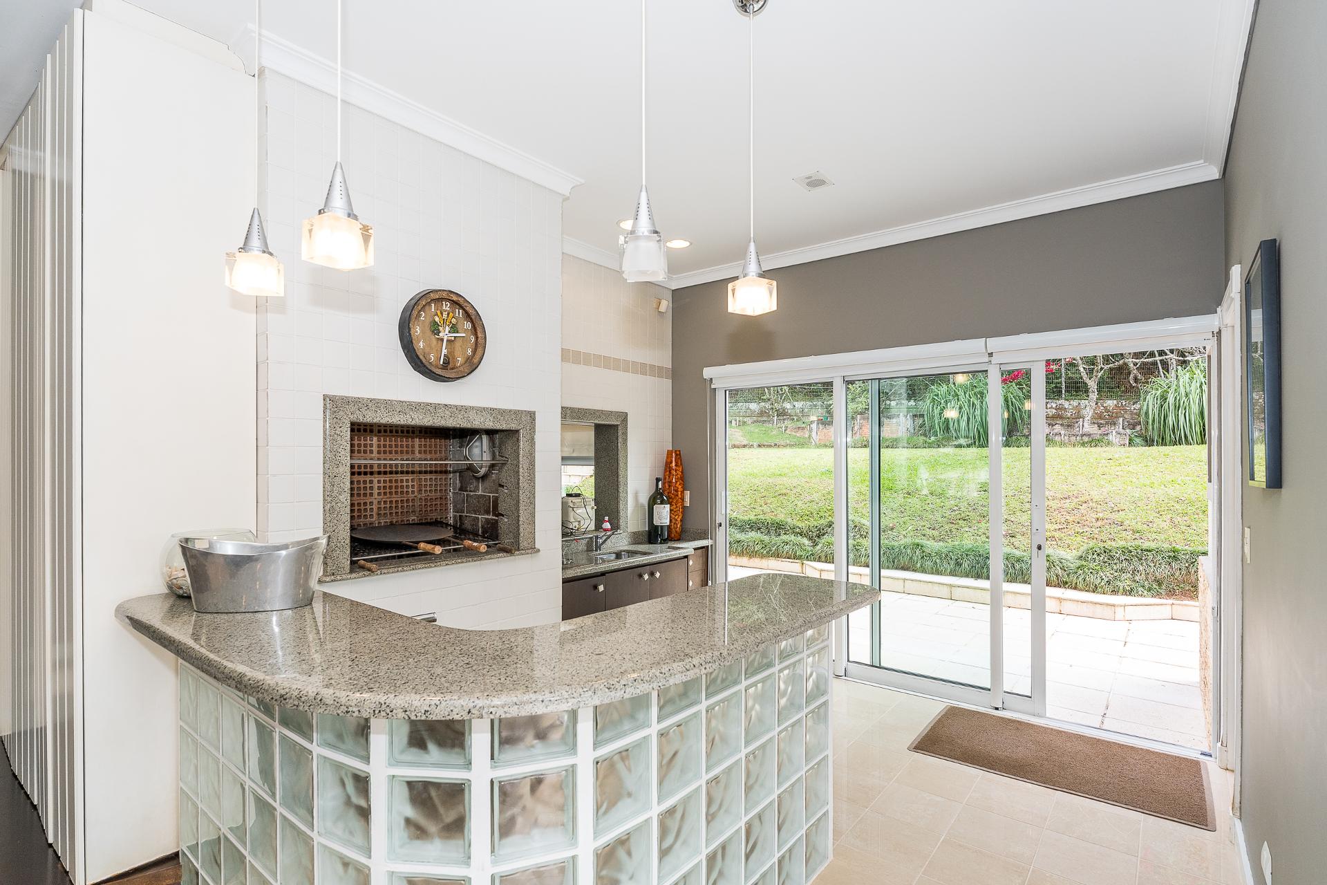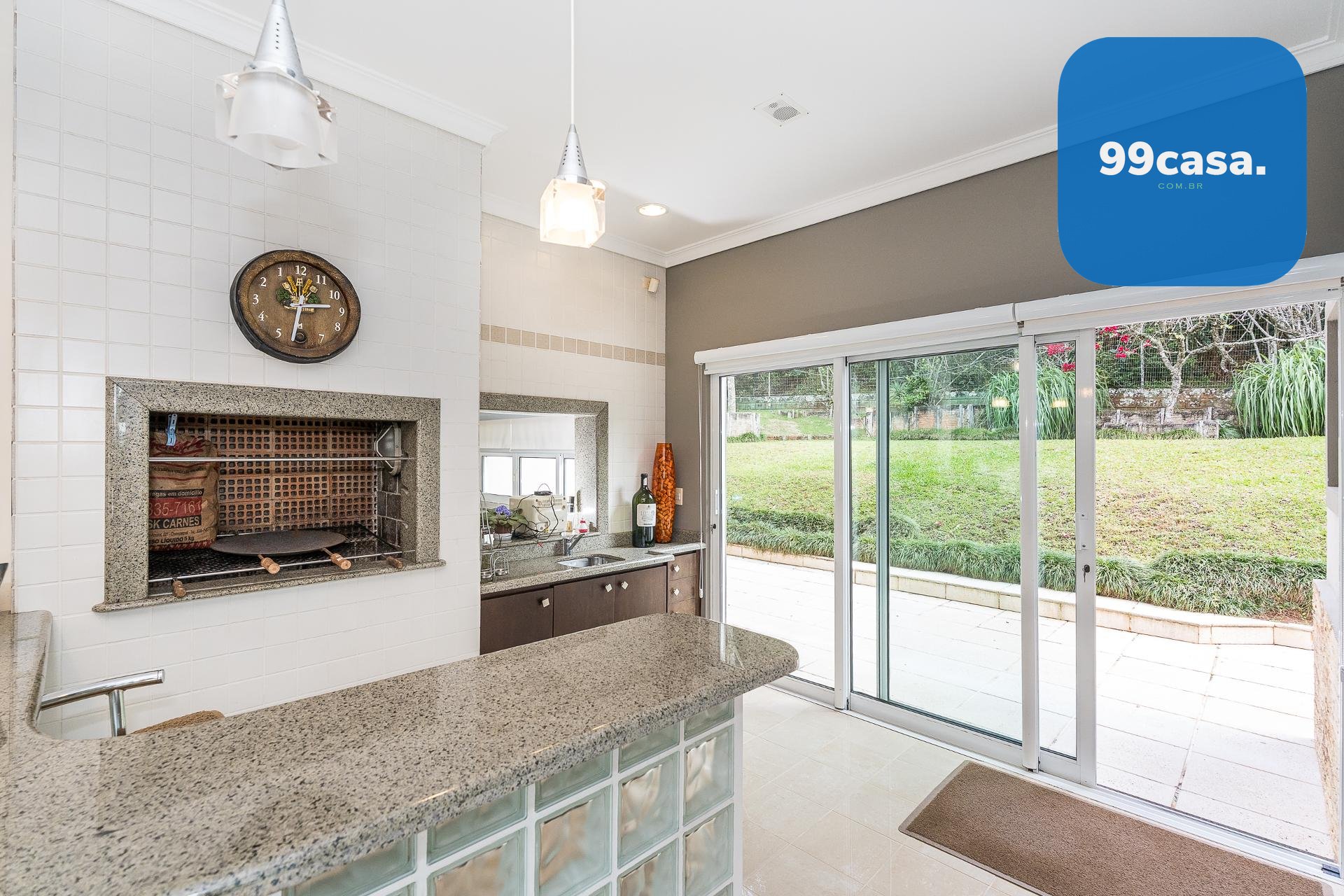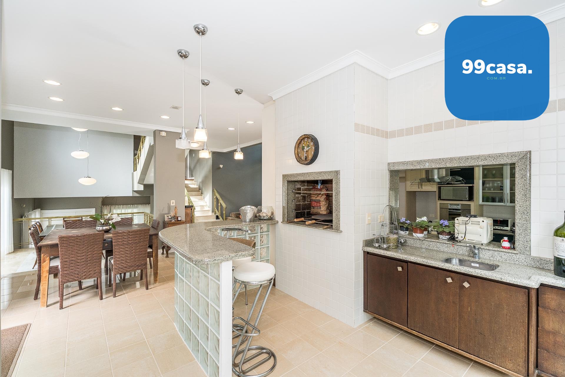 Espaço gourmet com churrasqueira e passa-prato