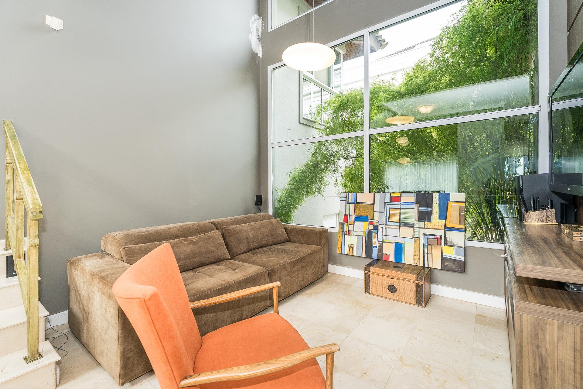 Com arquitetura contemporânea e toques clássicos, a casa possui ambientes amplos, excelente iluminação natural e uma área externa acolhedora, com jardim, deck, pomar e horta.