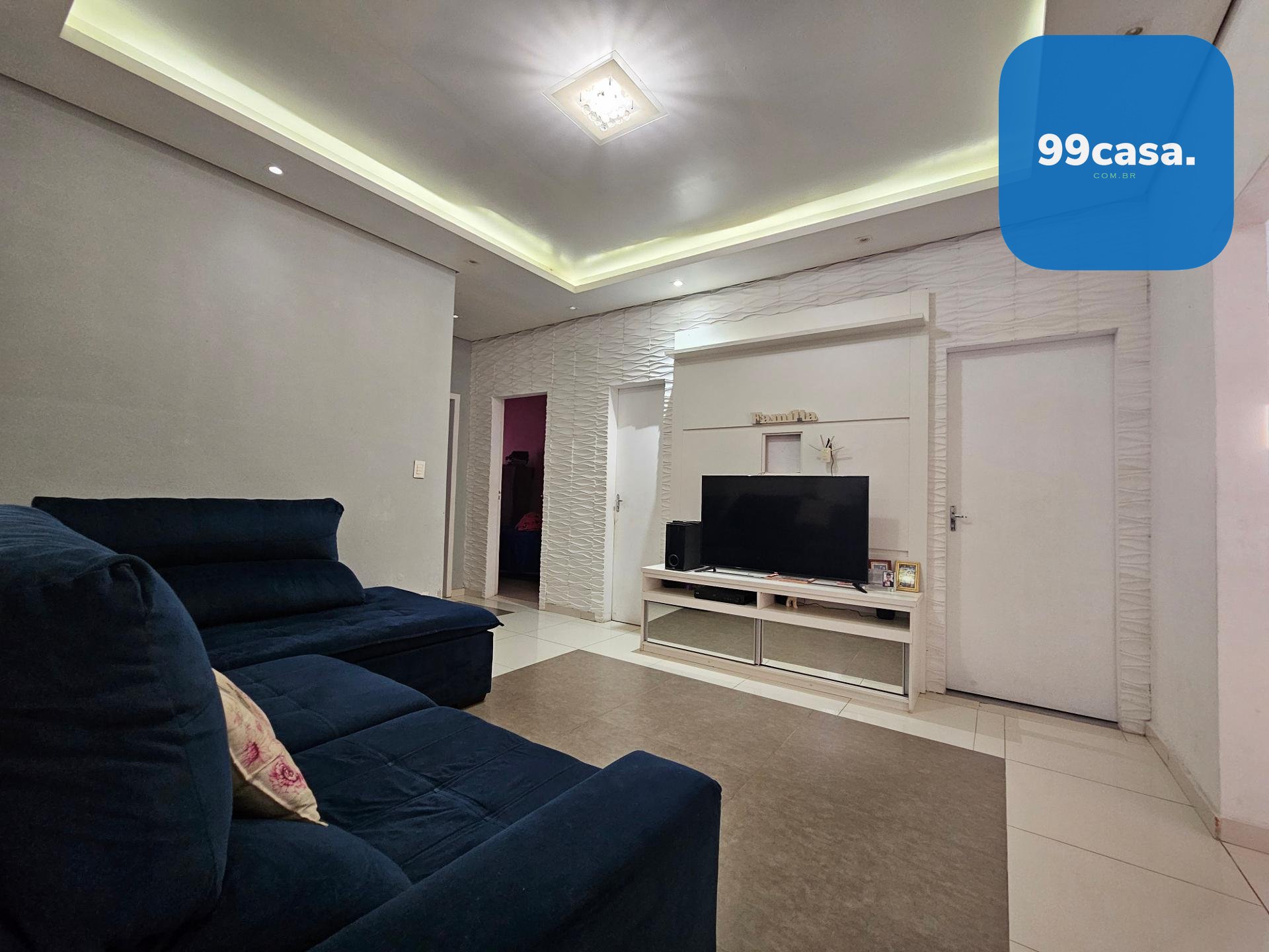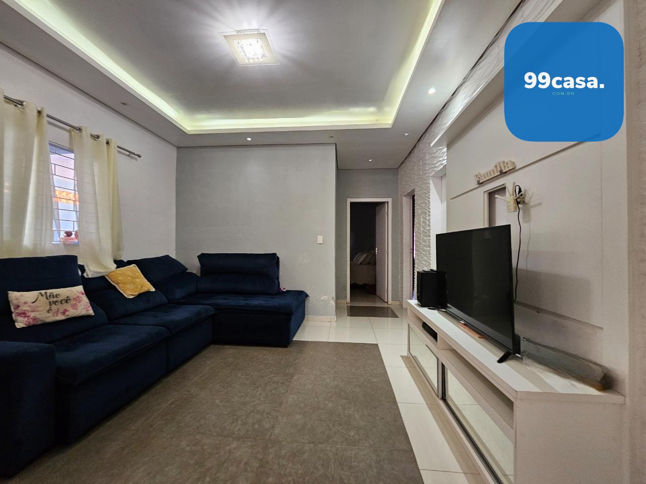 Sala ampla com teto rebaixado em gesso