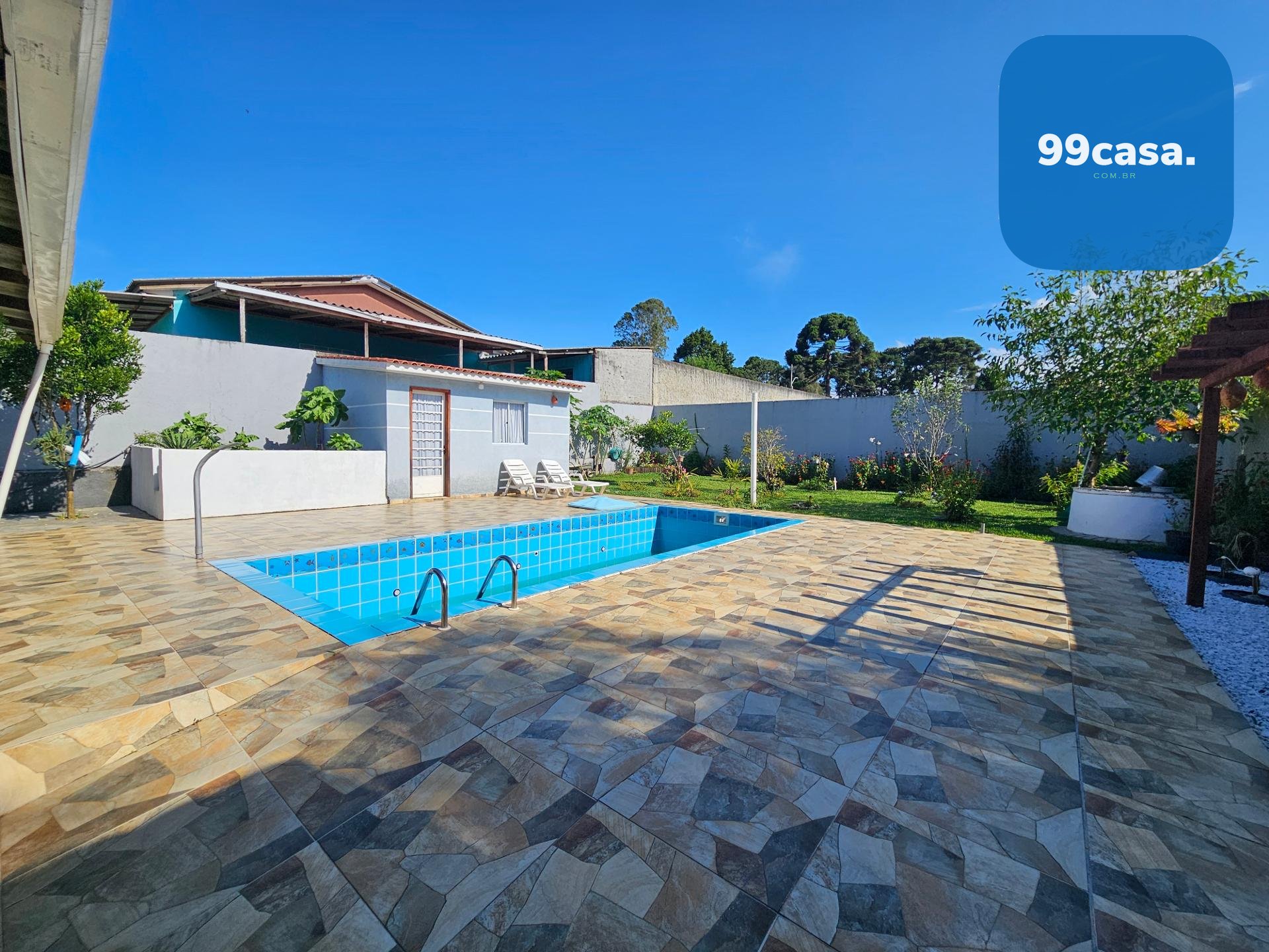 Piscina com banheiro de apoio