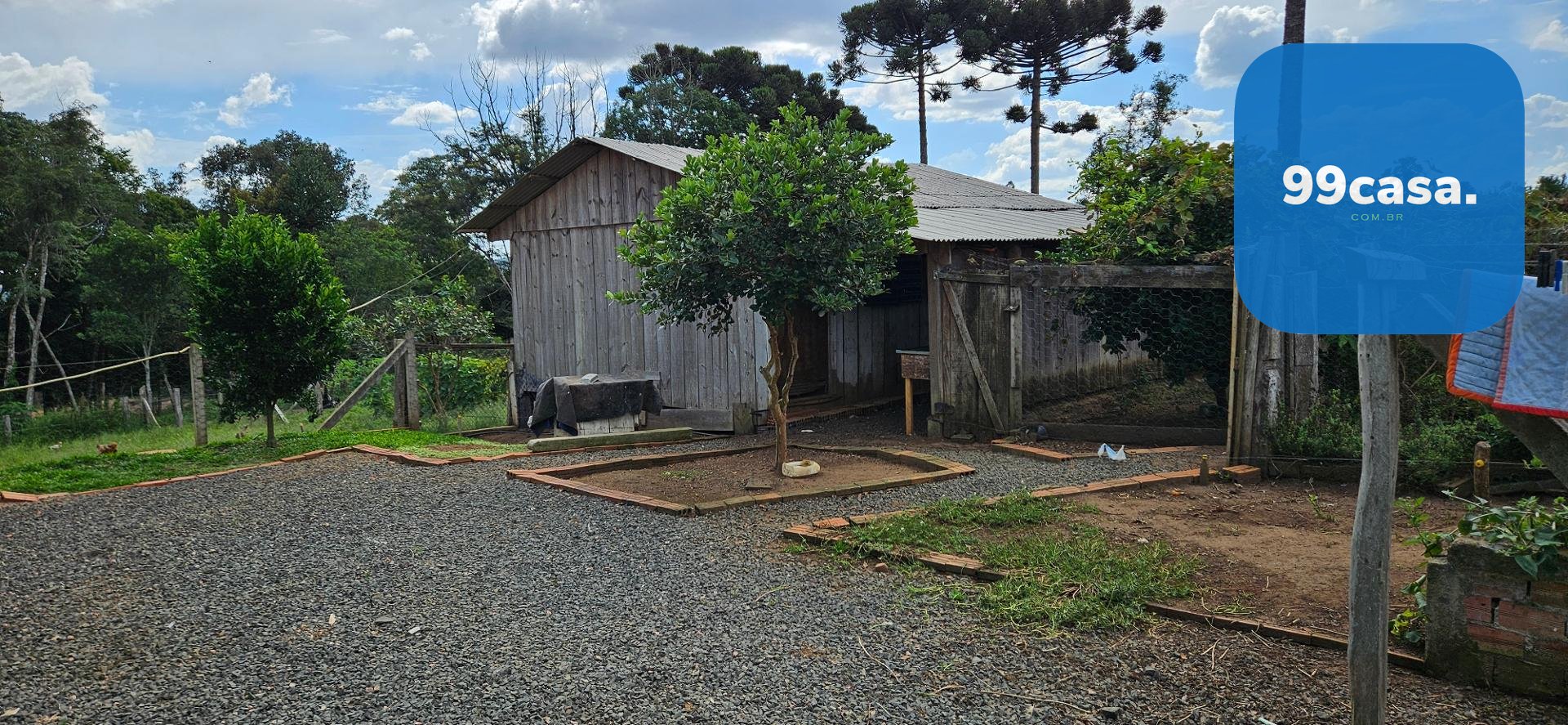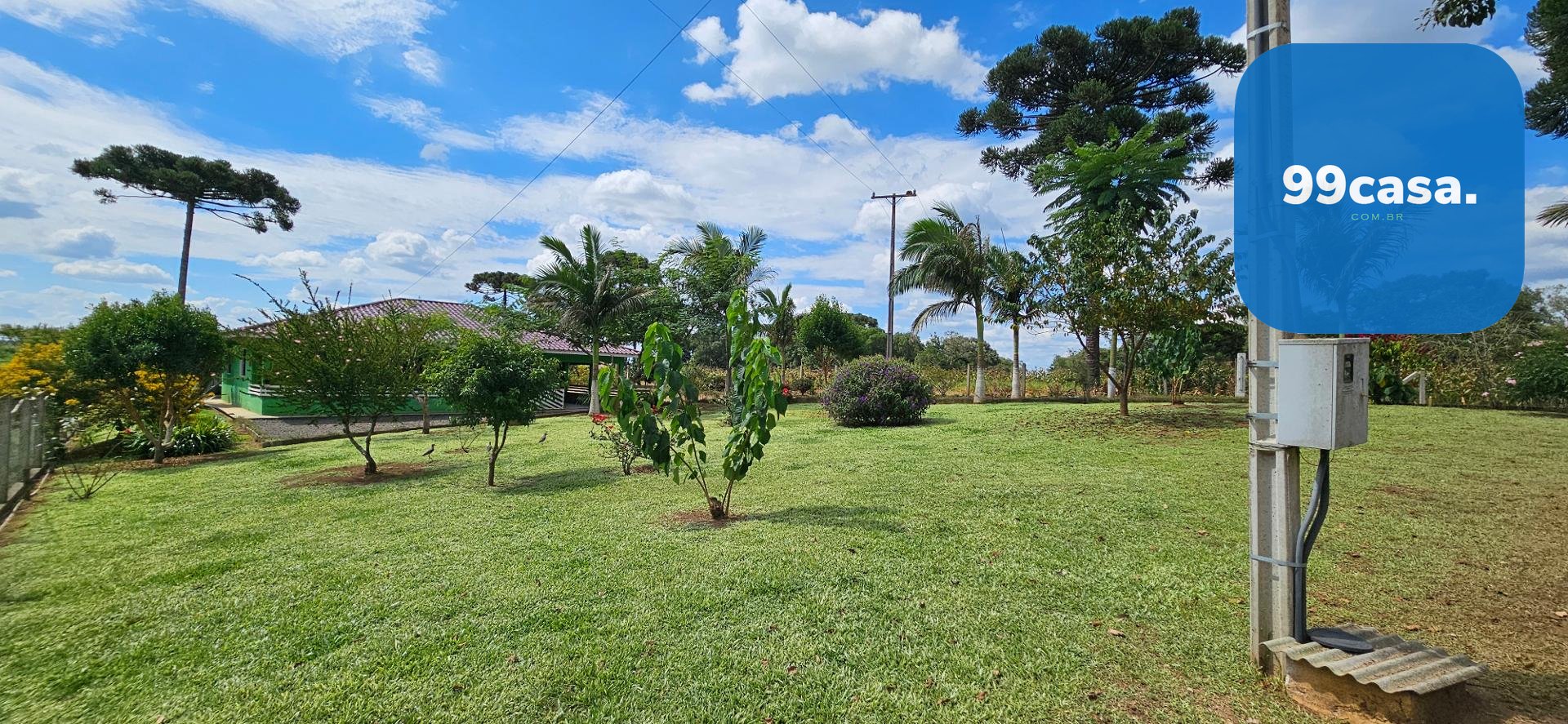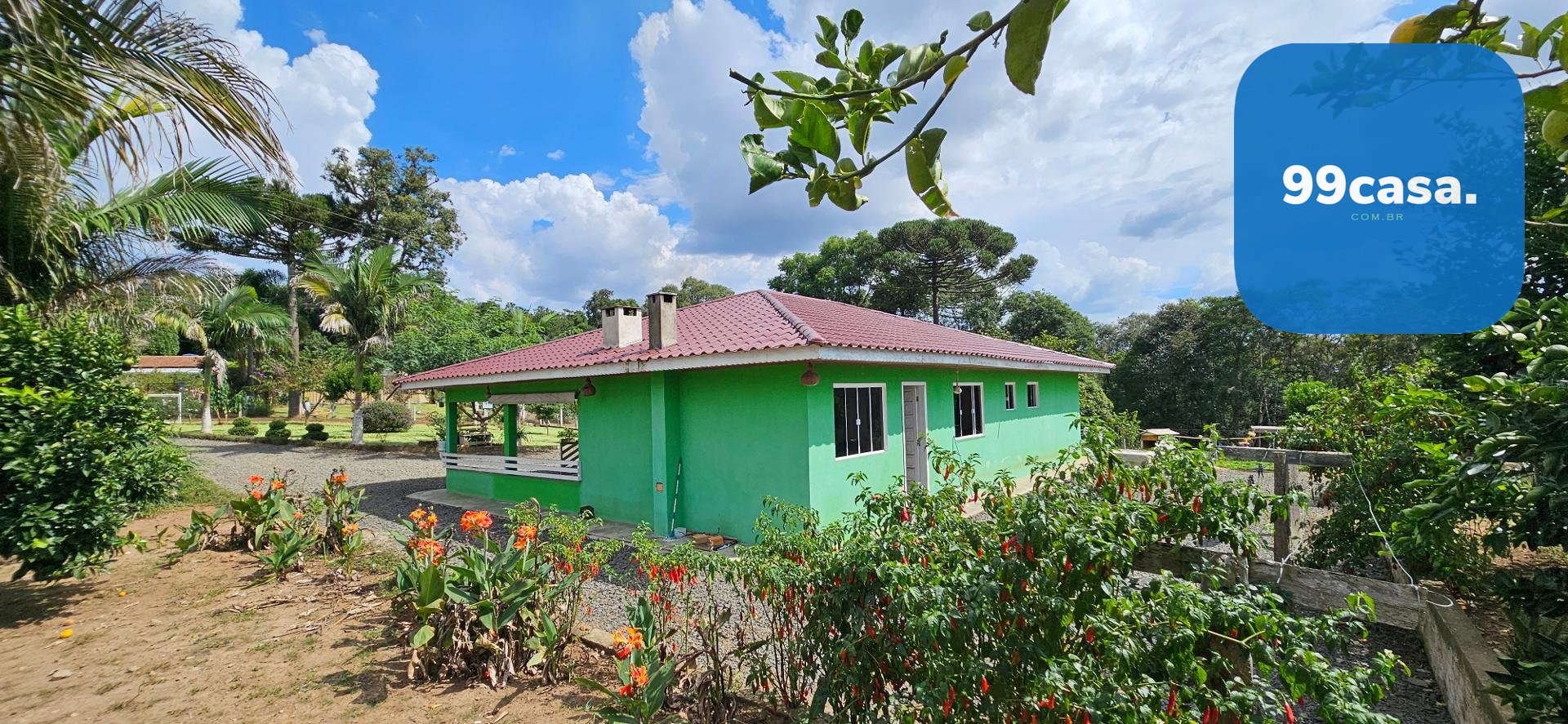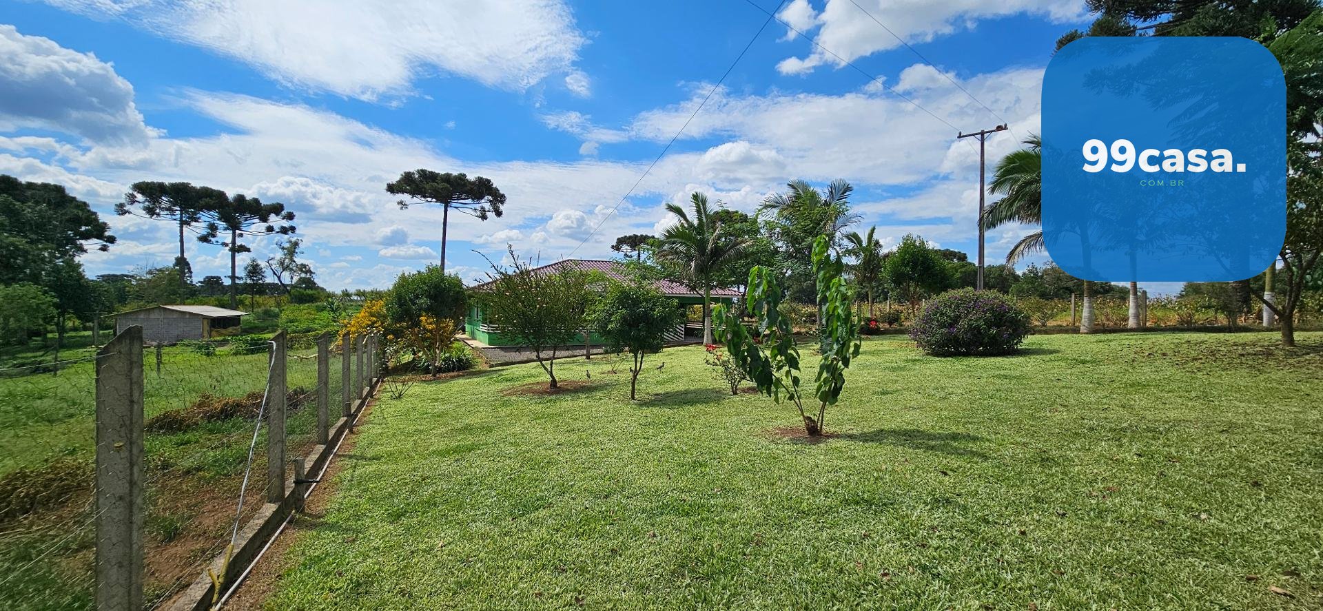 O grande destaque é o pomar exuberante e já em plena produção, que transforma a propriedade em um verdadeiro ecossistema sustentável. Há uma rica variedade de citros, incluindo laranja nas versões lima, comum, sanguínea e baiana, além de limões rosa e taiti, mexerica e pocan. O pomar conta também com frutas diversas como jabuticaba, pera branca, abacate, goiaba, maracujá, araçá e araticum do mato. A presença de 16 pinheiros completa o cenário, trazendo identidade e beleza típica da região.