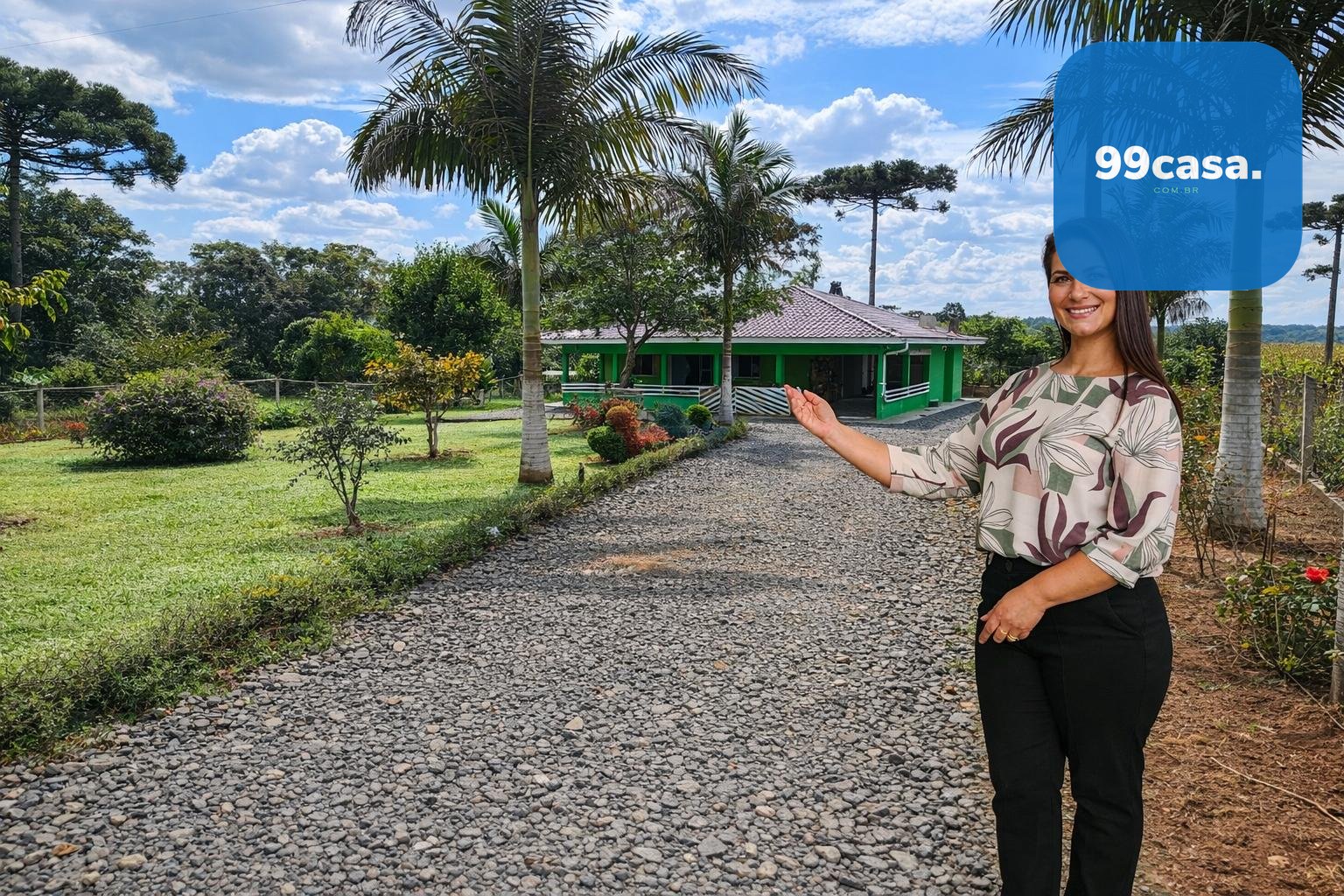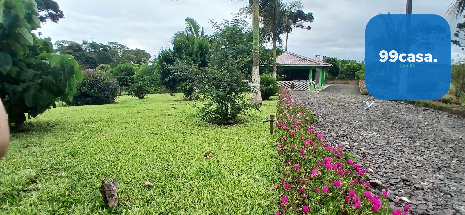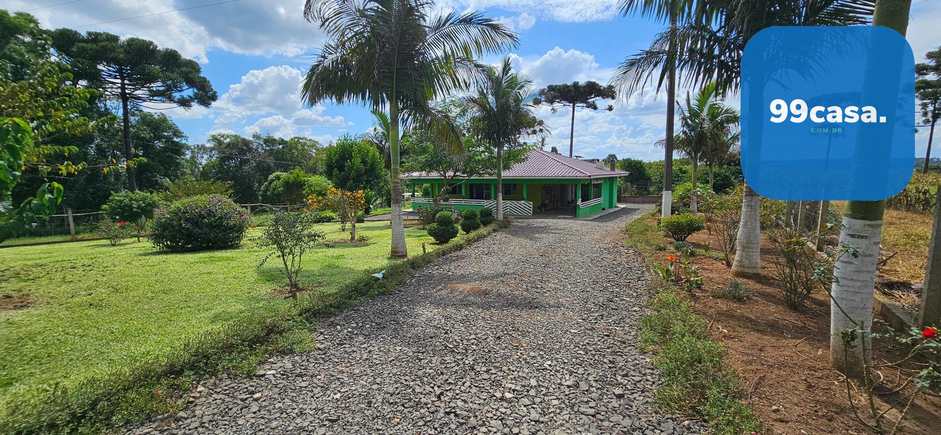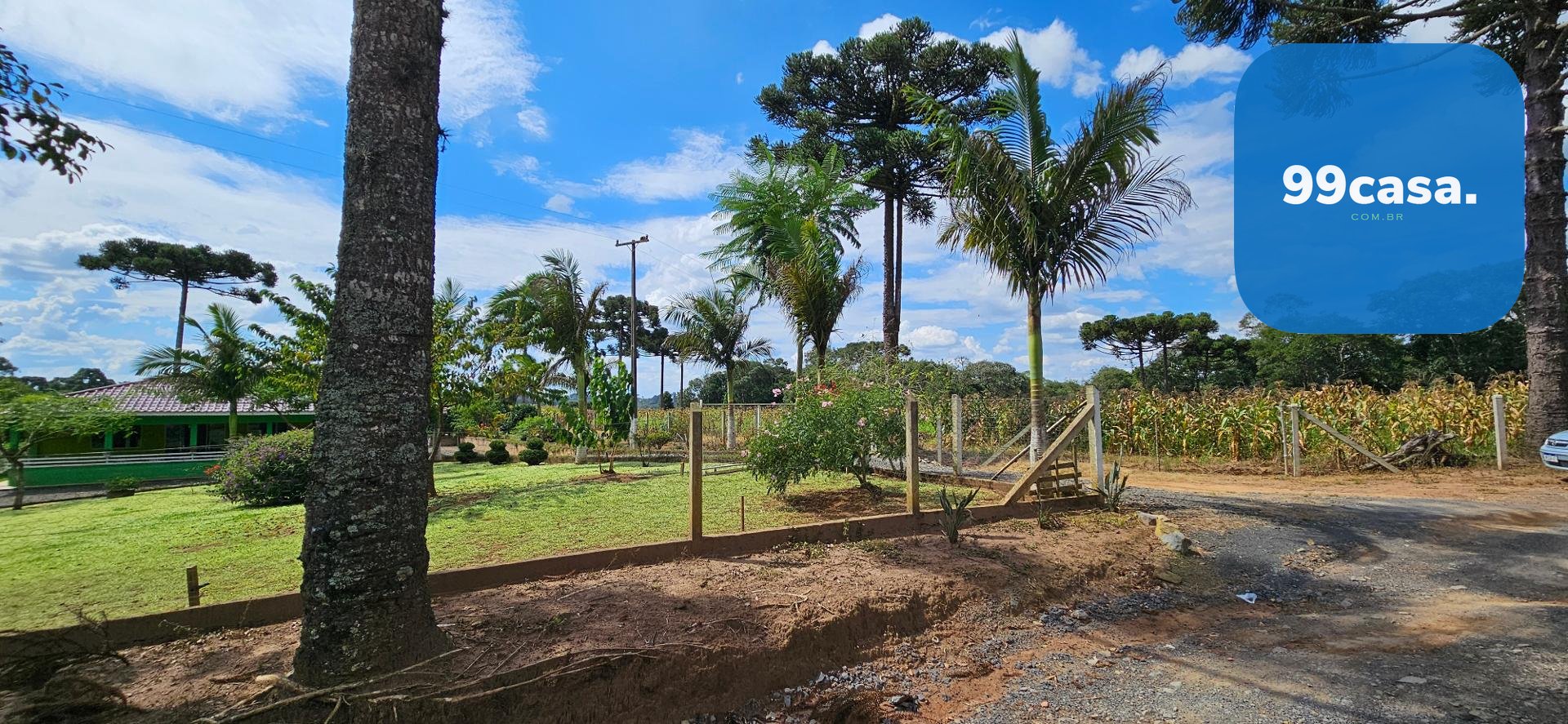 O grande destaque é o pomar exuberante e já em plena produção, que transforma a propriedade em um verdadeiro ecossistema sustentável. Há uma rica variedade de citros, incluindo laranja nas versões lima, comum, sanguínea e baiana, além de limões rosa e taiti, mexerica e pocan. O pomar conta também com frutas diversas como jabuticaba, pera branca, abacate, goiaba, maracujá, araçá e araticum do mato. A presença de 16 pinheiros completa o cenário, trazendo identidade e beleza típica da região.