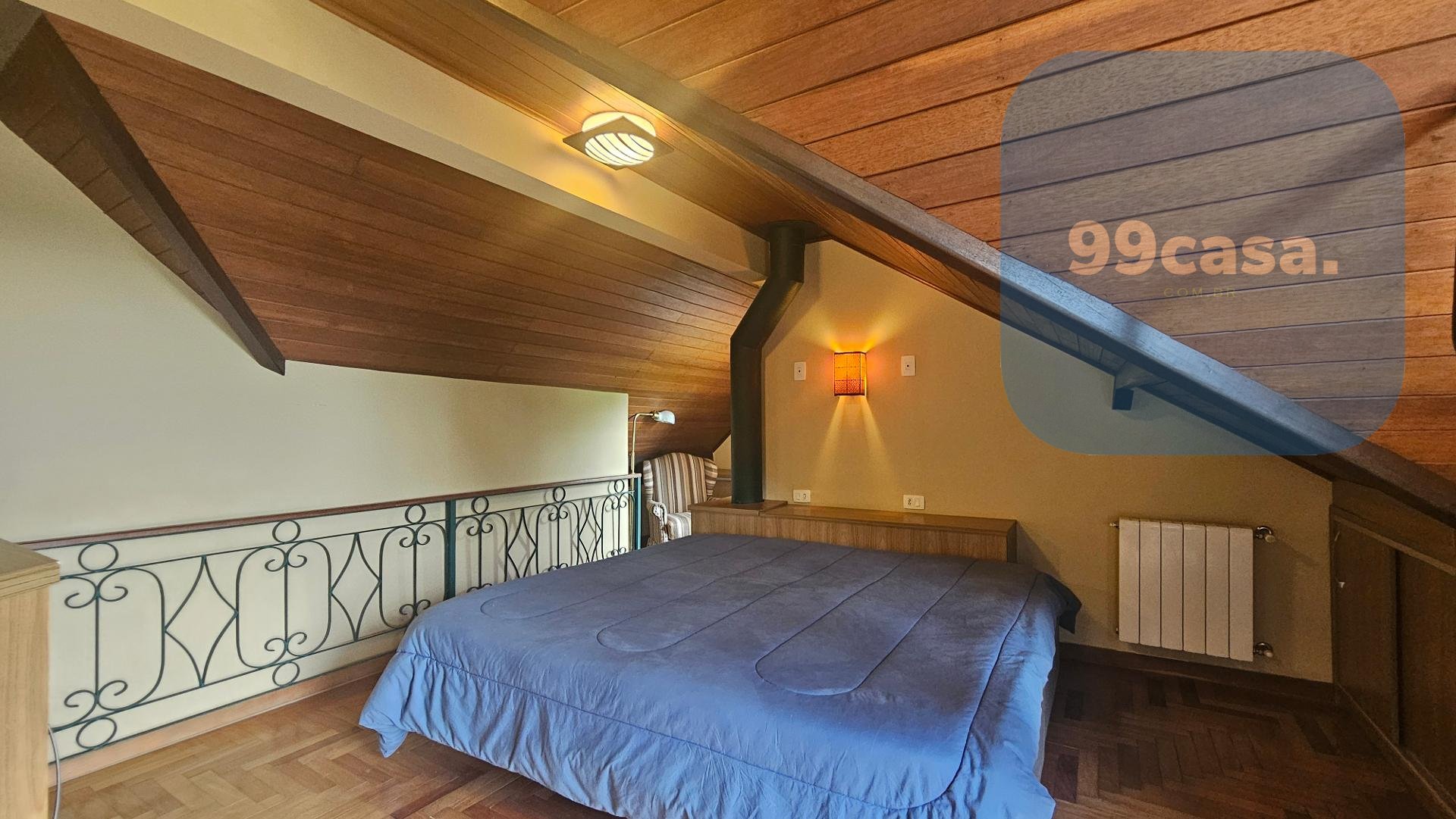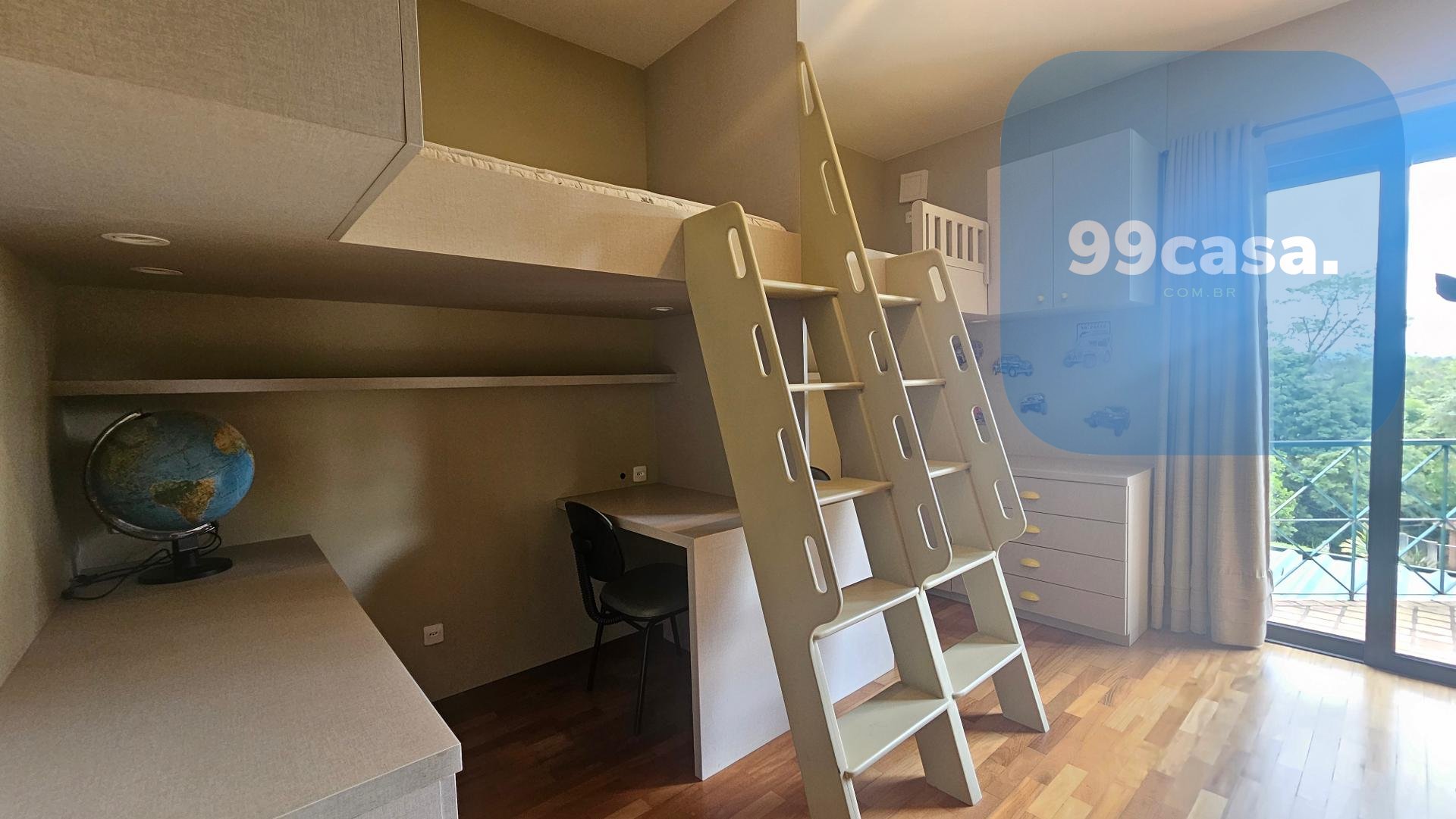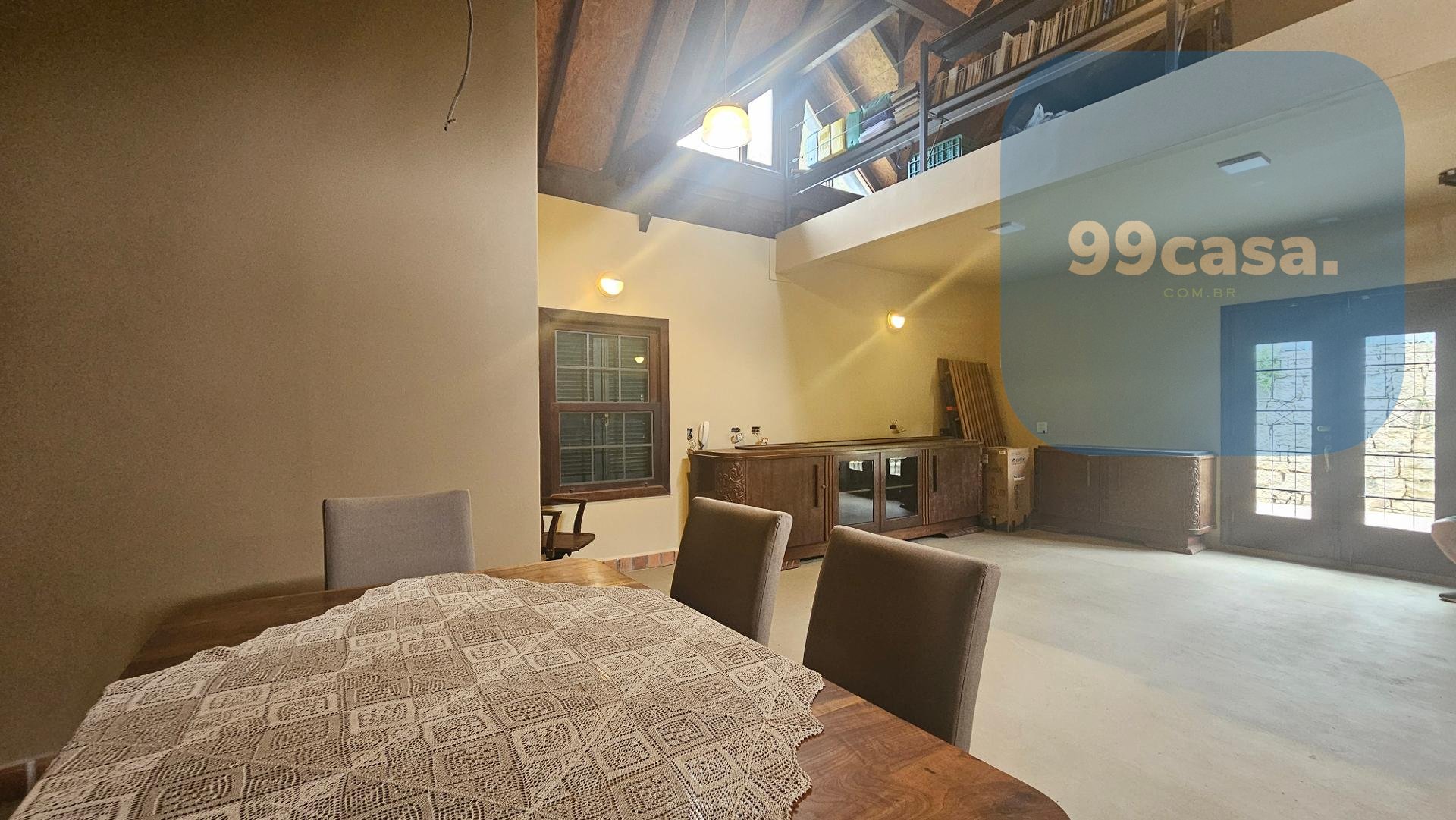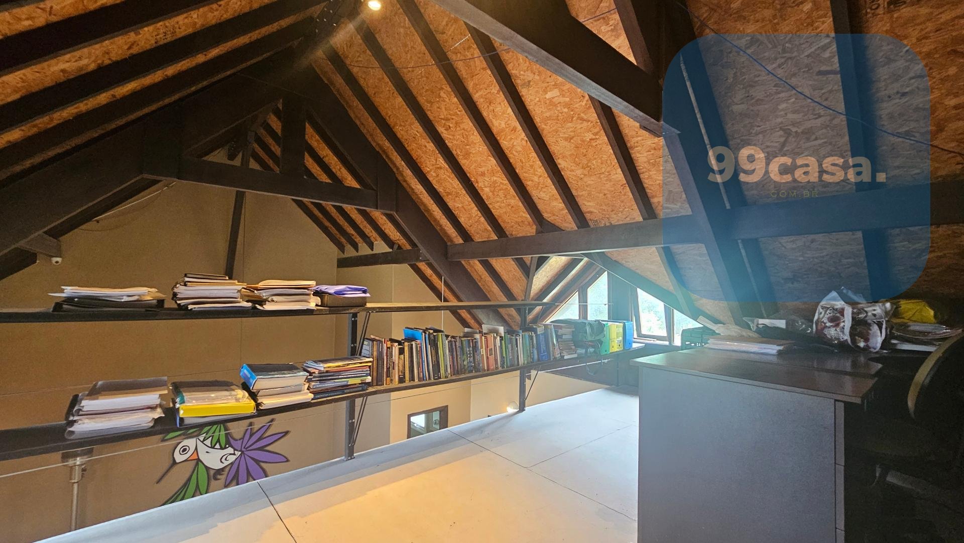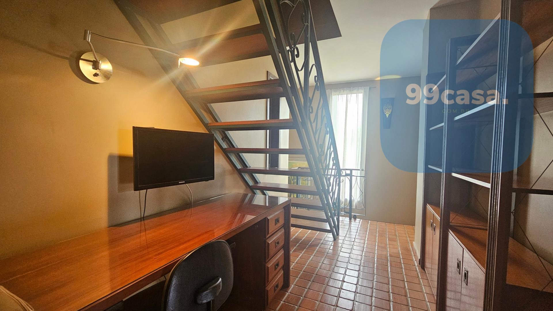 Conta ainda com uma ampla sala de estar e um ambiente para trabalho no mesanino.