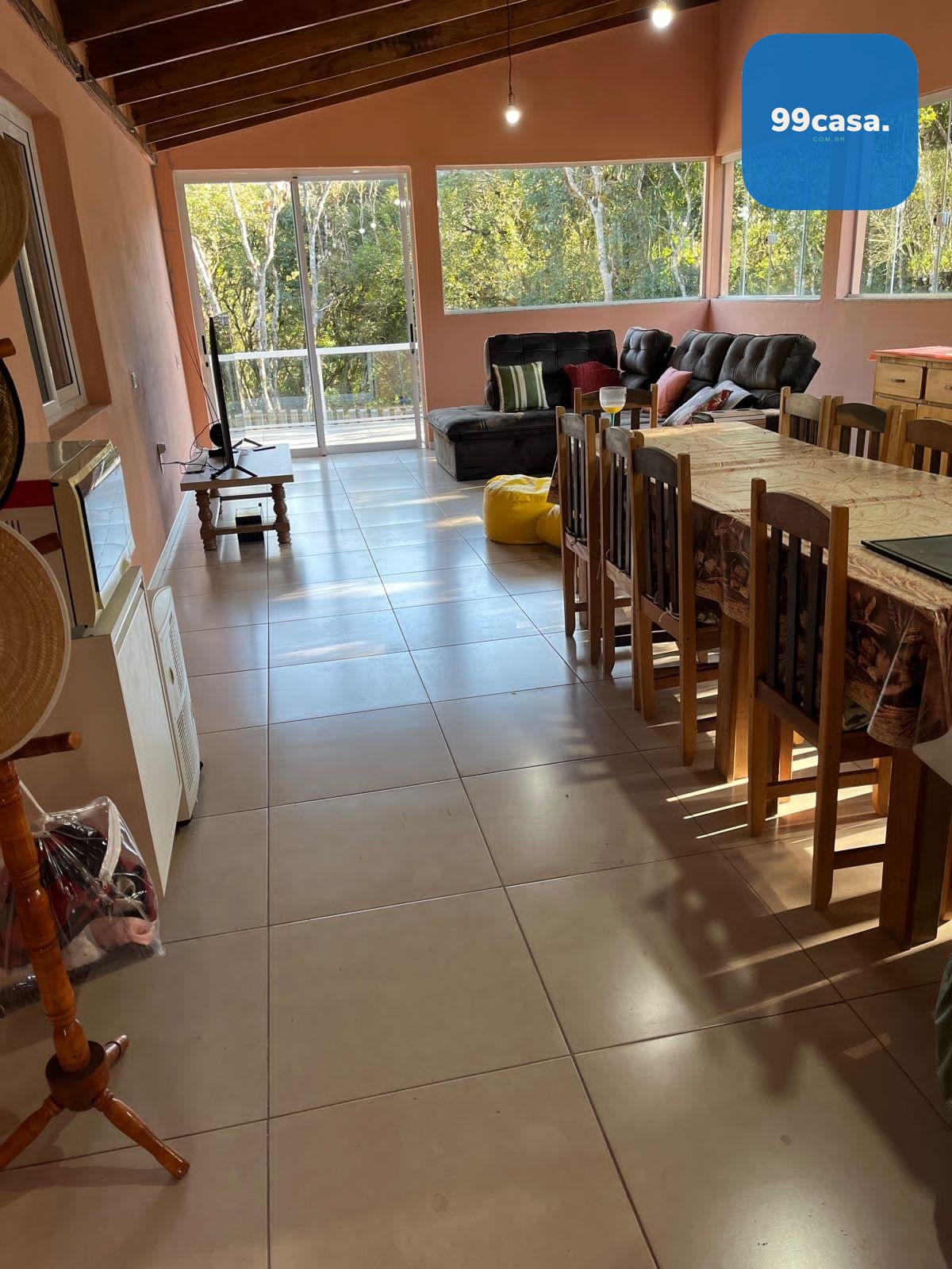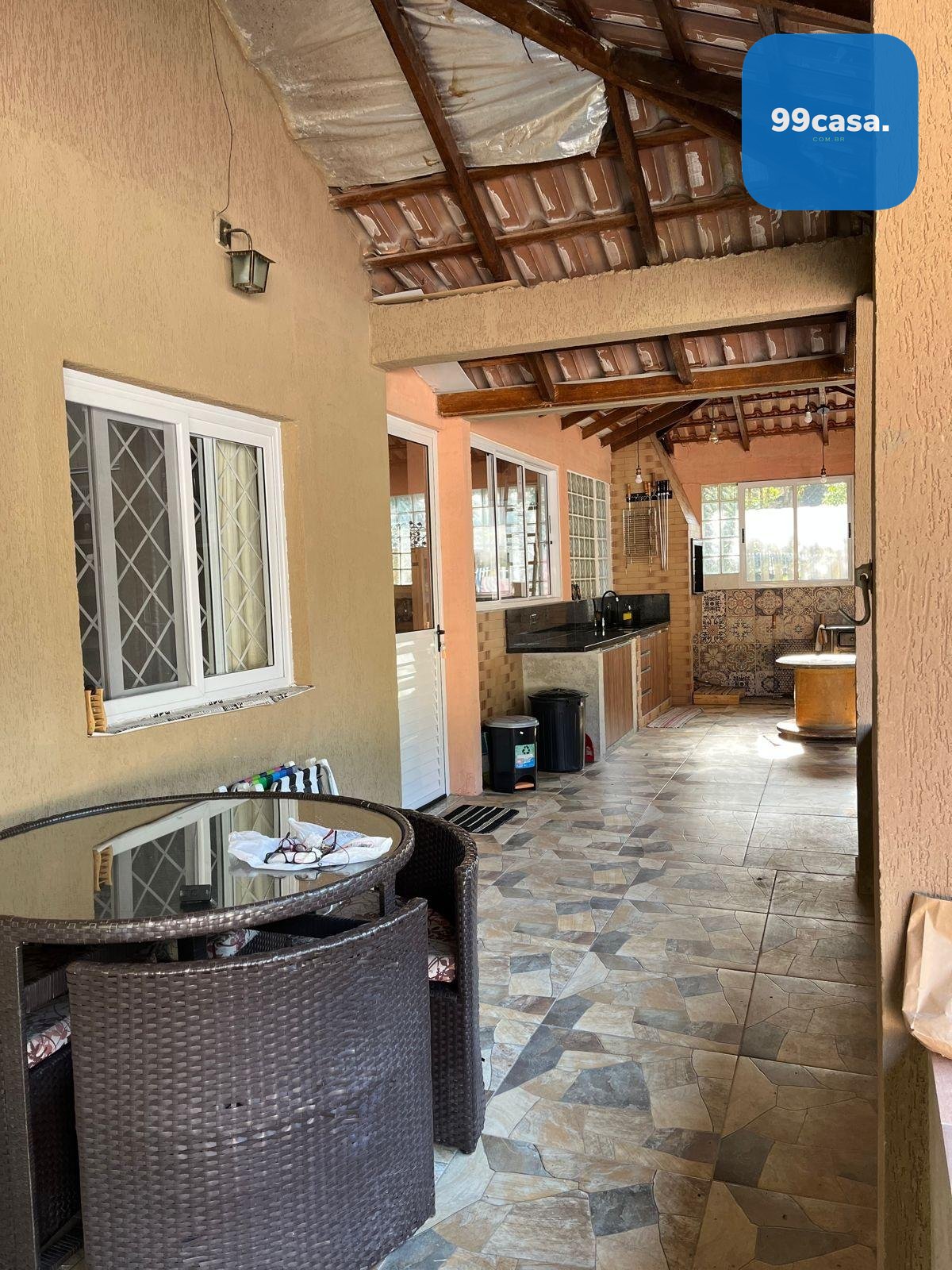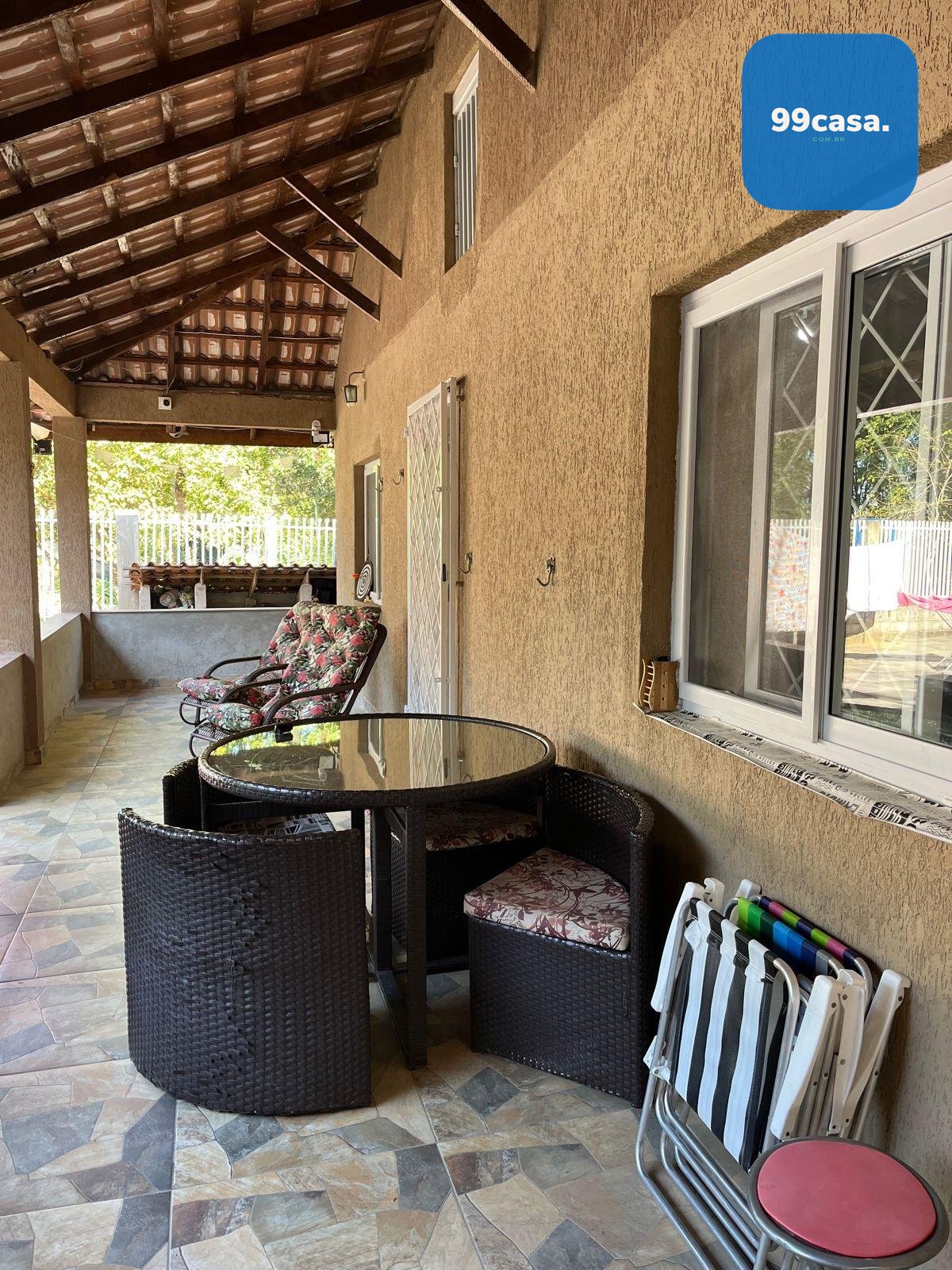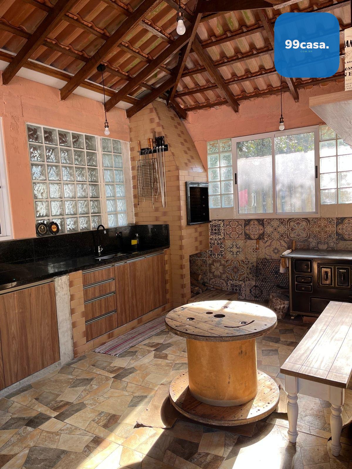 Na área externa, o espaço é perfeito para receber família e amigos, com espaço gourmet equipado com churrasqueira, fogão à lenha, pia, armários e um amplo salão, além de uma suíte externa adicional.