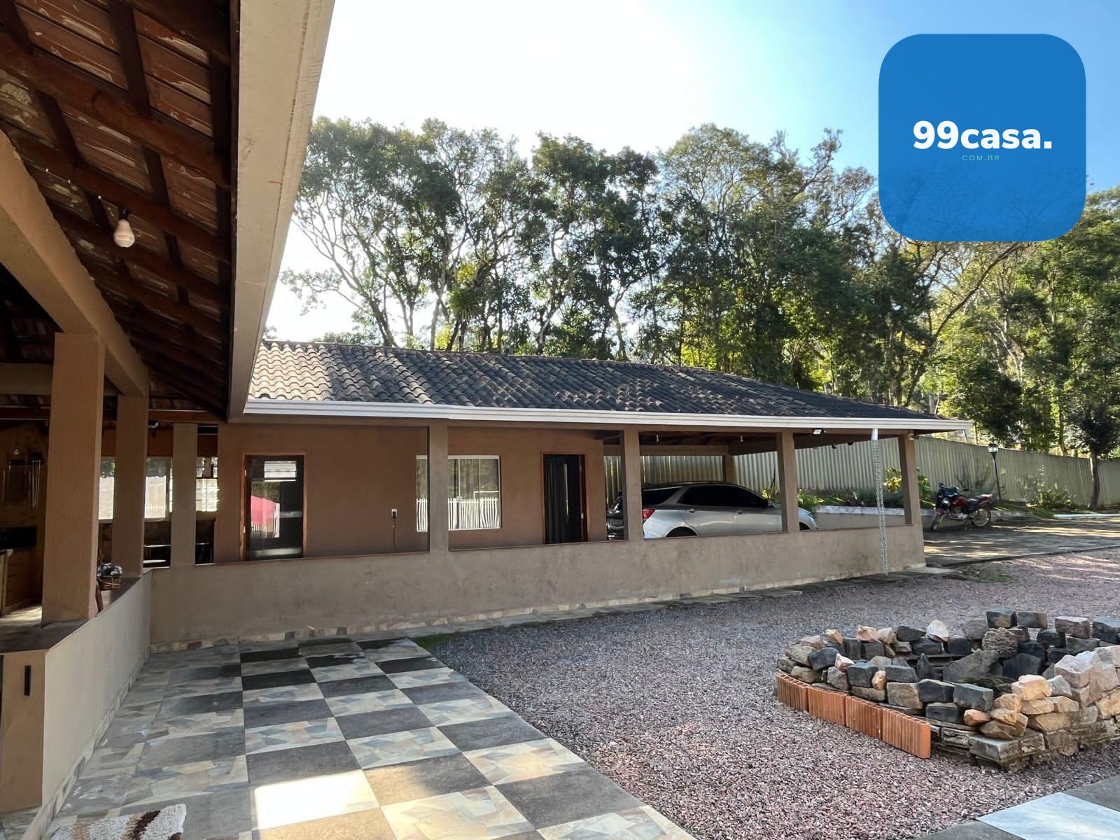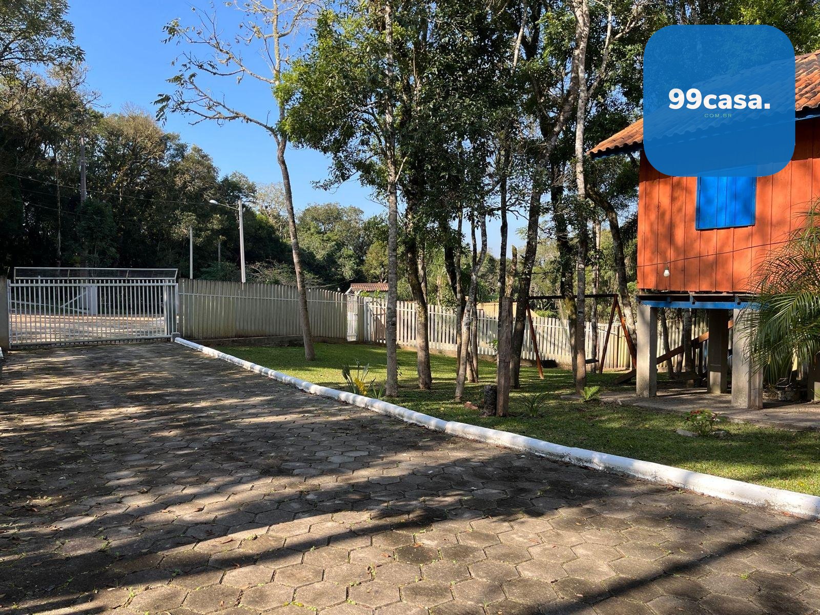 Totalmente cercada com palanques de concreto, grades e cerca de arame, oferece privacidade e segurança. Possui sistema de alarme e monitoramento, portão eletrônico, entrada com paver e energia 110/220V.