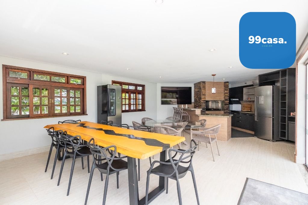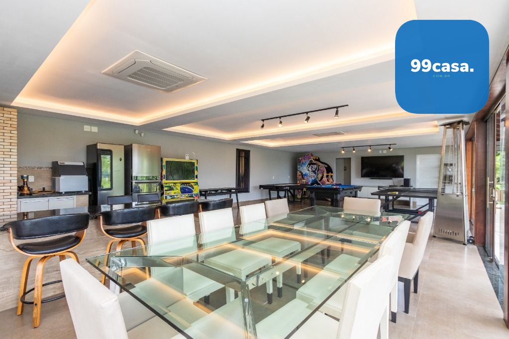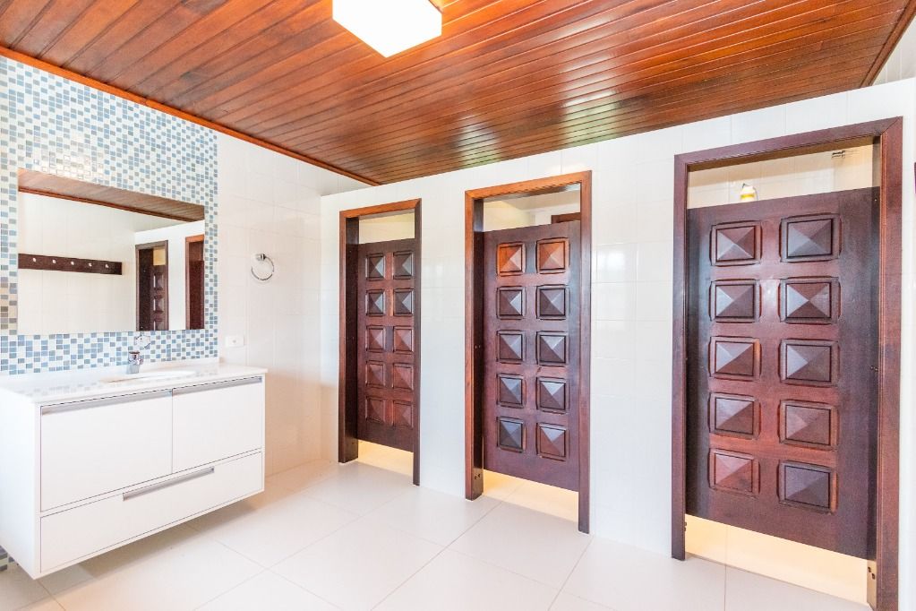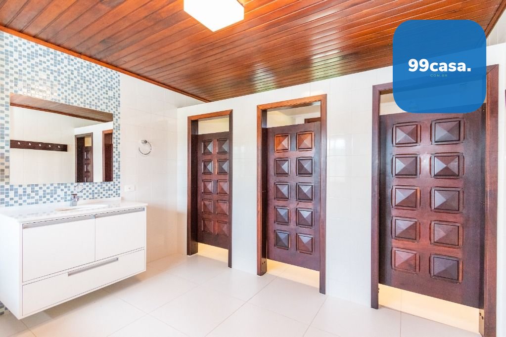 A casa sede com 3 pavimentos conta com 630 m² construídos, possui 01 suíte master com closet mais 04 quartos, garagem para 10 carros descobertos.