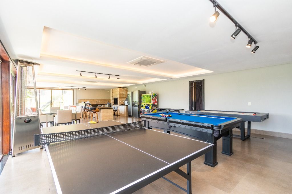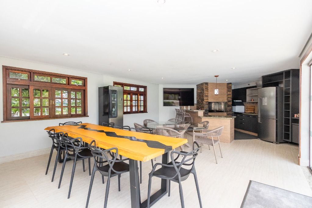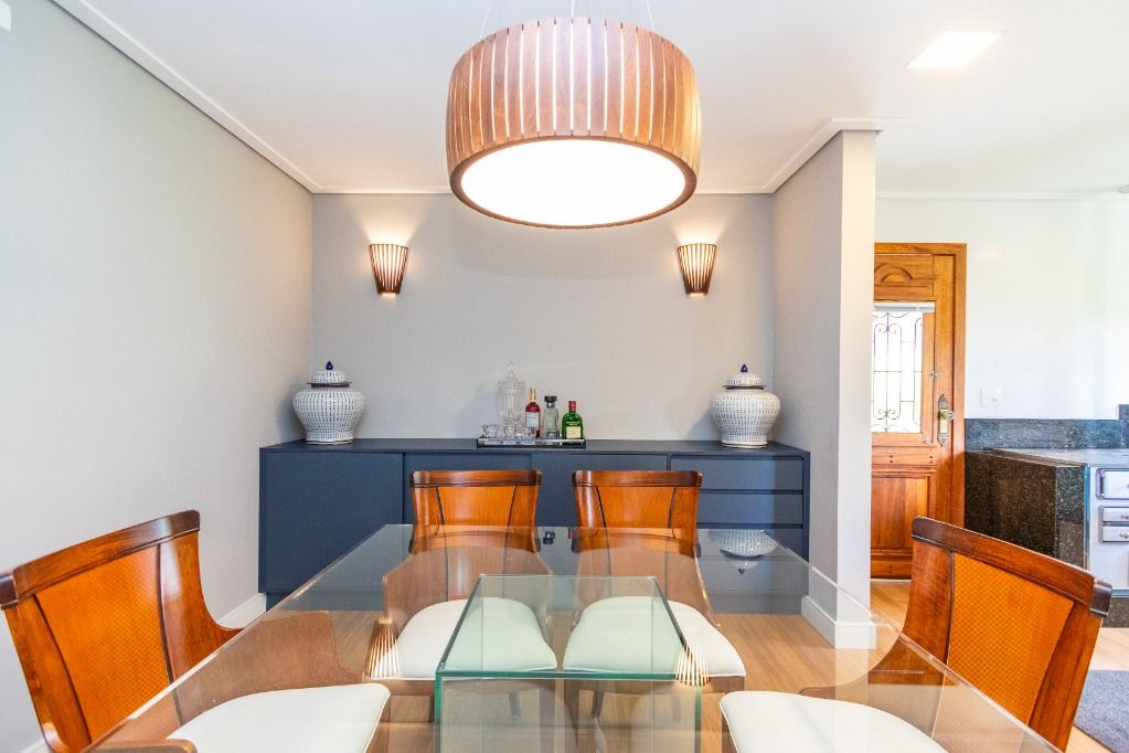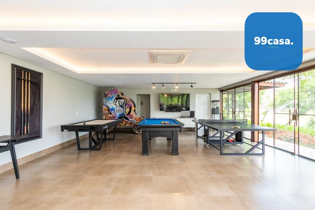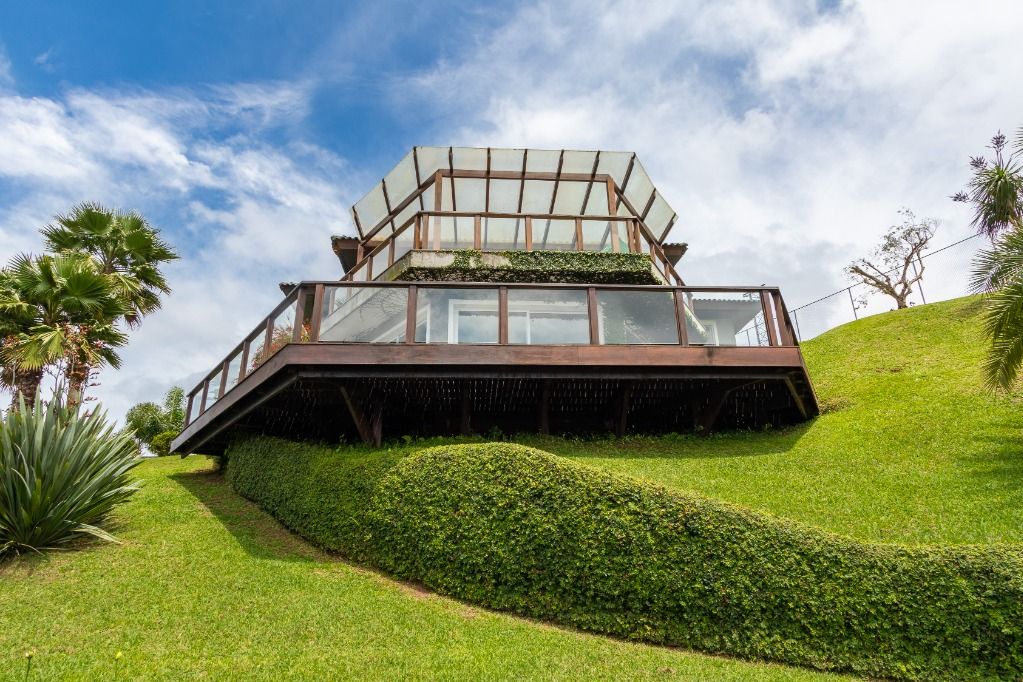 A casa sede com 3 pavimentos conta com 630 m² construídos, possui 01 suíte master com closet mais 04 quartos, garagem para 10 carros descobertos.