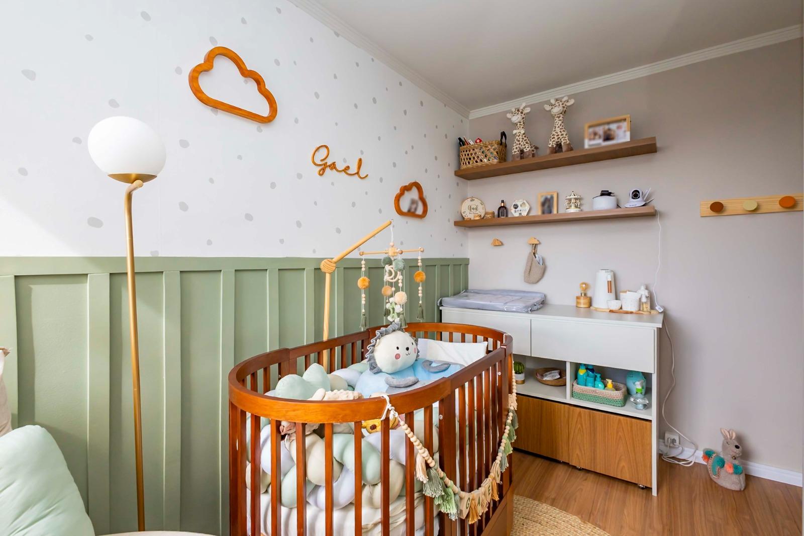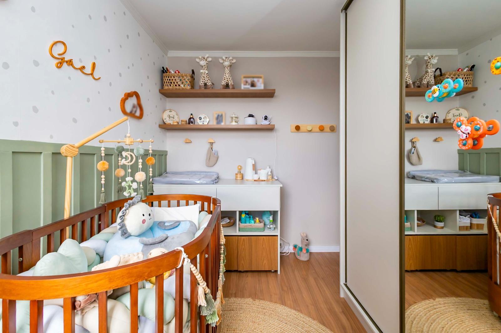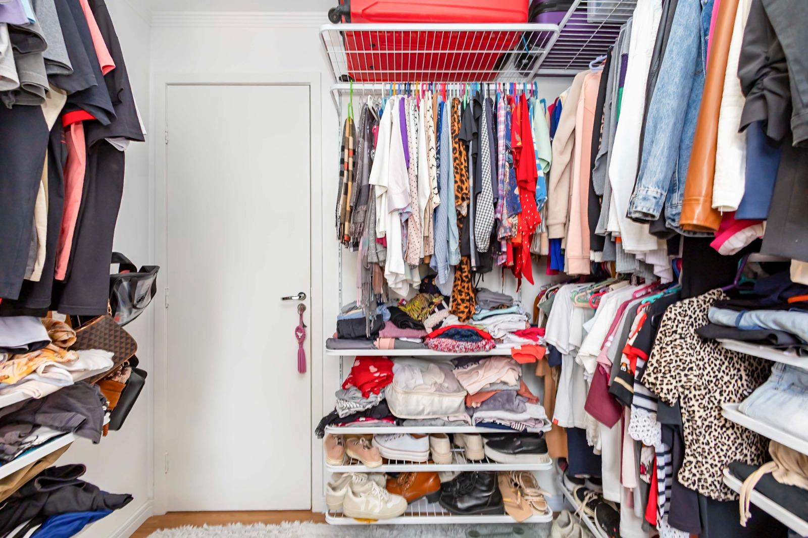 Quarto versátil com papel de parede e closet aramado (removível)