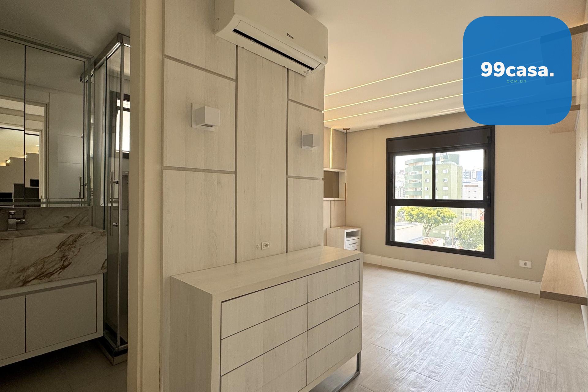 A cobertura é semimobiliada, com armários planejados em diversos ambientes, o que agrega praticidade e otimiza os espaços. O imóvel também conta com vagas de garagem e está localizado em região com fácil acesso a serviços, comércios e vias importantes da cidade.